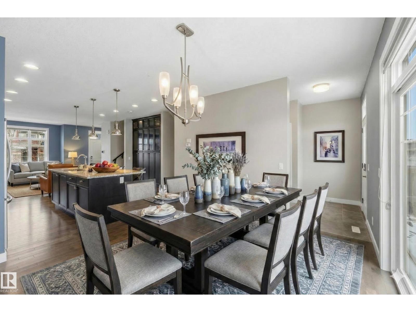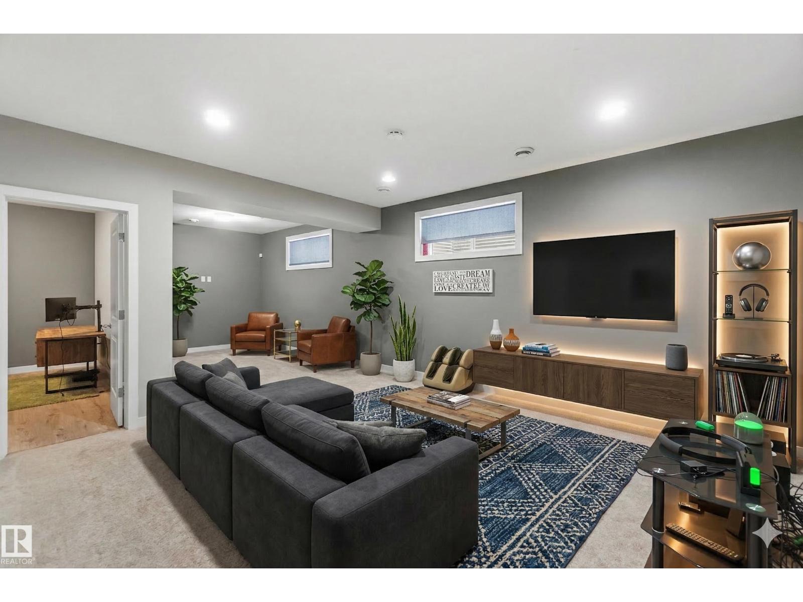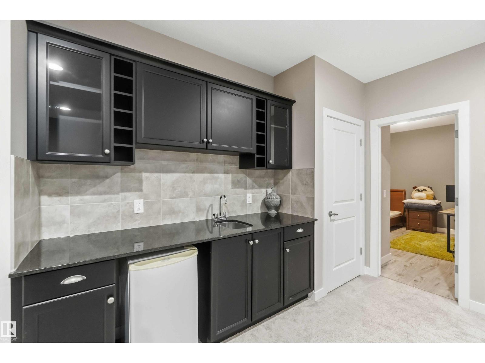 This exceptional former showhome delivers a level of finish and immediate readiness rarely found in today’s market. Every premium upgrade was integrated during construction, featuring granite countertops throughout, custom built-in cabinetry, and high-end hardwood and ceramic tile flooring paired with modern light fixtures and a designer color palette. The main floor is centered around a chef-inspired kitchen boasting a massive island, glass tile backsplash, and a functional built-in pantry. Upstairs, the master retreat offers a sophisticated five-piece ensuite and walk-in closet, complemented by two additional bedrooms and a convenient upper-level laundry room. The professionally finished basement expands the living space with a fourth bedroom, a full four-piece bathroom, and a sleek wet bar designed for entertaining. Including all appliances, window coverings, professional landscaping, and a new home warranty, this 4-bedroom, 4-bathroom residence is entirely turn-key with immediate possession available. (id:51989)