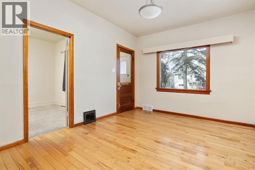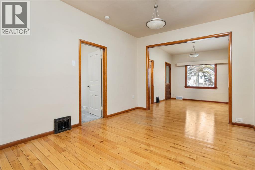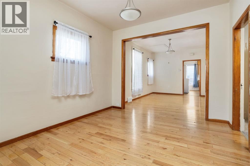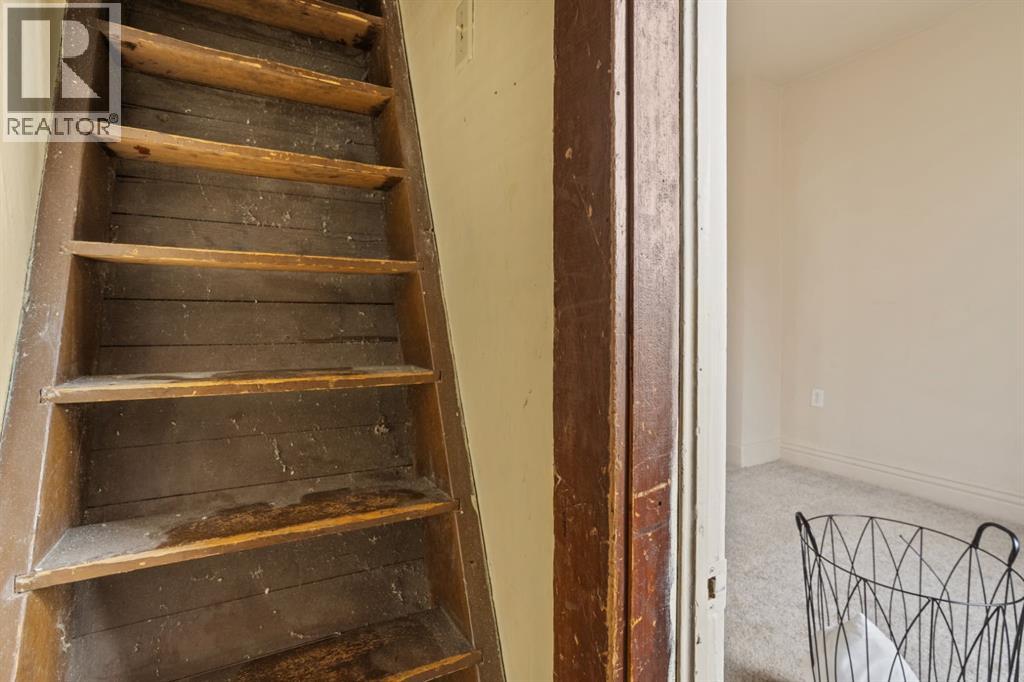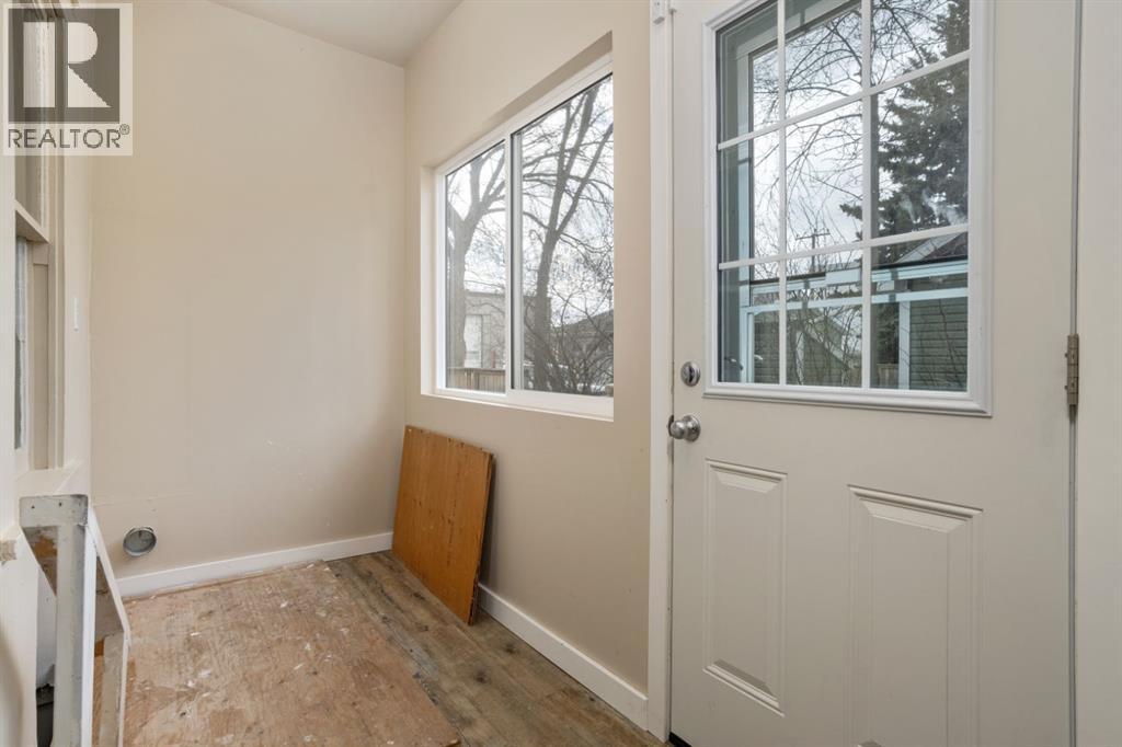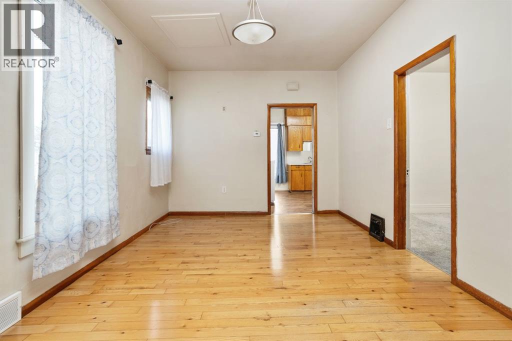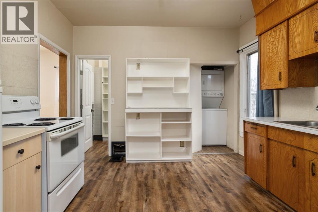 Step into the charm and opportunity of this 880 sq ft home, ideally zoned R4 and perfectly positioned to enjoy the energy of downtown living. With shops, coffee spots, and restaurants just a short walk away, this location offers a lifestyle that’s hard to beat.Whether you’re a first-time buyer or an investor looking for your next project, this vacant home is ready for its next chapter. Inside, you’ll find a bright and welcoming space with plenty of large windows, tall ceilings, and a living and dining area full of character. The main floor features a functional kitchen, a 4-piece bathroom, and convenient stackable laundry just off the kitchen. Two bedrooms complete the layout, along with both front and side entrances and a side deck for easy outdoor access. The fenced yard is a great space for entertaining or pets, and theres a parking pad. One of the home’s fun features is the staircase tucked inside the primary bedroom closet, leading to an attic space with exciting potential for future development. Downstairs, the basement offers access to the home’s utilities and is best suited for storage rather than living space.This property is being sold as-is, where-is, offering a great opportunity for those with vision to make it their own in a location that truly delivers. (id:51989)