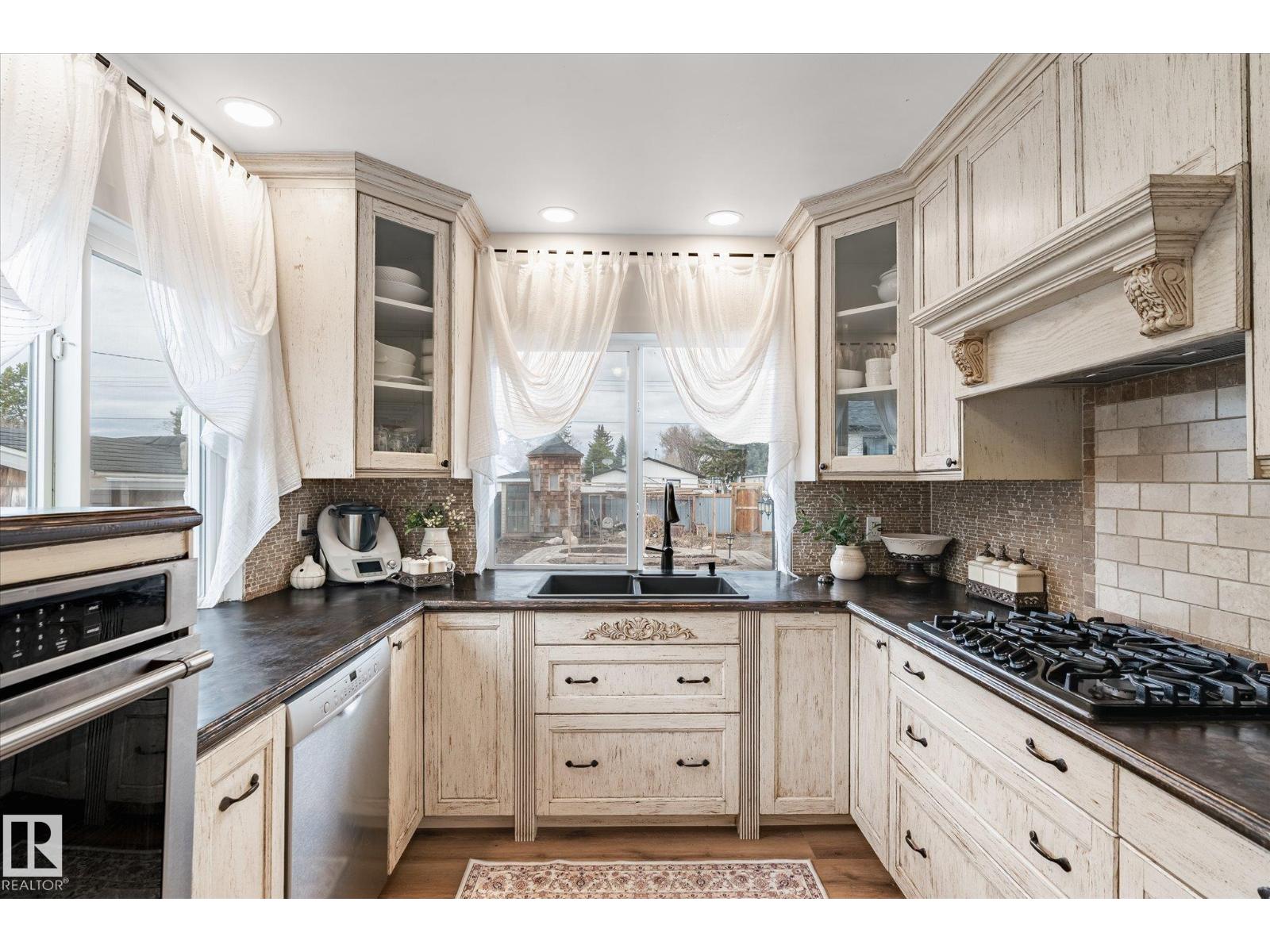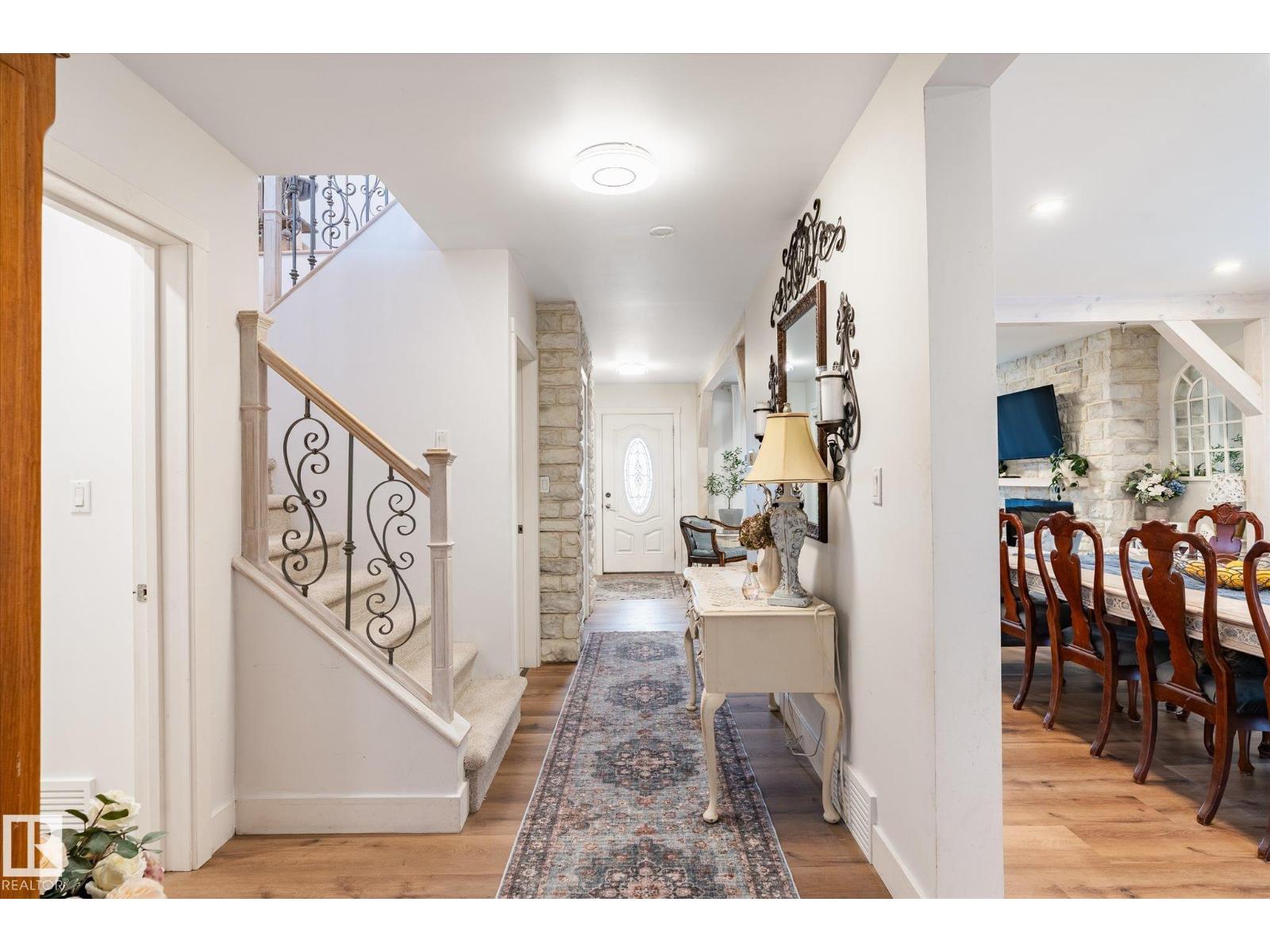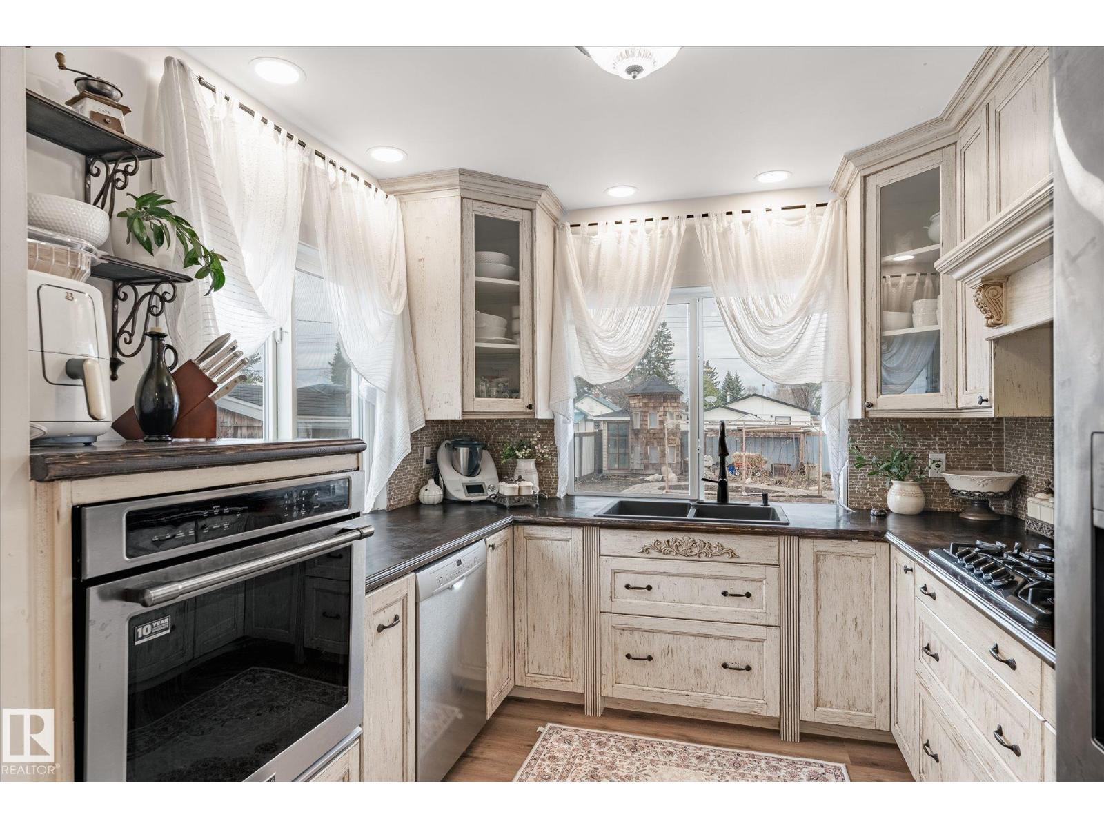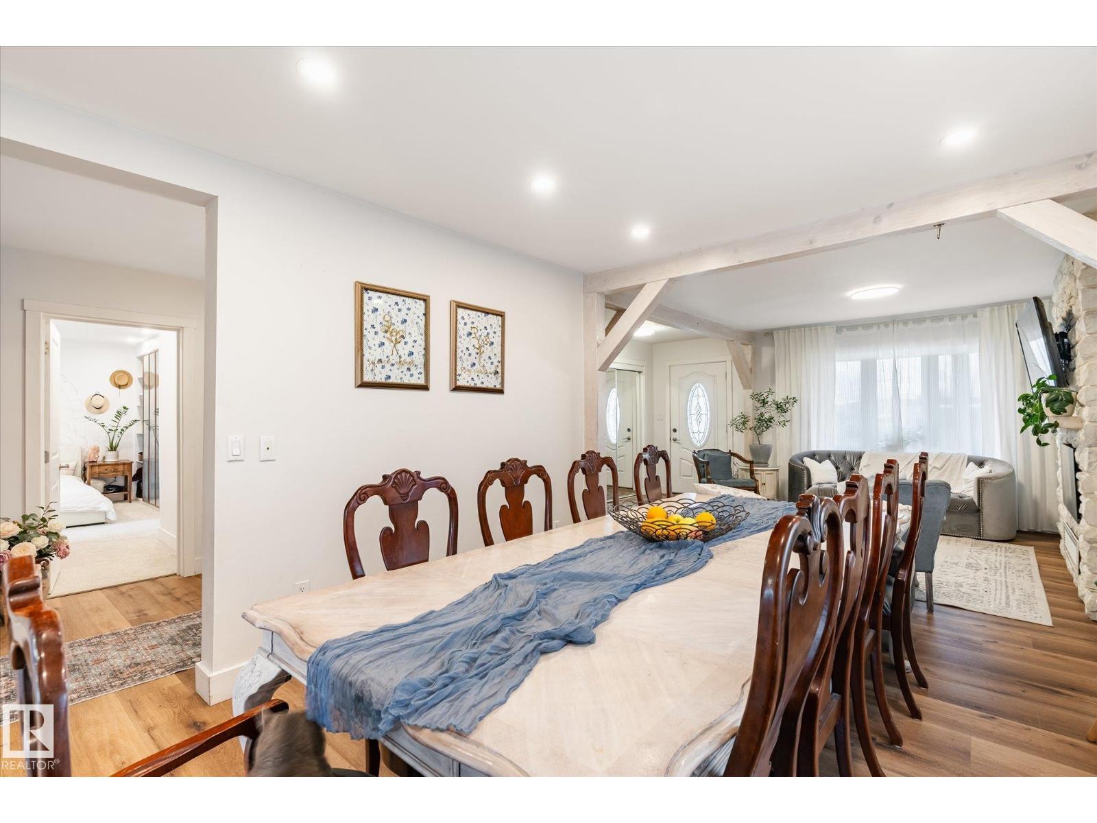 Beautifully updated family home, approximately 95% remodeled in 2017, offering modern comfort and thoughtful design throughout. This impressive property features a custom-built kitchen with high-end cabinetry, stylish feature walls, three fireplaces, numerous pot lights, and custom-designed closets. Situated on a large, fully fenced lot, the professionally landscaped backyard is ideal for outdoor living, complete with paved pathways, a spacious patio, and a stunning pergola—perfect for entertaining or relaxing. The home is well-equipped with upgraded insulation and in-floor electric heating in all four bathrooms. The upper level includes three bedrooms, 2 dens, and a convenient laundry room with sink. The main floor boasts a spacious primary bedroom with ensuite, a chef-inspired kitchen, and expansive living and dining areas designed for hosting family and friends. A bright sunroom provides the perfect space to enjoy backyard views, natural light, or indoor gardening. (id:51989)