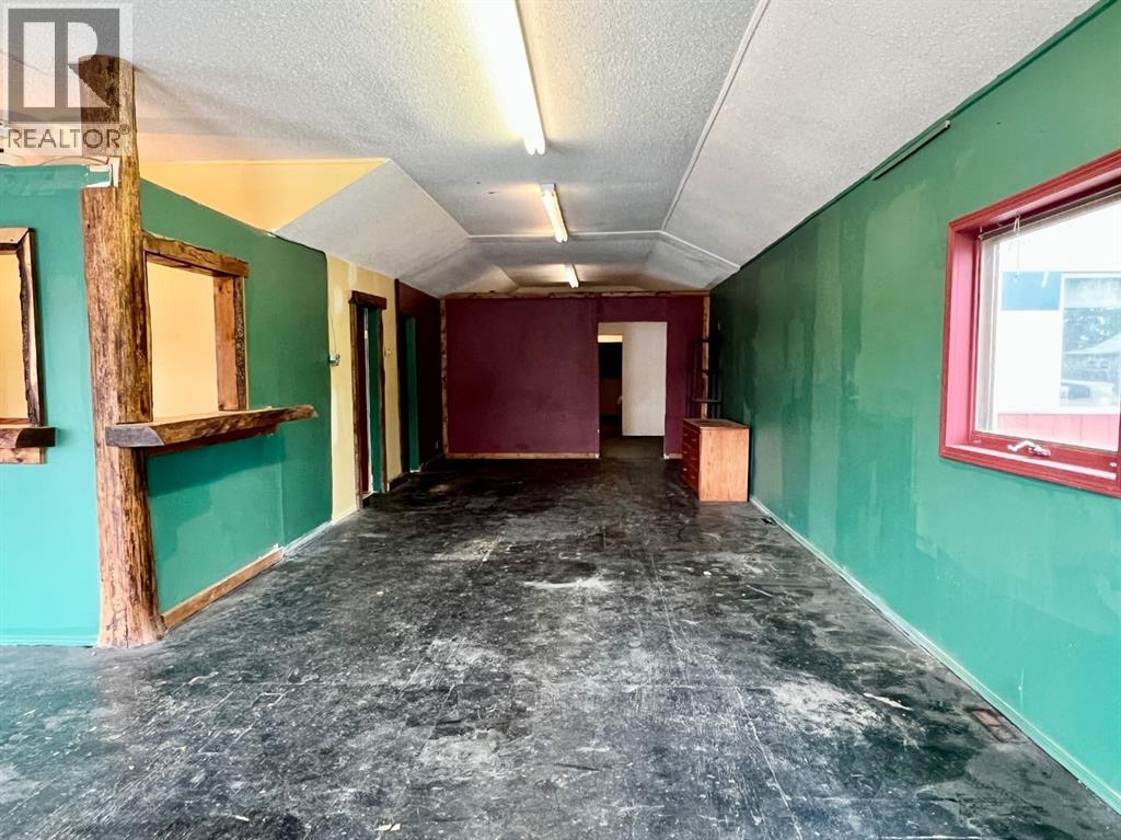 Excellent main-street commercial and live/work opportunity in Caroline. Located between the grocery store and the library for high visibility and foot traffic. Approximately 2,000 sq ft offering flexible space with front reception / retail area, large rear work shop or storage area, plus full kitchen, full bath, and living quarters with side deck and yard. Residential use is permitted if business is maintained. Rear parking and storage, plus street parking at the front. An ideal, versatile space with multiple potential uses. (id:51989)