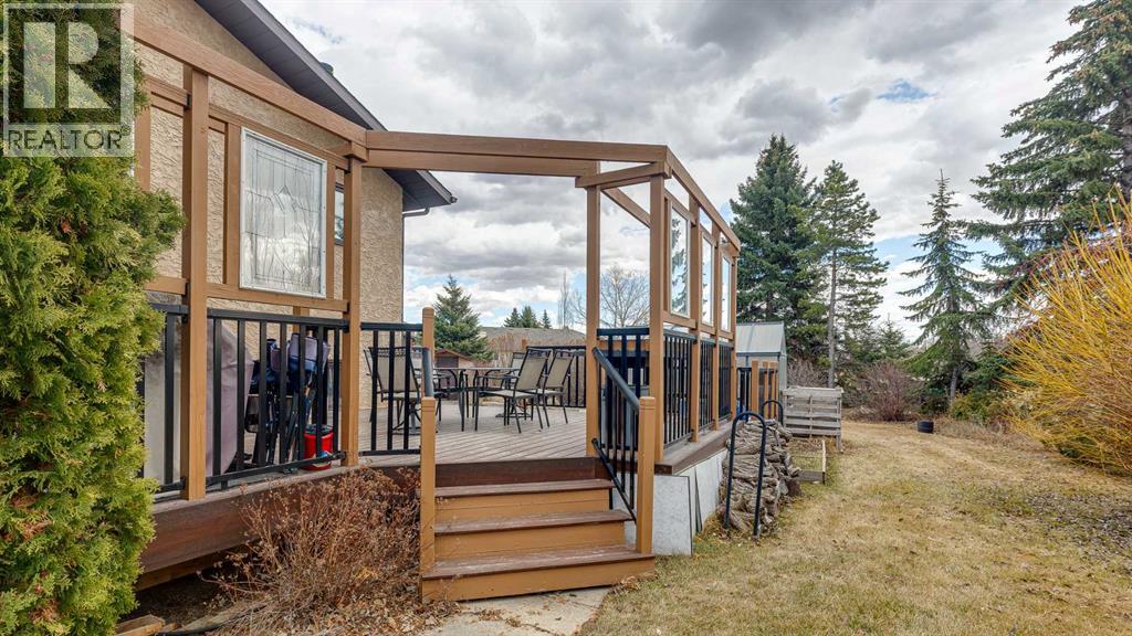 5019 60 Street Close is ideally located in one of Lacombe's most desirable neighborhoods. Curb appeal is high with the home's stucco and brick exterior.The private, pie-shaped backyard will check all the boxes for most homeowners. Parking and RV parking (with plenty of room for long trailers or a large motorhome) is easily accessible from the back lane. The large deck covered with composite deck material features privacy glass, built-in drink counters, and a natural gas line for the cooking grill. The paving stone patio area with fire pit provides additional space for rest, relaxation, and entertaining. Large trees offer some shade, but not too much, as the raised garden beds (included in sale) and greenhouse (also included) catch plenty of sun during the growing season. You will appreciate the extra storage space in the garden shed.Step inside through the front door to spacious entry and open living/dining area with vaulted ceilings. The modern kitchen features a large double sink, stainless steel appliances, gas top stove, striking hood fan, separate oven, glass tile backsplash, and luxurious stain-resistant countertops. A built-in workstation is smartly tucked into a light filled corner with pleasant outside views.Three bedrooms fill the upper level. The good-sized primary bedroom is connected to a stunning 3 piece bathroom. (All the bathrooms in this home have been significantly upgraded.) The tile work is impressive. The shower is barrier-free (no step is required). The other two bedrooms are perfect for little ones and/or guests. These rooms share a second, 3 piece bathroom on this floor. It too, has been renovated and features amazing tile work and a barrier-free shower.The spacious family room in the lower level has a wood burning fireplace faced with tile and brick. The fourth bedroom is located just off the family room. The 4 piece ensuite bathroom attached to the bedroom is impressive. Finished similarly to the upstairs bathrooms, this spa-like bathroom has a steam shower with sitting bench and a bonus jetted tub. The laundry room is situated on this level as well. The separate entrance to the side yard on this level is readily accessed from the front driveway or backyard parking pad.The 2nd lower level gives the homeowner further options. The largest space can function as a recreation area, theater room, craft area, or exercise room. There is storage galore on this level including a true cold room. The utility room is loaded with quality appliances: high efficiency furnace, hot water tank, water softener, automatic humidifier control, central vacuum, and heat recovery ventilator that provides energy efficient air exchange and improved air quality. All this, plus a high quality air conditioner.The attached heated garage (with drain) offers convenient access to the kitchen (for grocery days).5019 60 Street Close is a terrific family home. Homes with special yards like this are hard to find in the City of Lacombe. (id:51989)