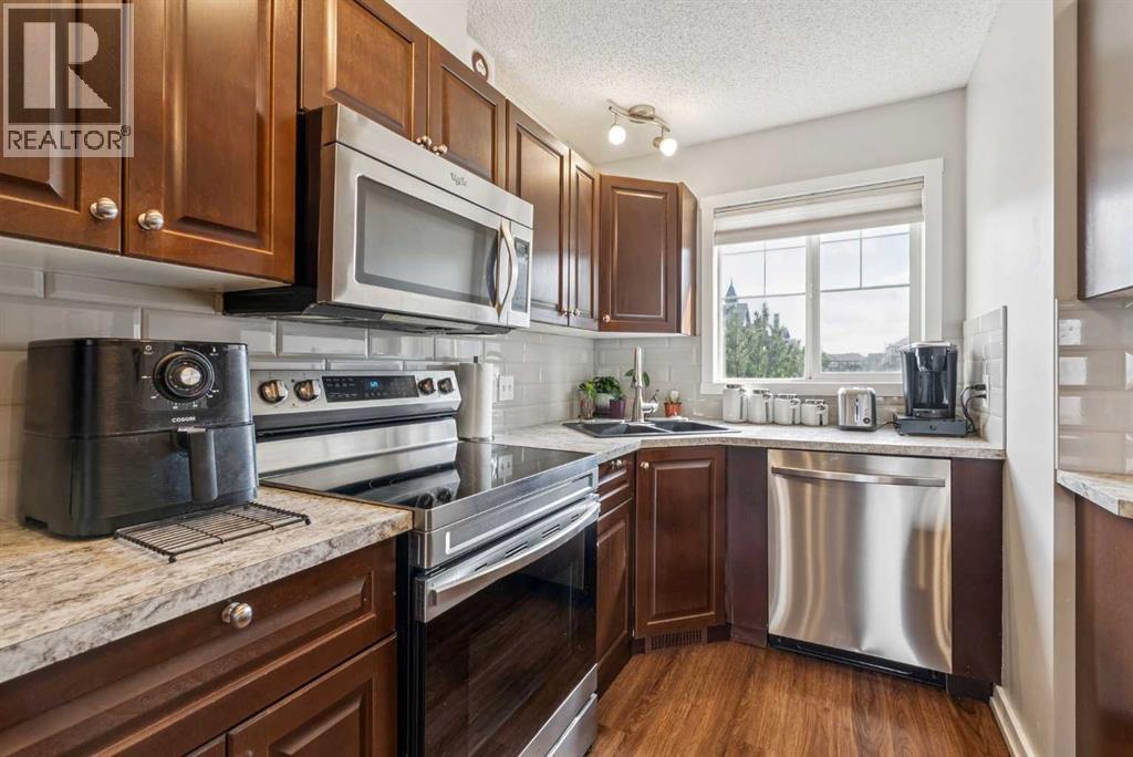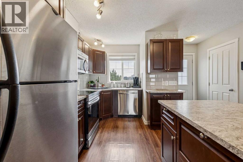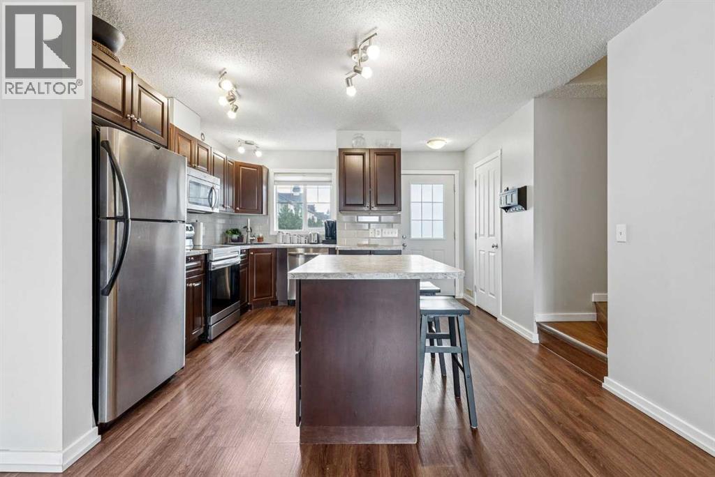 Discover Townhouse 504; A modern, move in ready home in one of Southwest Airdrie’s favourite neighbourhoods. Here are 5 things we LOVE about this home (and we're sure you will too): 1. A FLOOR PLAN MADE FOR REAL LIFE: As homes across the province trend smaller and smaller Townhouse 504 is a breath of fresh air! Offering nearly 1100 SqFt of above grade, refined living space, 3 bedrooms, 1.5 bathrooms this is a full-sized home! The inviting main floor is ideally set up for entertaining with a large, open kitchen and nicely proportioned great room. Upstairs find three good sized bedrooms with a shared 4-piece bathroom. The basement has been nicely developed with a wide open rec-room/flex space currently used as a bedroom but would make an awesome media room, gym or home office with a massive adjacent storage/laundry/utility room. 2. A CONVENIENT SOUTHWEST COMMUNITY: Located in prime Southwest Airdrie, you are within walking distance to three schools: Ralph McCall School (K-4), C.W. Perry School (5-9) and Our Lady Queen of Peace (Catholic 1-9) with easy access to numerous shops, restaurants and professional services along 8th Street SW. 3. THAT MAIN FLOOR: This is the definition of open concept living anchored by a large, functional kitchen featuring a large island with breakfast bar, tons of work/storage space and a large window over the sink. The dining/living area is spacious and offers options for furniture placement depending on your needs and lifestyle while leading outside to your private patio. 4. LOCATION IN THE COMPLEX: Tucked away in the back row with no direct neighbours behind and visitor parking directly across from your home. You also have direct access to Monklands Soccer Park just a few steps from your door (a bonus for dog owners) 5. A WELL MAINTAINED AND MANAGED COMPLEX: Sage is a well-run townhouse/condo complex completed 2004/2005. Residents enjoy very reasonable condo fees ($347/month), beautifully maintained grounds and ample visitor parking throu ghout the complex in a prime Sagewood location. (id:51989)