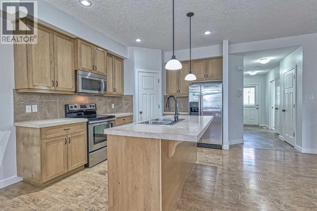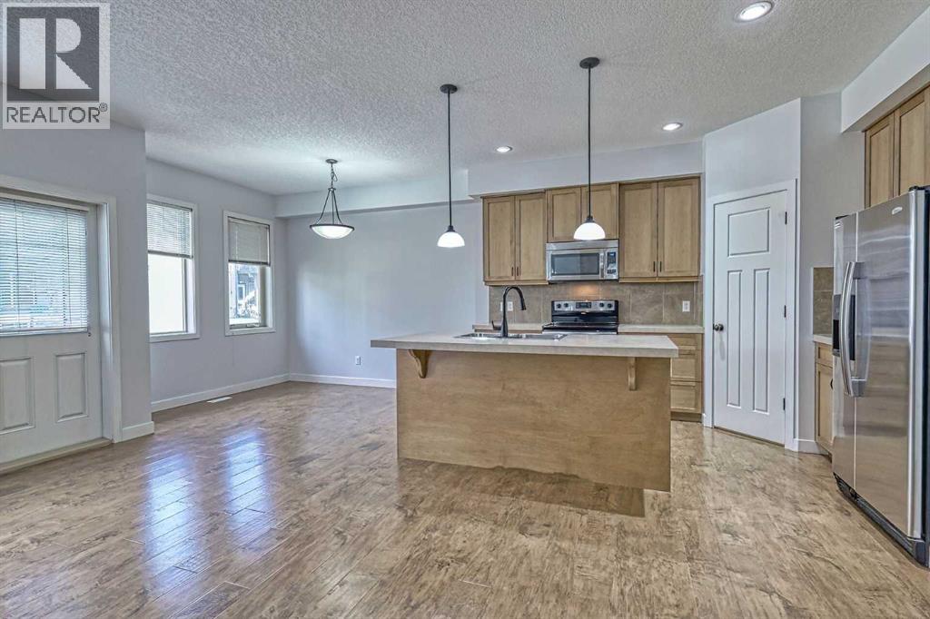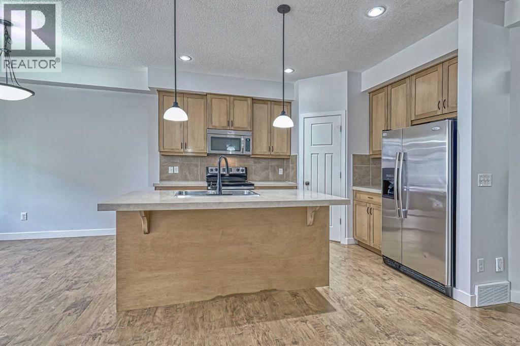 WOW—THIS LOCATION CAN’T BE BEAT! This beautifully maintained 3 bed, 3 bath townhouse is completely move-in ready (quick possession available) and offers the perfect blend of comfort, convenience, and style. Located next to the COCHRANE GOLF COURSE - with DIRECT walk access to the RESTAURANT and MAIN CLUB HOUSE. The main floor welcomes you with an open-concept layout ideal for entertaining. A bright foyer features a handy 2-piece powder room and its closet for coats and shoes. A spacious living room with a warm gas fireplace sets the tone for cozy evenings at home. The kitchen is designed for function and flow, offering abundant cabinetry, a walk-in pantry, breakfast bar seating for four, and all appliances included. The dining area opens to freshly stained back deck with natural gas hookup, perfect for summer BBQs. Upstairs, the layout shines with three generous bedrooms, a full 4-piece bathroom and laundry right where you need it. The primary suite is a true retreat with a luxurious ensuite—separate shower, deep soaker tub—and a walk-in closet with built-in organizer. The basement is a blank canvas with bathroom rough-in, egress window, and plenty of space to create a bedroom, family room, or both. Extras include a built-in vacuum, window coverings, and garage door opener. Fresh paint throughout makes this home feel brand new. Condo fees are $335.96/month and the well-run complex boasts a strong reserve fund. Steps from river pathways, close to Cochrane’s historic downtown, Spray Lake Rec Centre, and so much more. Claim the active, low-maintenance lifestyle built for your on-the-go life. (id:51989)