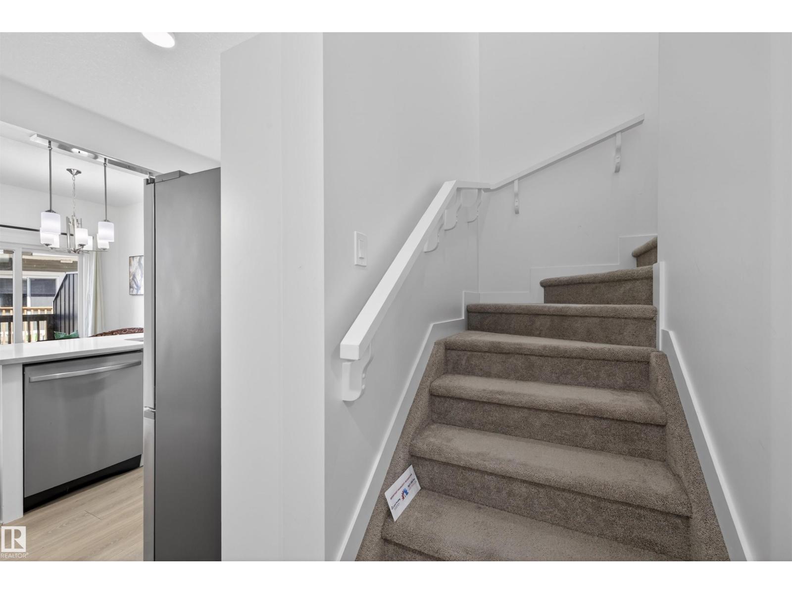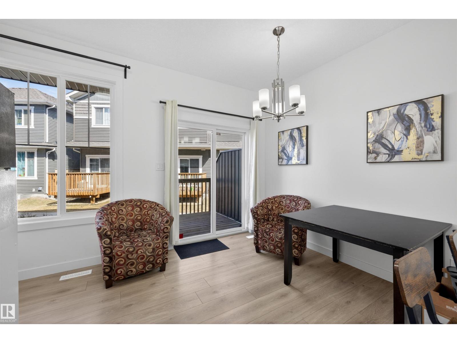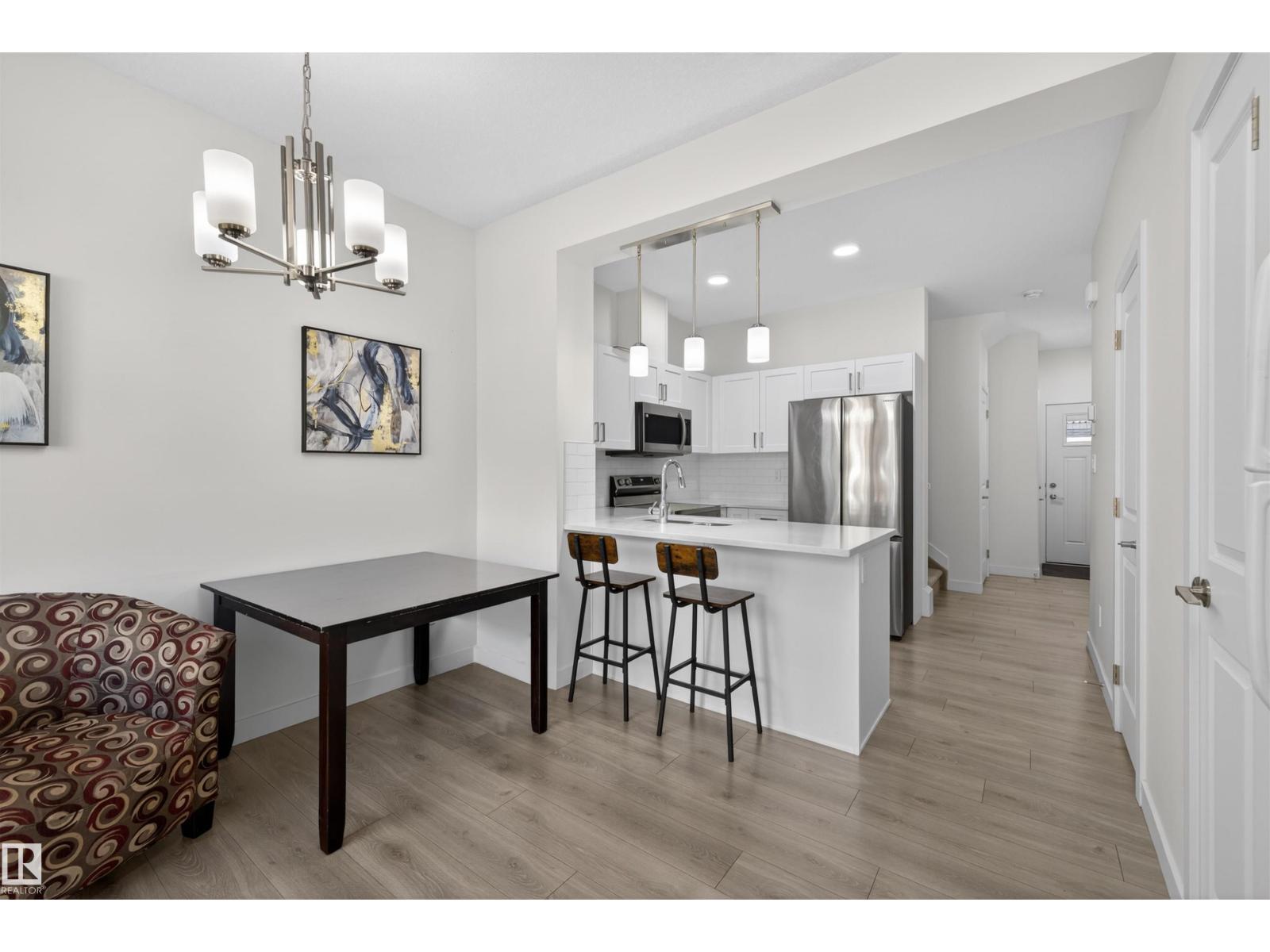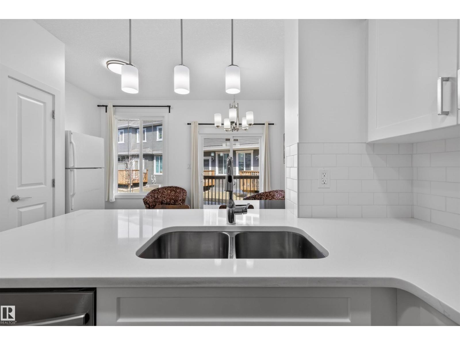 Opportunity meets flexibility in this townhome located in desirable Southwest Edmonton! This 4 bedroom, 3.5-bath property offers a unique setup, currently rented by the room, ideal for investors or buyers seeking mortgage support. The main floor features a modern white kitchen with quartz countertops, stainless steel appliances, and durable vinyl plank flooring throughout the open-concept living and dining area. Large windows and a north-facing back deck provide excellent natural light. Upstairs includes a spacious primary bedroom with ensuite, two additional bedrooms, a full bath, and convenient upper-floor laundry. The basement is developed with additional bedroom/living space (not permitted). Buyer to accept as-is. Single attached garage. Located in The Orchards with access to clubhouse, splash park, playgrounds, courts & more. Tenant rights apply; showings require minimum 24 hour notice. (id:51989)