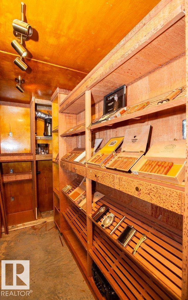 Sick of big city taxes? Here is a gem in Busby with lots of extras. 4 bedroom 4 bath bungalow with a 32x32 double attached garage with 13 foot ceilings and a storage mezzanine at the front. All set on 3 lots on the corner. Fenced yard, 2 tier deck and lots of room for the kids plus close to Busby school. The home features a huge master suite with double shower and double jacuzzi tub. Flooring on the main floor done in Versace tile with brass inlay. Open concept with huge kitchen and room to add an island if desired. There are 3 bedrooms in the basement, one features a 4 piece ensuite with jacuzzi tub. Also, a walk in climate controlled humidor room for cigar and wine storage. Also, a safe room plus the security system with 8 security cameras. This property is a must see. (id:51989)