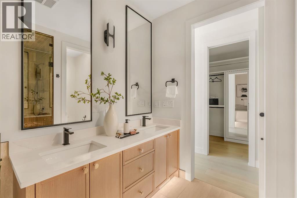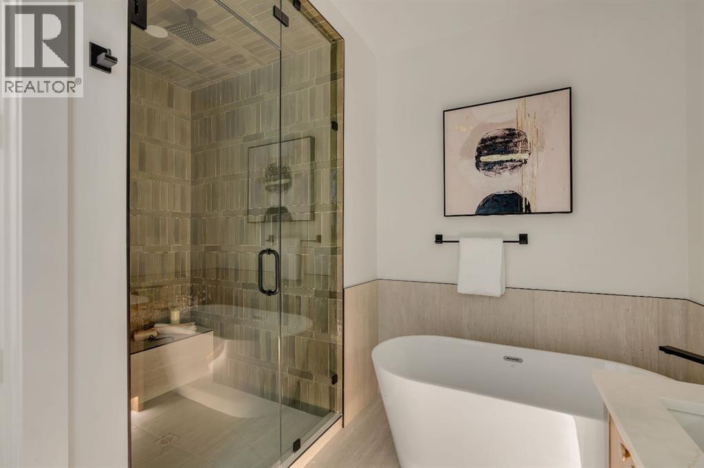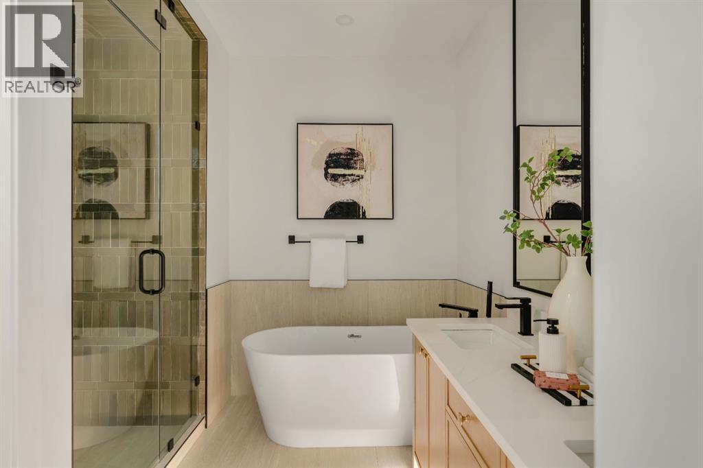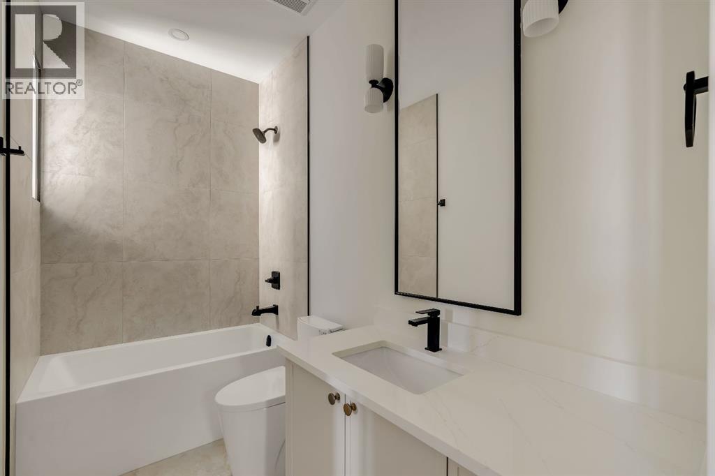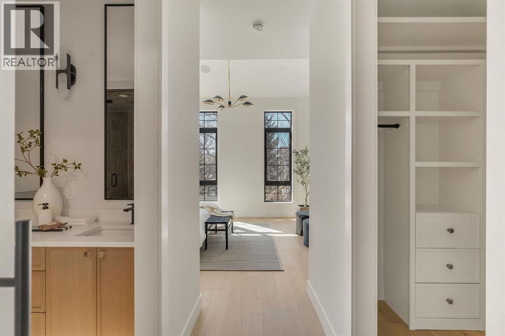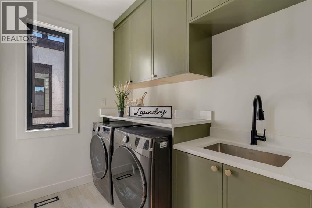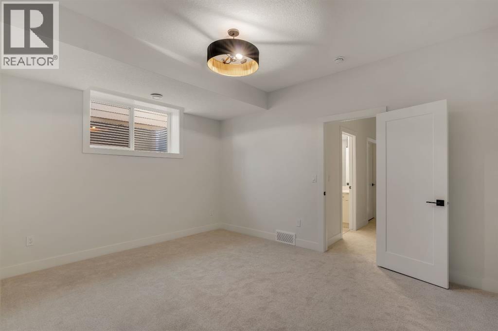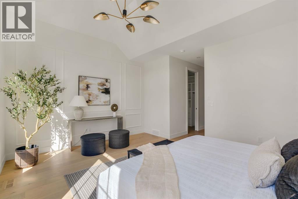 Located just one block from Confederation Park, this beautifully crafted home offers over 2,770 sq ft of refined living space designed with both style and function in mind. The main level features soaring 11-foot ceilings, rich hardwood flooring, a formal dining area with custom wainscoting, large floor to ceiling windows, and a chef-inspired kitchen anchored by a striking 15-foot island, complete with built-in Fisher & Paykel appliances, quartz countertops, an oak island, under-cabinet lighting, a curved plaster hood fan, pot filler, and elegant gold and black accents. The spacious living room is highlighted by a custom plaster gas fireplace with arched oak built-in shelving, while a well-designed mudroom and a designer powder room wrapped in statement wallpaper add everyday convenience and character. Upstairs, 9-foot ceilings and hardwood flooring continue throughout, leading to a stunning primary retreat with vaulted ceilings, detailed wainscoting, and a luxurious 5-piece ensuite featuring in-floor heating and a steam shower rough-in, along with two additional bedrooms, a full 3-piece bathroom, and a dedicated laundry room. The fully finished basement expands the living space with a large recreation area, office, arched wet bar, an additional bedroom, and a 3-piece bathroom. Additional highlights include rough-ins for air conditioning, ceiling speakers, security system, and exterior cameras, along with upgrade options available. Ideally located near parks, schools, shopping, SAIT, the University of Calgary, Foothills Medical Centre, Alberta Children’s Hospital, and offering quick access to the LRT, Highway 1, and Deerfoot Trail, this home combines luxury living with exceptional convenience, with exterior landscaping to be completed as weather permits. Call today to book your private tour! (id:51989)