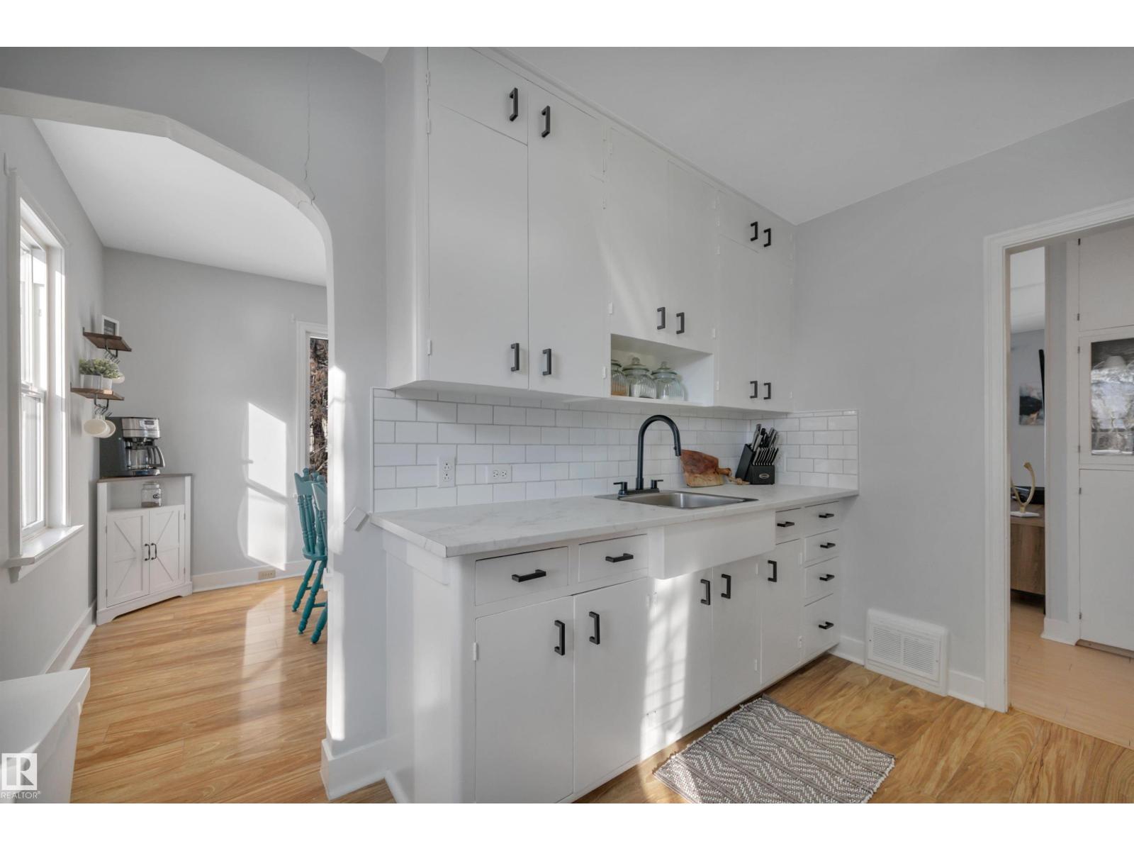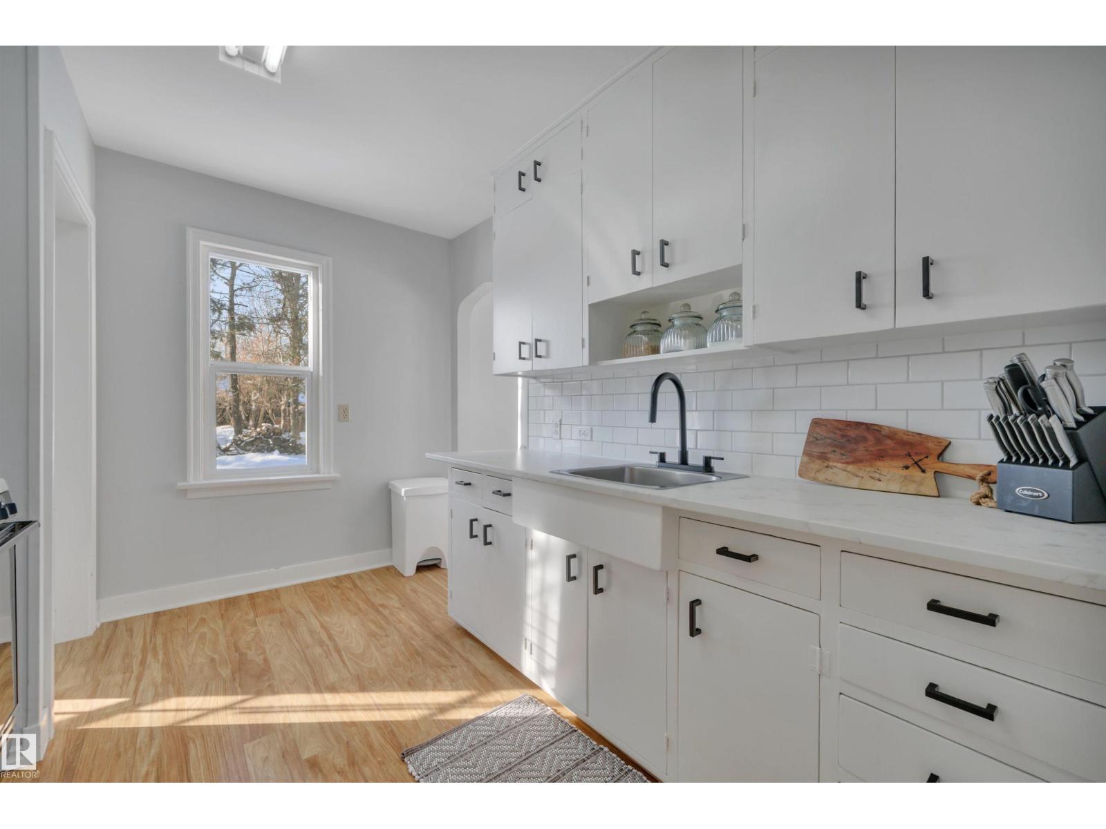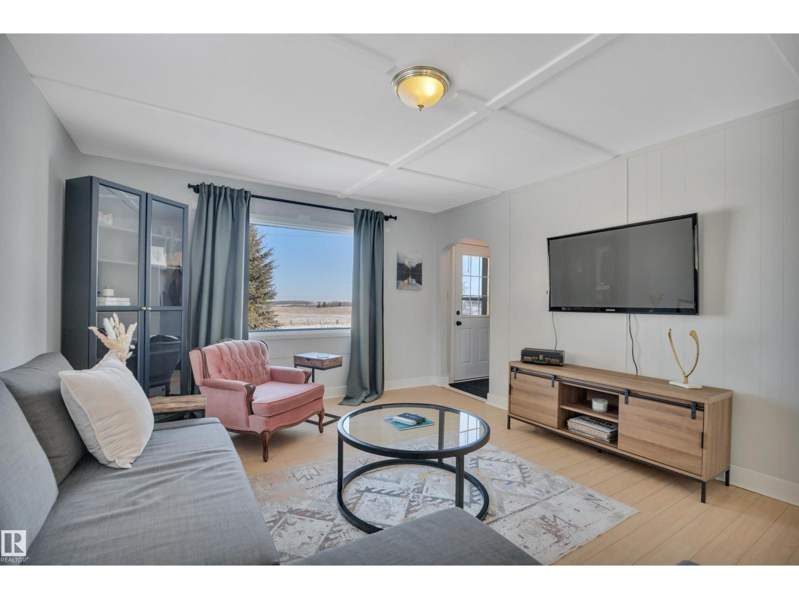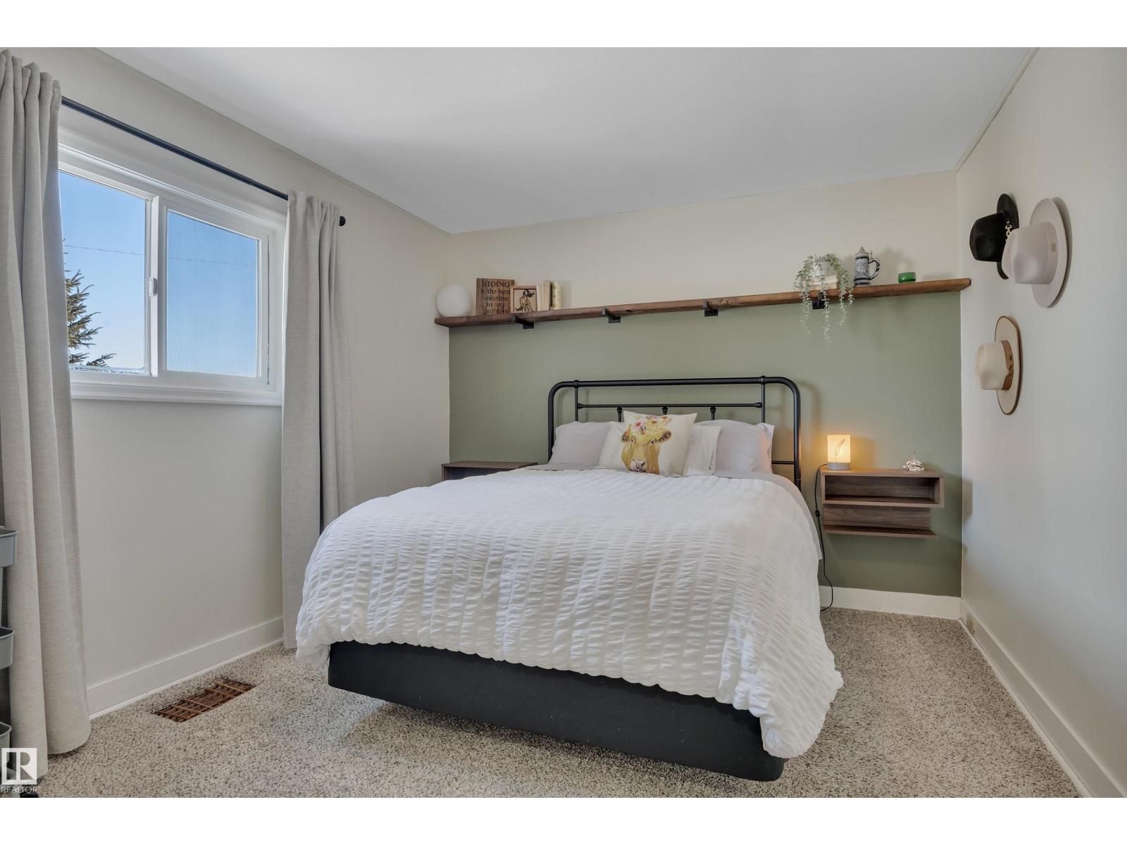 CUTE AS A BUTTON! 125' x 125' FOOT LOT! Searching for a well maintained character home with pinterest worthy updates? Massive yard to add your dream garage or workshop? Buy and hold for future development? This 893 sq ft 2 bed, 1 bath shows exceptionally well & unites modern touches with farmhouse vibes! Feat: renovated bathroom, refreshed kitchen, paint, laminate flooring, plush carpet, vinyl windows, tin roof, painted siding, newer front porch, newer hot water tank, & more! Classic separated main floor plan w/ large living room & window for ample natural light. Cozy dining room, galley style kitchen w/ gas stove, subway tile backsplash & laminate countertop. 2 spacious bedrooms, gorgeous 4 pce bathroom & storage. The basement is unfinished, but home to laundry & storage, & room for additional bedroom / rec room & bath! Rear lane access with amazing DOUBLE LOT! RV parking, and tree lined for your garden, summer BBQs and bonfires. Steps to groceries & 2A; pastures views from the porch. A must see! (id:51989)