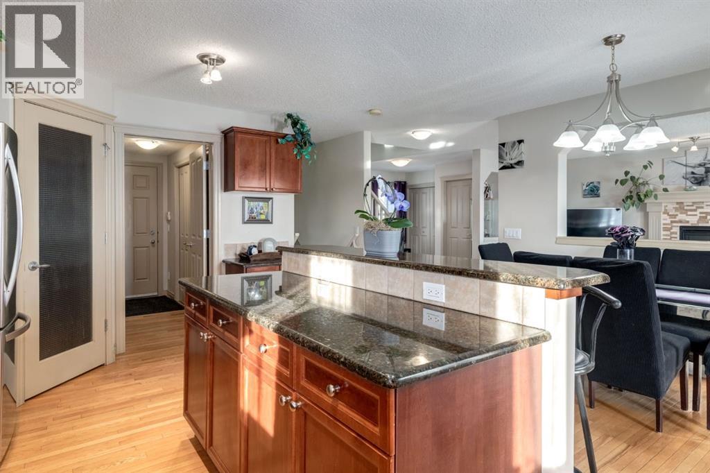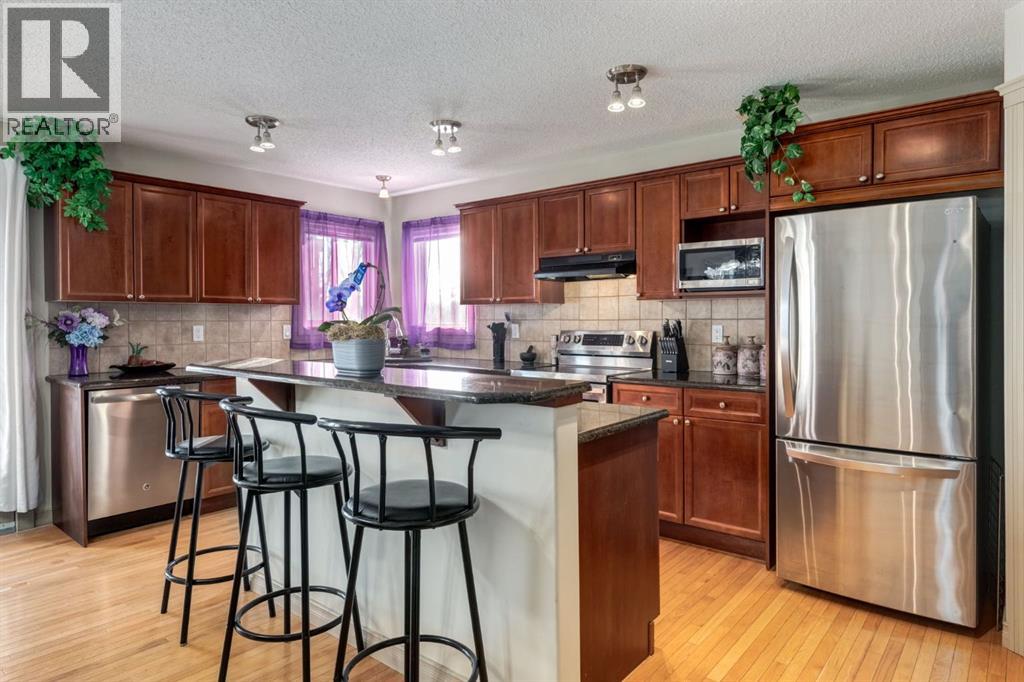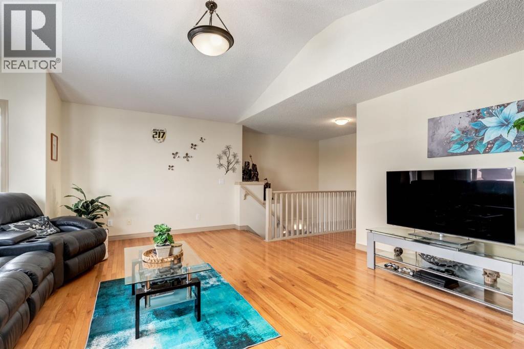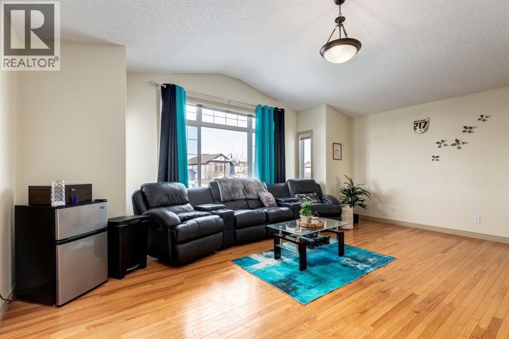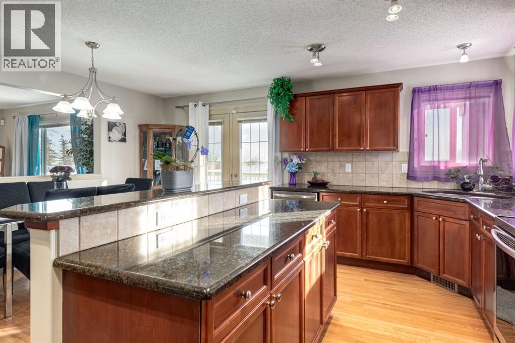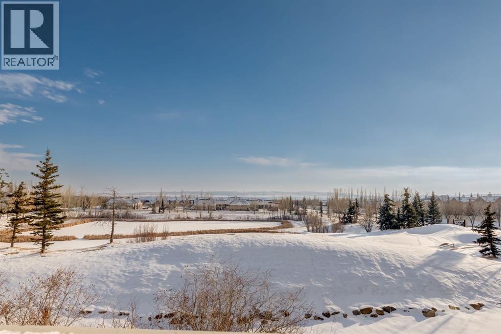 Situated on a peaceful cul-de-sac in coveted Crystal Green this beautiful walkout home is in a perfect location and provides the added privacy and tranquility of backing south onto the golf course with mountain views. This stunning home features endless upgrades including hardwood flooring, central A/C, balconies spanning the length of the house on two levels and is flooded with natural lights through expansive south facing windows. Showcasing stunning curb appeal, and a large front porch, this executive home greets you with a spacious front entryway with room for bench seating. The first thing you notice when you enter this stunning home is a cheerful and bright feel as sun shines through your huge south facing windows that showcase nature. Main floor highlights include a sprawling kitchen with granite countertops, kitchen island with bar seating, and a massive walkthrough pantry with direct access from the oversized garage (with room for trucks, 220V electrical and a heater). The spacious living room boasts a cozy fireplace with tile surround and timeless mantle to creates the perfect place to relax and unwind. Step out from the kitchen onto your massive south facing deck with nearly 400sqft of space, aproviding an incredible oasis to relax, eat dinner, or BBQ in endless sunshine. The main floor is completed by a spacious dining area with room to host large gatherings, and a 2-piece bathroom. Upstairs displays a massive bonus room with soaring vaulted ceiling, which makes the perfect place to enjoy family movie nights. Down the hall contains laundry and your private primary suite with room for king-sized furniture, a massive 5-piece ensuite bathroom with dual vanities, a make-up area, large soaker tub, standup shower, and a patio door leading out to your top-level balcony. The second, sprawling bedroom has room for multiple beds, a desk, and boasts a large 3-piece ensuite, and sunny south facing windows with access to the top floor balcony. Downstairs has been recently updated to include brand new luxury vinyl plank flooring throughout, has multiple windows allowing light to stream into your home – making it feel nothing like a basement. The basement features two large, additional bedrooms, a 3-piece bathroom, and tons of storage. The basement level allows direct access to your backyard which contains a large patio space, landscaping, a spacious dog run, and tons of greenery in the summertime. This one-of-a-kind home is in an unparalleled location at the end of a dead-end street, backs south onto the golf course, showcases mountain views, multiple outdoor spaces, and has been lovingly maintained over the years. This home is steps from a greenspace with playground, is walking distance to multiple schools, Okotoks off leash park, shopping, and the amenities of Crystal Shores Resident’s association, which includes lake access, fishing, and skating activities. Additional upgrades include an HRV, A/C (2023), newer hot water tank, and a new furnace (2023). (id:51989)
