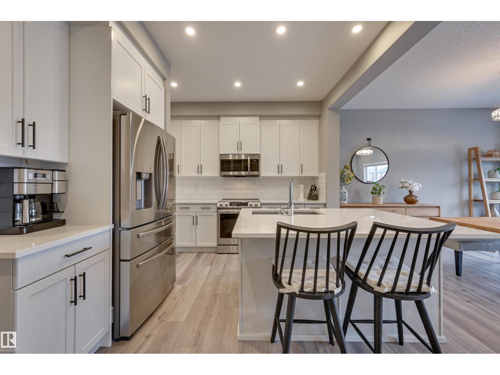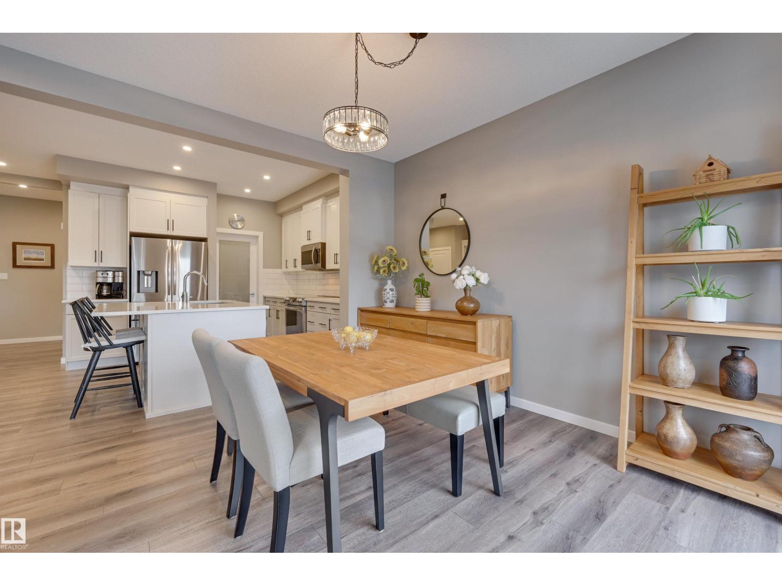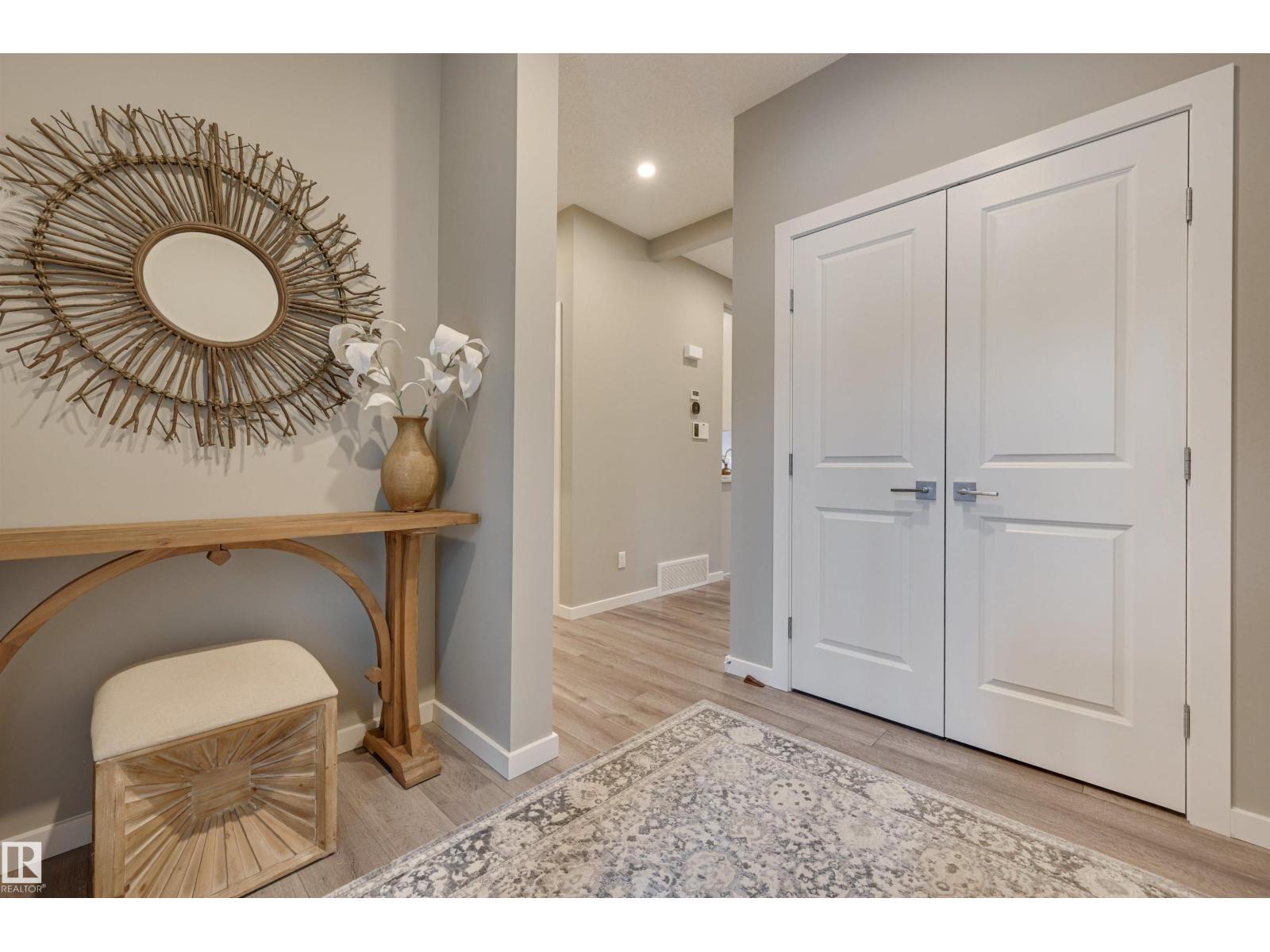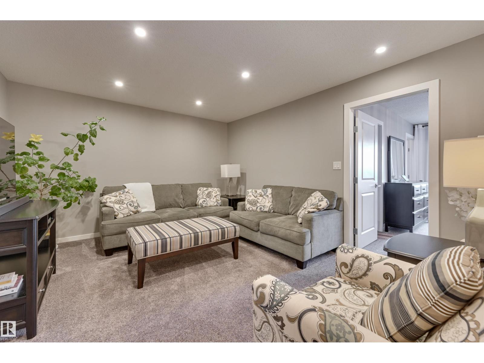 Bright & welcoming entry leads into a spacious main floor designed for both everyday living & entertaining. The open-concept kitchen features 2-toned cabinetry, a large central island, flowing seamlessly into the great rm with fireplace & dining area overlooking the deck & professionally landscaped, low-maintenance backyard. The kitchen pantry designed by California Closets walks thru to additional storage, conveniently located off the double attached garage. Upstairs, a generous central bonus rm provides ideal separation between the private primary & secondary bedrooms. The spacious primary suite offers a full ensuite & walk-in closet, complemented by two additional bedrooms, a full bath, & second-floor laundry. A side entrance adds flexibility for the fully developed basement with snack bar, family rm, 4th bedroom & full bath. Comfort is elevated with A/C, upgraded cabinetry & fixtures, plus Hunter Douglas blinds throughout. Ideally located in Kinglet across from acreages & quick to Yellowhead. (id:51989)