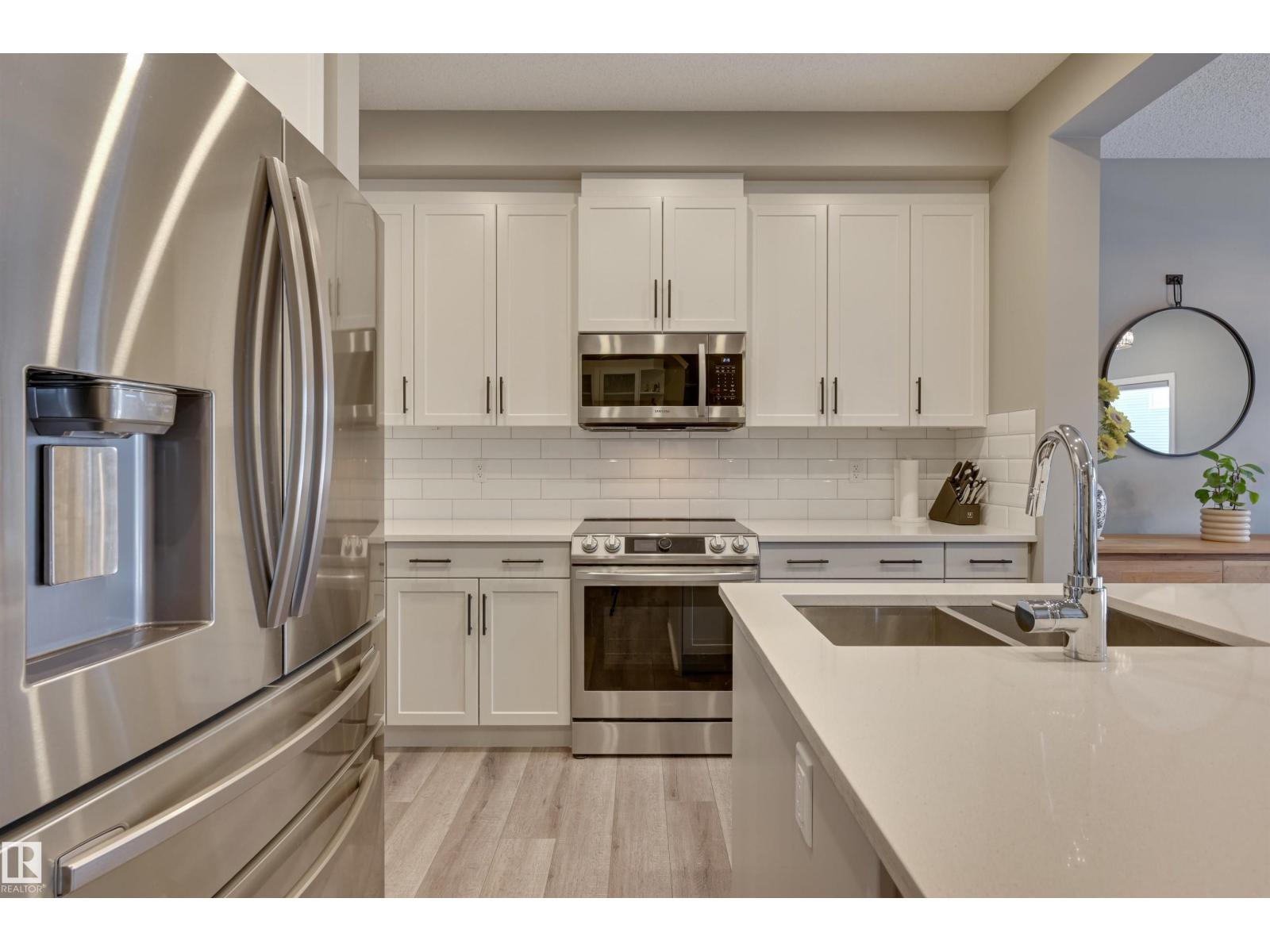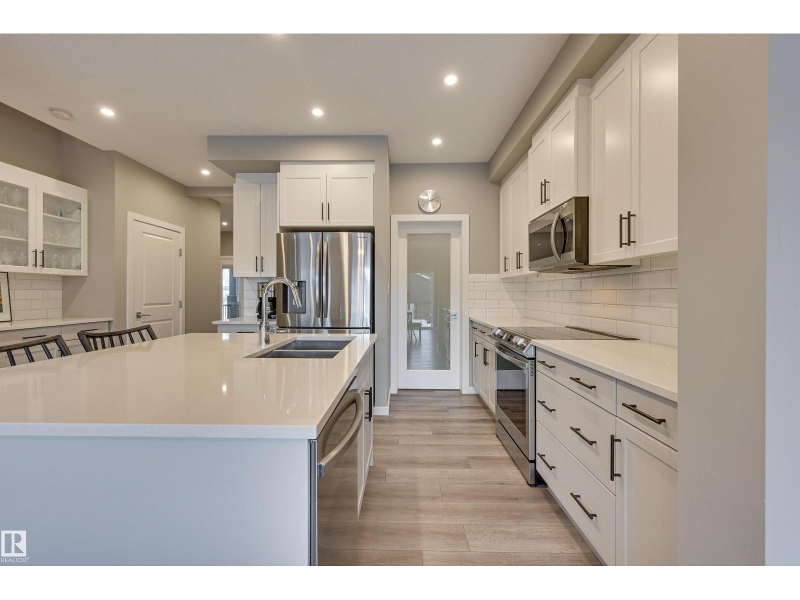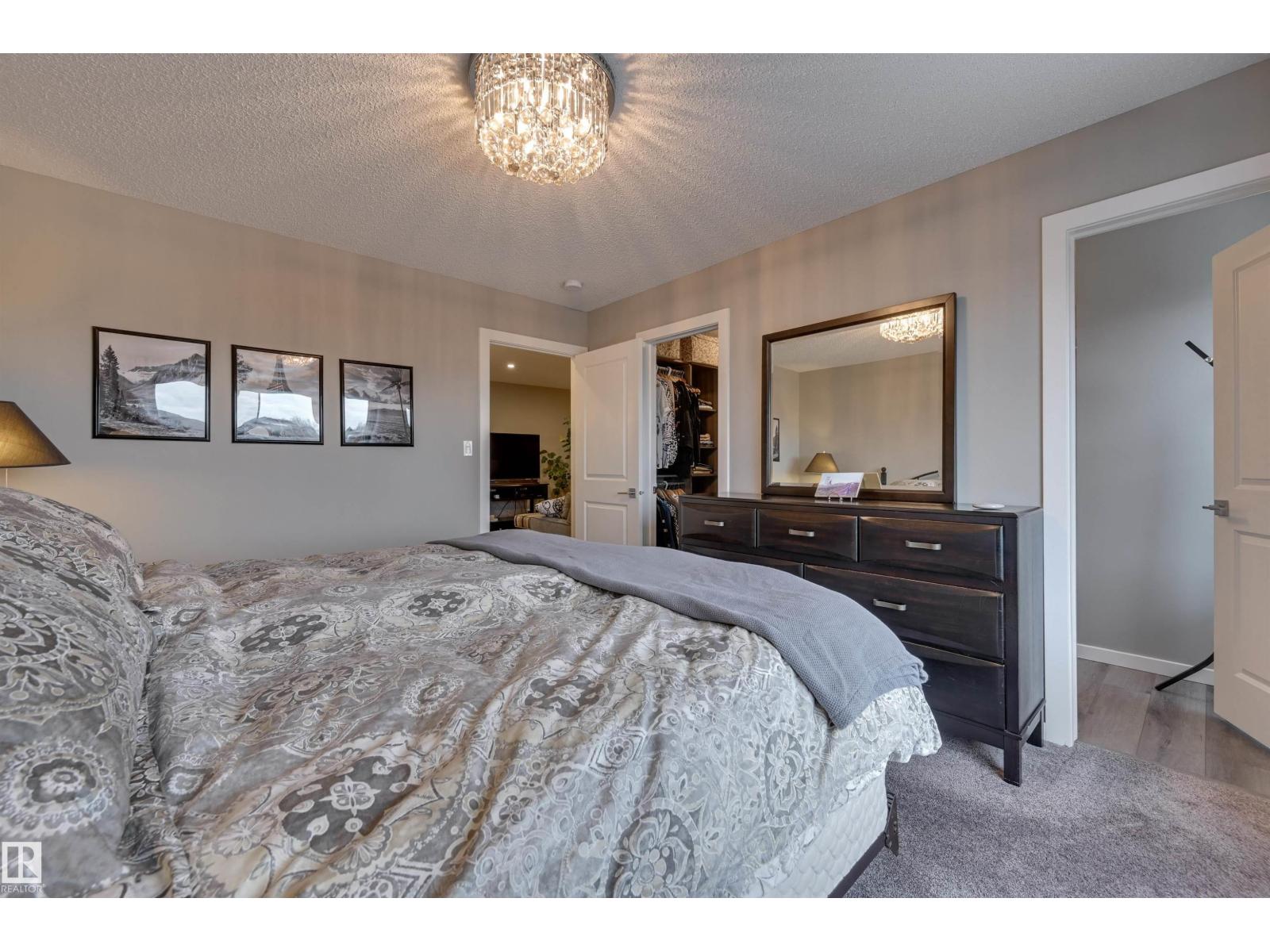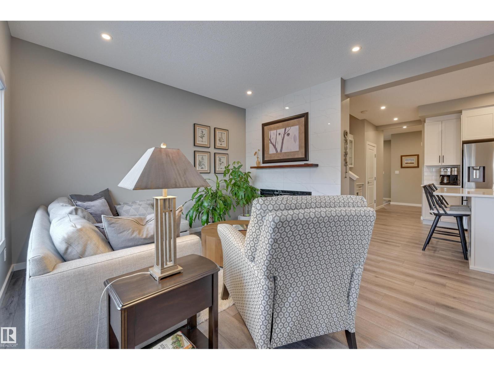 Bright & welcoming entry leads into a spacious main floor designed for both everyday living & entertaining. The open-concept kitchen features 2-toned cabinetry, a large central island, flowing seamlessly into the great rm with fireplace & dining area overlooking the deck & professionally landscaped, low-maintenance backyard. The kitchen pantry designed by California Closets walks thru to additional storage, conveniently located off the double attached garage. Upstairs, a generous central bonus rm provides ideal separation between the private primary & secondary bedrooms. The spacious primary suite offers a full ensuite & walk-in closet, complemented by two additional bedrooms, a full bath, & second-floor laundry. A side entrance adds flexibility for the fully developed basement with snack bar, family rm, 4th bedroom & full bath. Comfort is elevated with A/C, upgraded cabinetry & fixtures, plus Hunter Douglas blinds throughout. Ideally located in Kinglet across from acreages & quick to Yellowhead. (id:51989)
