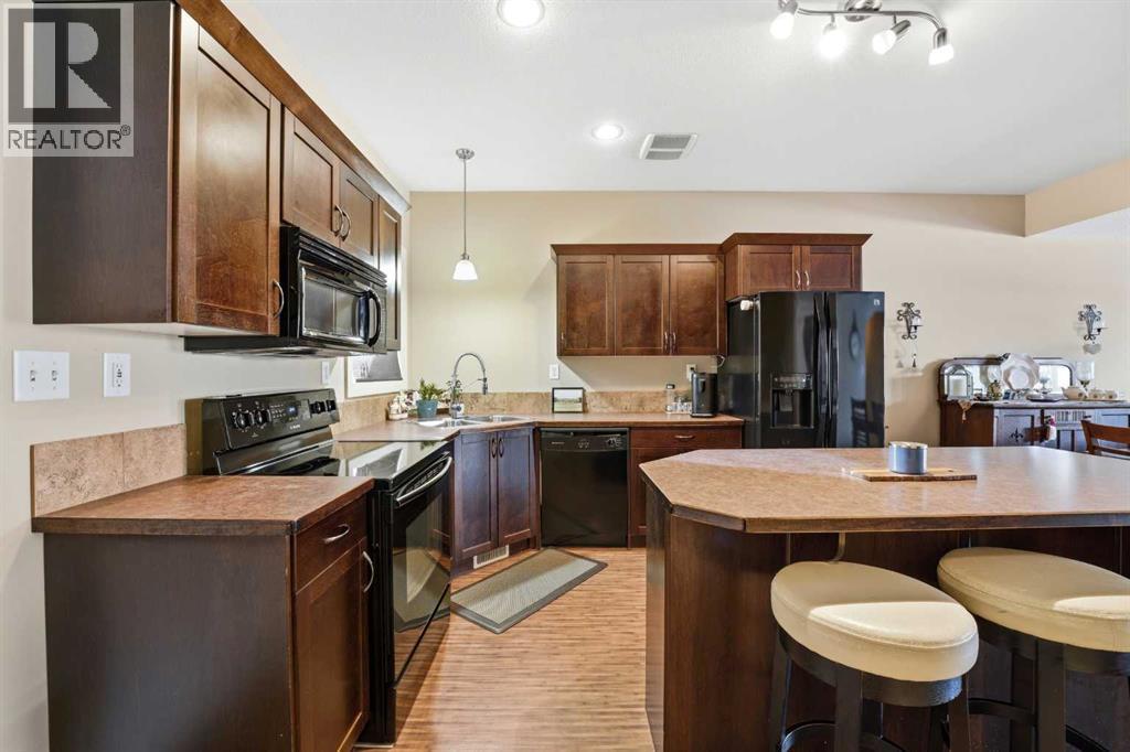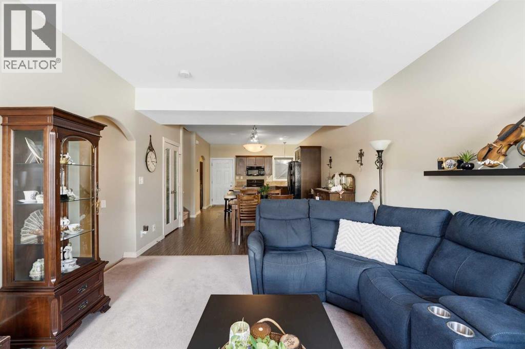 Welcome to 52, 45 Ironstone Drive ~ An Immaculately Maintained 2 Storey Offering 3 Bedrooms, 3.5 Bathrooms and a Single Attached Garage. The main floor features an open concept design with a highly functional kitchen complete with ample cabinetry, a centre island and pantry space. These townhomes offer impressive square footage, allowing plenty of room for a full dining table without compromising flow. The kitchen and dining area are finished with Gerflor flooring — incredibly durable while also being comfortable underfoot. The bright living room is complemented by a gas fireplace and large windows that fill the space with natural light. Tucked conveniently near the back entrance is a 2pc bathroom. Upstairs you’ll find two oversized primary suites, each complete with their own full 4pc ensuite — an ideal setup for roommates, guests or family living. The fully developed basement boasts 10 ft ceilings and offers a cozy secondary living space, a wet bar, a 4pc bathroom, and a spacious third bedroom with a massive walk-in closet. Additional highlights include a single attached garage with a separate storage closet, high-end window coverings throughout, and the convenience of snow removal handled for you. This property truly shines and shows even better in person ~ immediate possession available. (id:51989)
