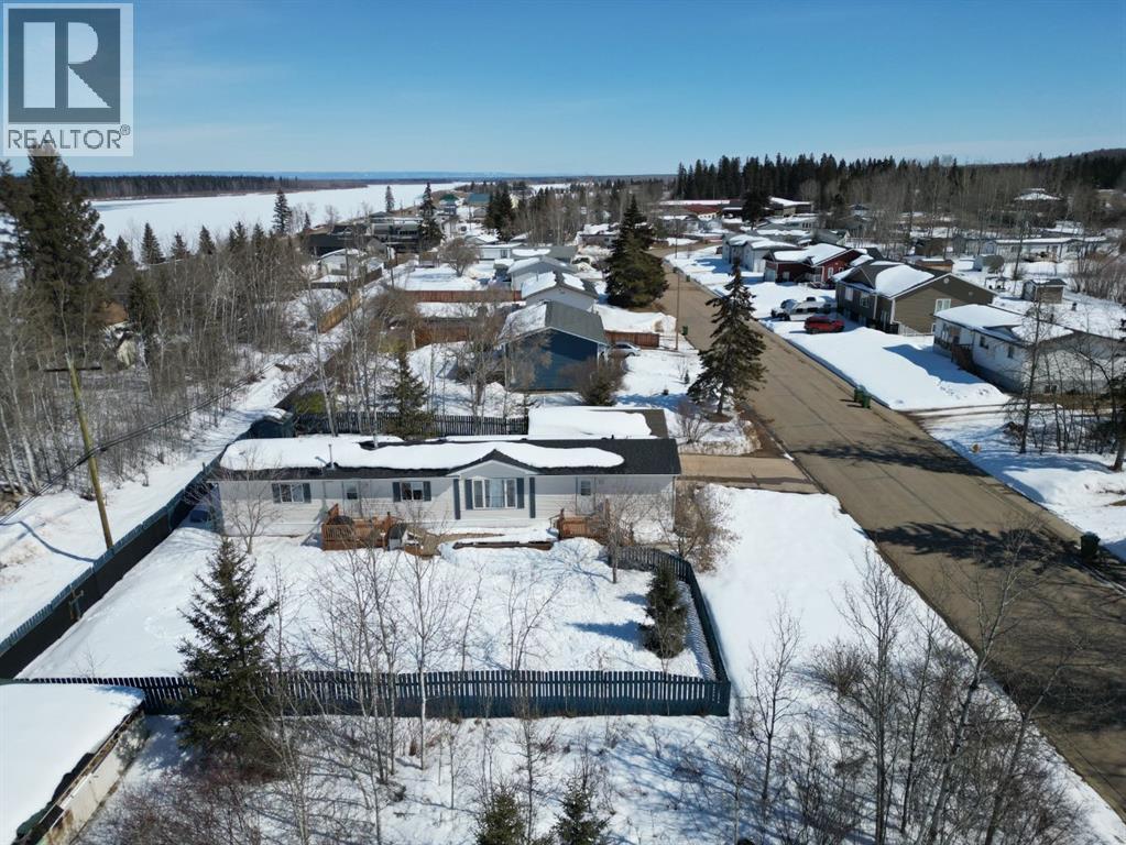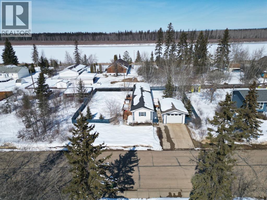 Set on a quiet street in Fort Vermilion and just a short walk to a park, grocery store, and the majestic Peace River, this property offers a great mix of location, space, and functionality. Featuring a 3 bed, 2 bath home, detached heated garage, and a huge fenced lot, there’s plenty here to appreciate. The yard offers excellent curb appeal with mature trees for shade and shelter, a concrete driveway, and lots of room to enjoy the outdoors, complete with a firepit area and storage shed. Step inside to a bright and welcoming home that has seen numerous tasteful updates, including new flooring throughout and a refreshed, modern feel. The layout is both practical and comfortable, with two bedrooms and a full bath on one end, and a private primary suite with its own full ensuite on the other. The main living area features vaulted ceilings and an open-concept design, with a spacious kitchen offering plenty of cabinets and counter space, quality appliances, and a seamless flow into the dining and living room. Large windows bring in an abundance of natural light, making the space feel open and inviting. A separate laundry room adds everyday convenience. Out the back, you’ll find a 16x24 detached heated garage with a concrete floor—perfect for parking, storage, or a great hobby space. With updates including central A/C, newer decks, and shingles, this well-maintained home is truly move-in ready and offers a great opportunity to step into comfortable, worry-free living in a fantastic location. (id:51989)