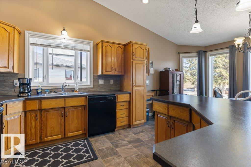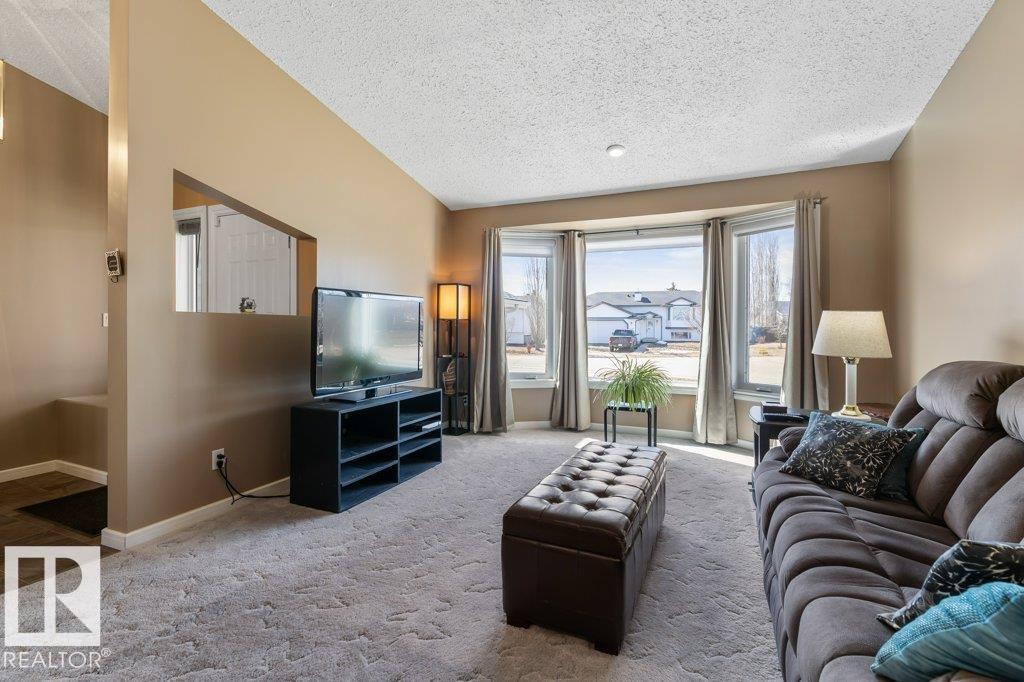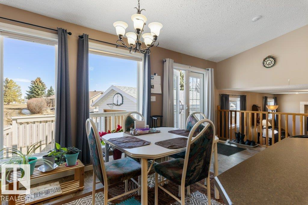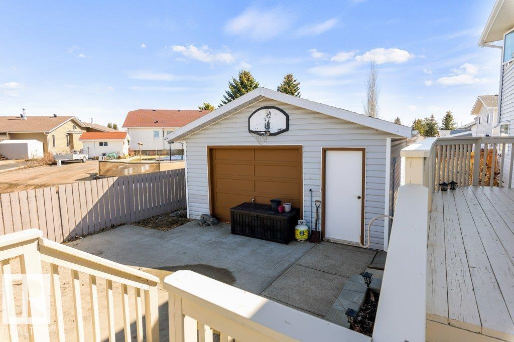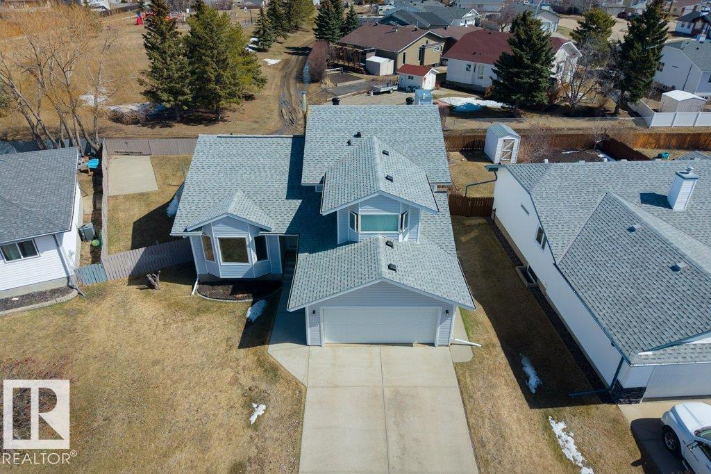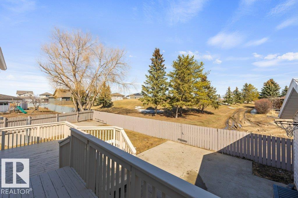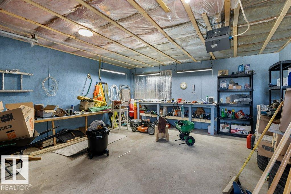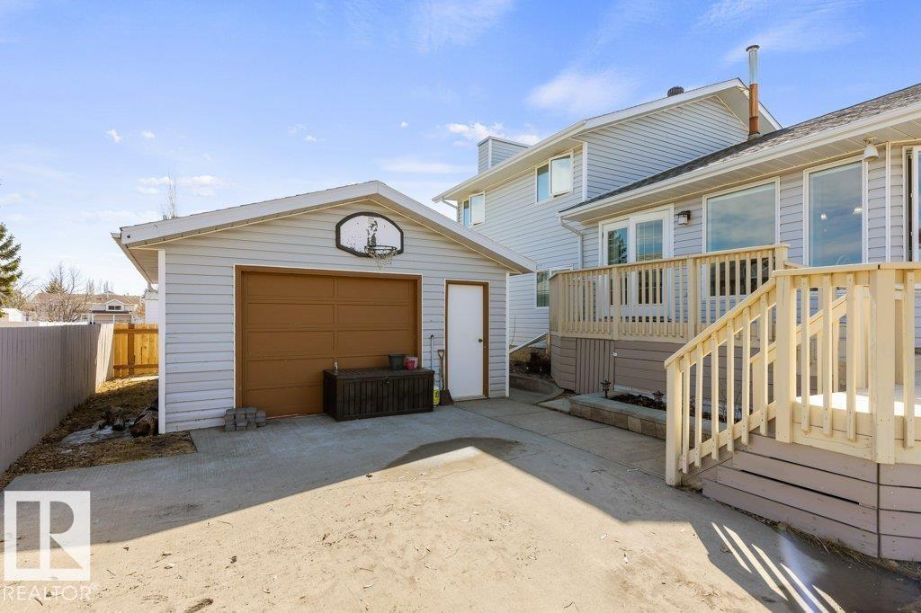 Welcome to this impressive 2,216 sq ft 4-level split in the charming Legal! This spacious home offers 4 bedrooms and 3 bathrooms, with in-floor heating throughout for year-round comfort. The bright main floor features vaulted ceilings, a large living room, and an open-concept kitchen with a generous island and ample cabinetry. Upstairs includes 3 bedrooms, highlighted by the primary suite with walk-in closet and a large 4-piece ensuite. The lower level offers a cozy family room, laundry, and an office or 4th bedroom, while the basement provides an additional family room and storage space. Situated on a large lot backing greenspace, enjoy the wrap-around two-tiered deck, rear RV parking, and a 21' x 18' heated shop with 220V. Complete with a double attached heated garage—perfect for families seeking space and functionality! (id:51989)