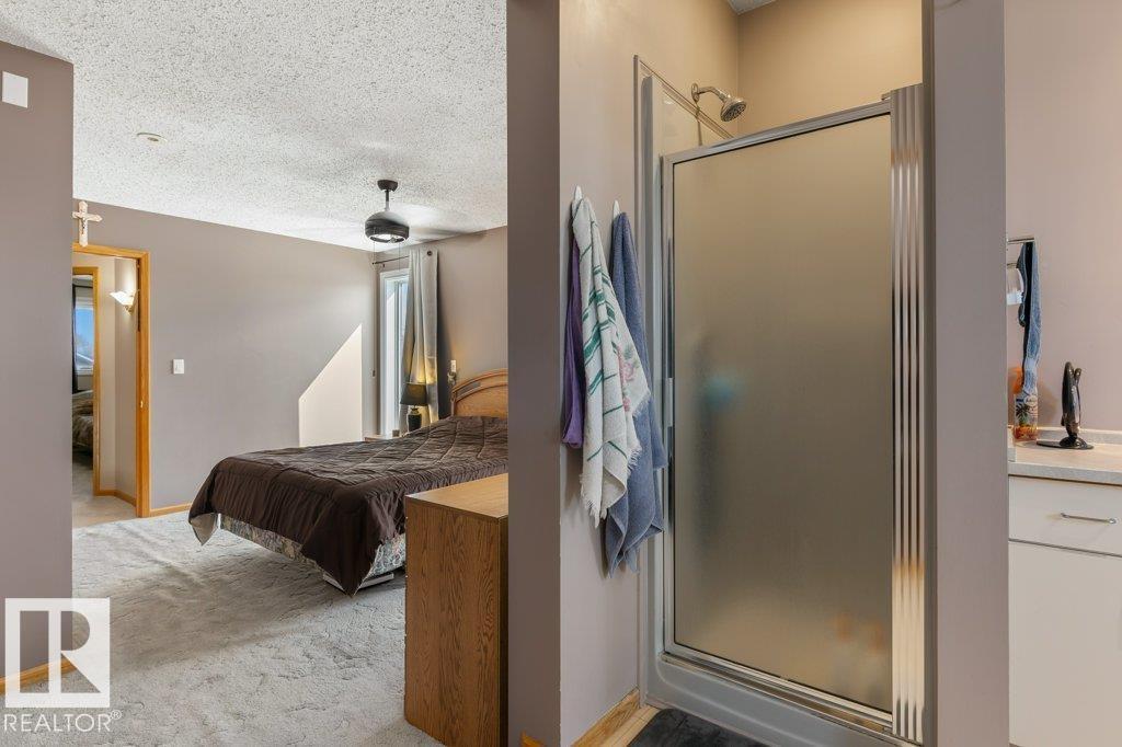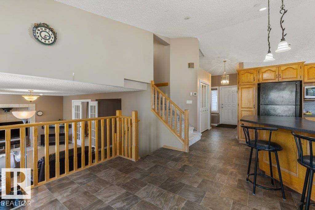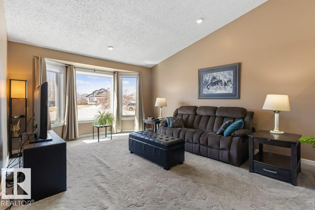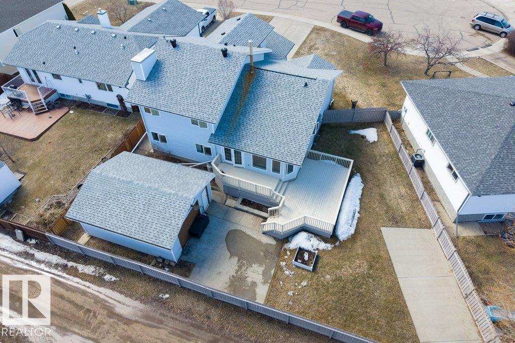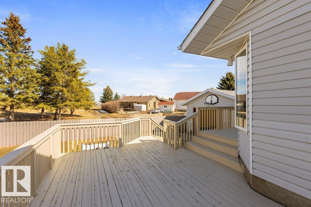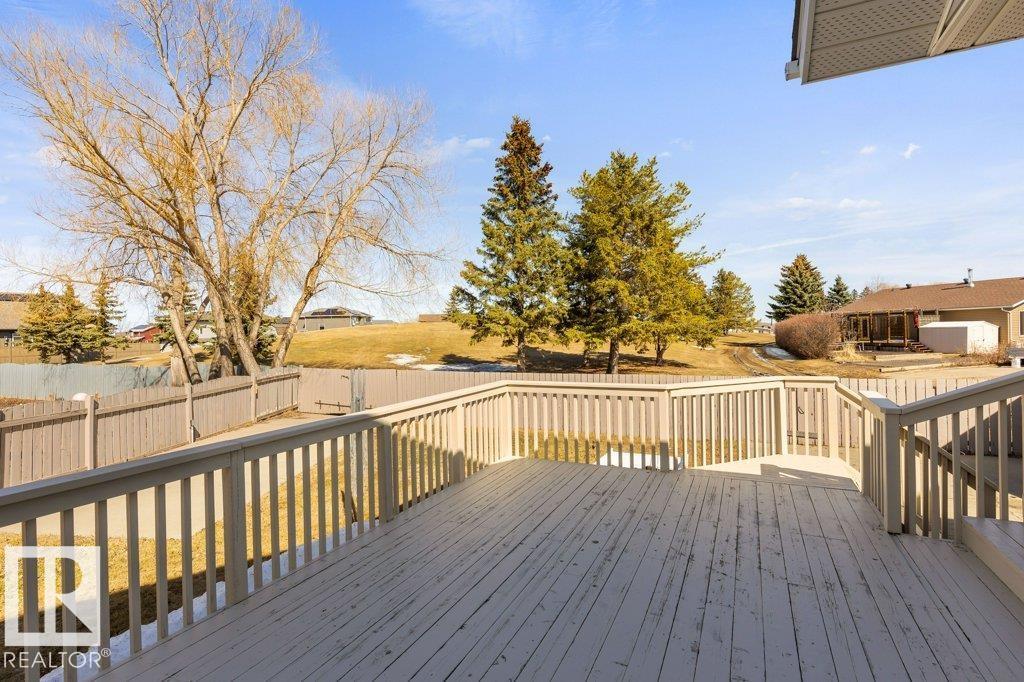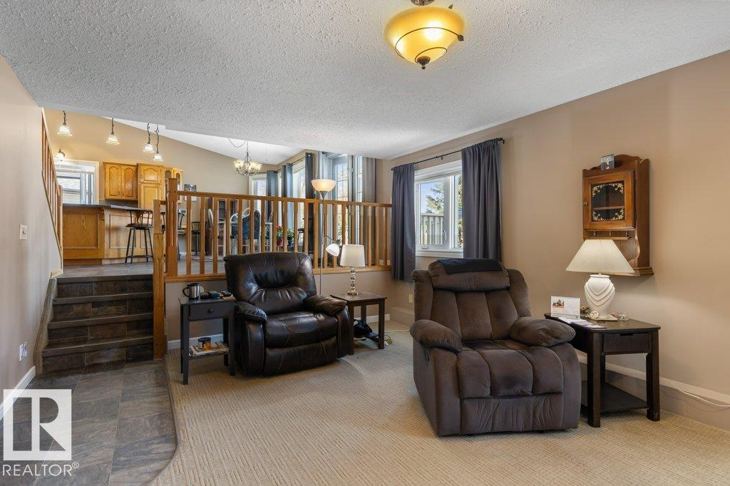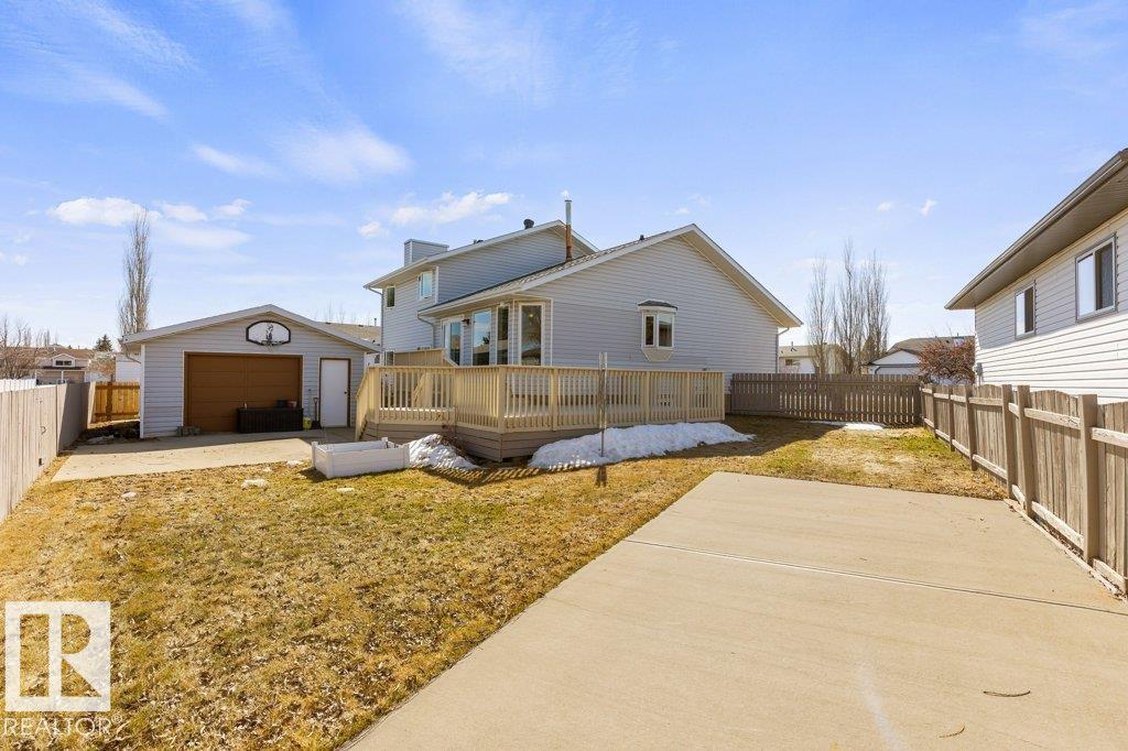 Welcome to this impressive 2,216 sq ft 4-level split in the charming Legal! This spacious home offers 4 bedrooms and 3 bathrooms, with in-floor heating throughout for year-round comfort. The bright main floor features vaulted ceilings, a large living room, and an open-concept kitchen with a generous island and ample cabinetry. Upstairs includes 3 bedrooms, highlighted by the primary suite with walk-in closet and a large 4-piece ensuite. The lower level offers a cozy family room, laundry, and an office or 4th bedroom, while the basement provides an additional family room and storage space. Situated on a large lot backing greenspace, enjoy the wrap-around two-tiered deck, rear RV parking, and a 21' x 18' heated shop with 220V. Complete with a double attached heated garage—perfect for families seeking space and functionality! (id:51989)
