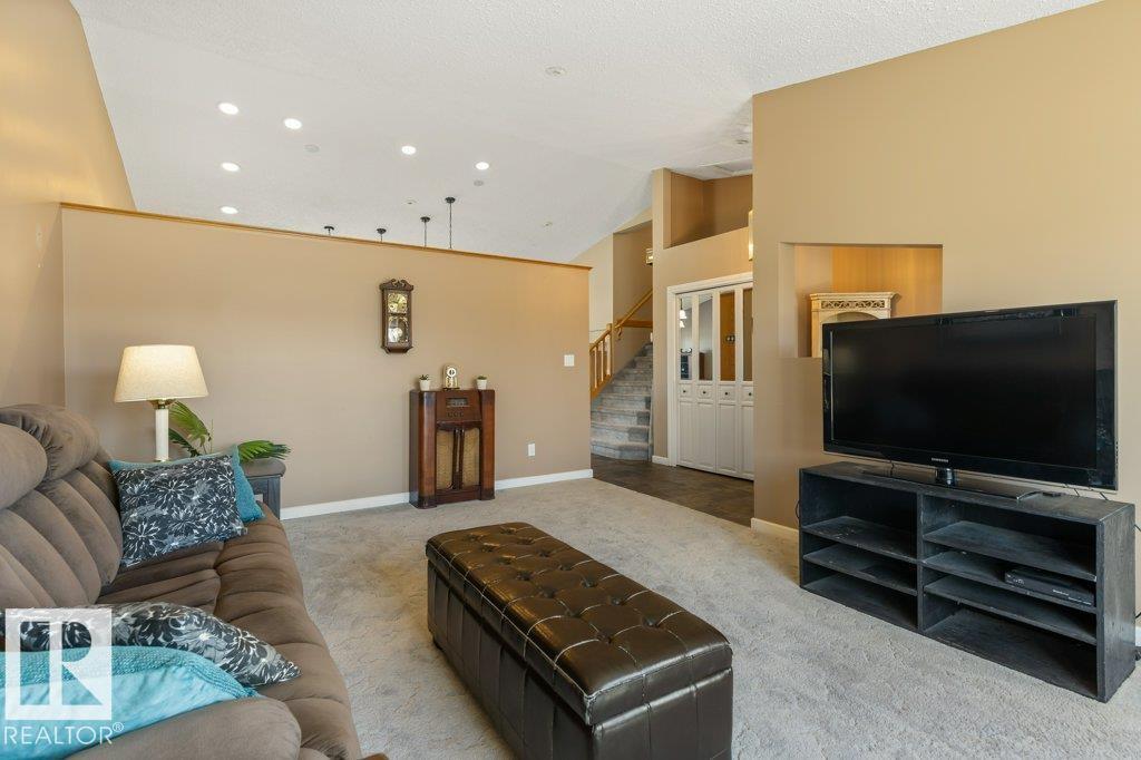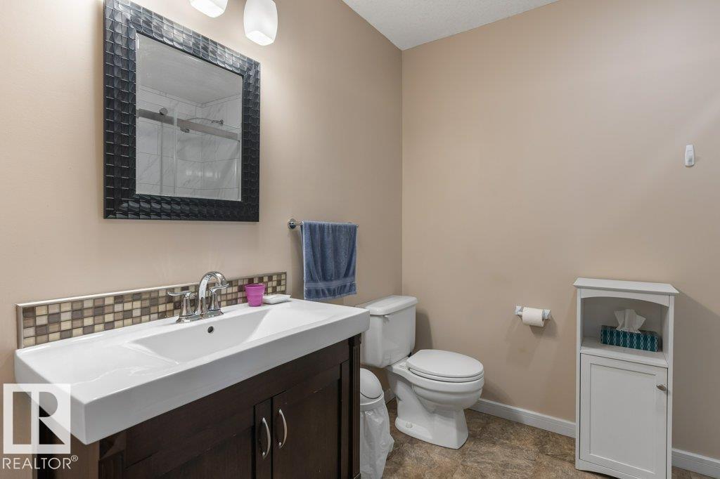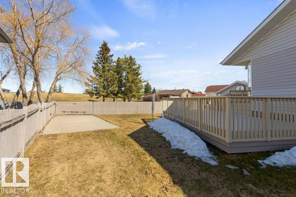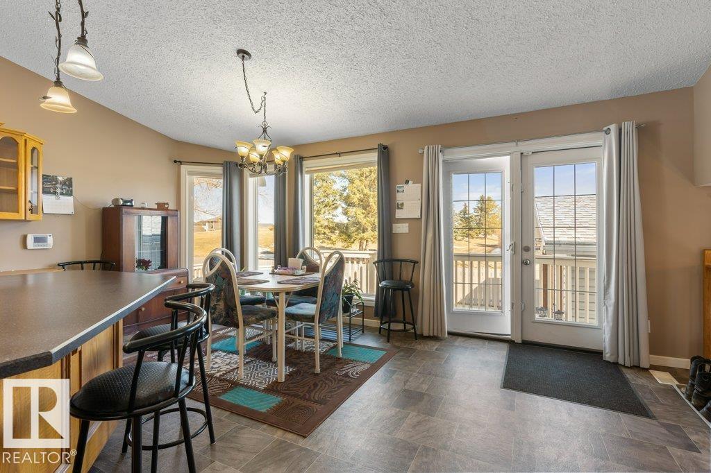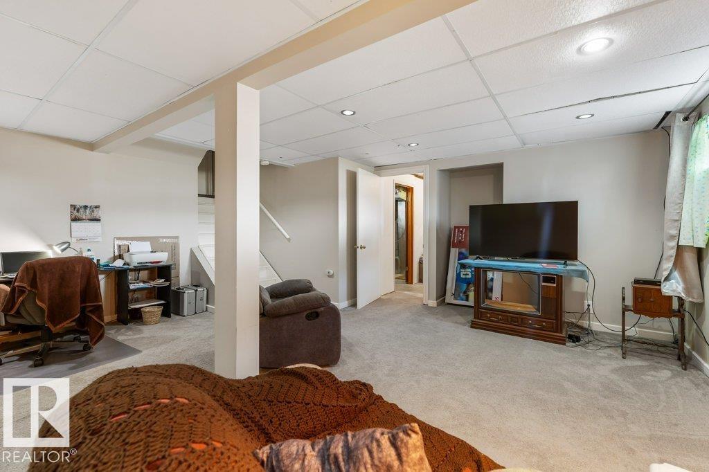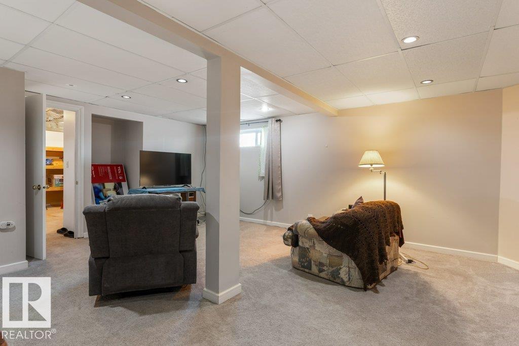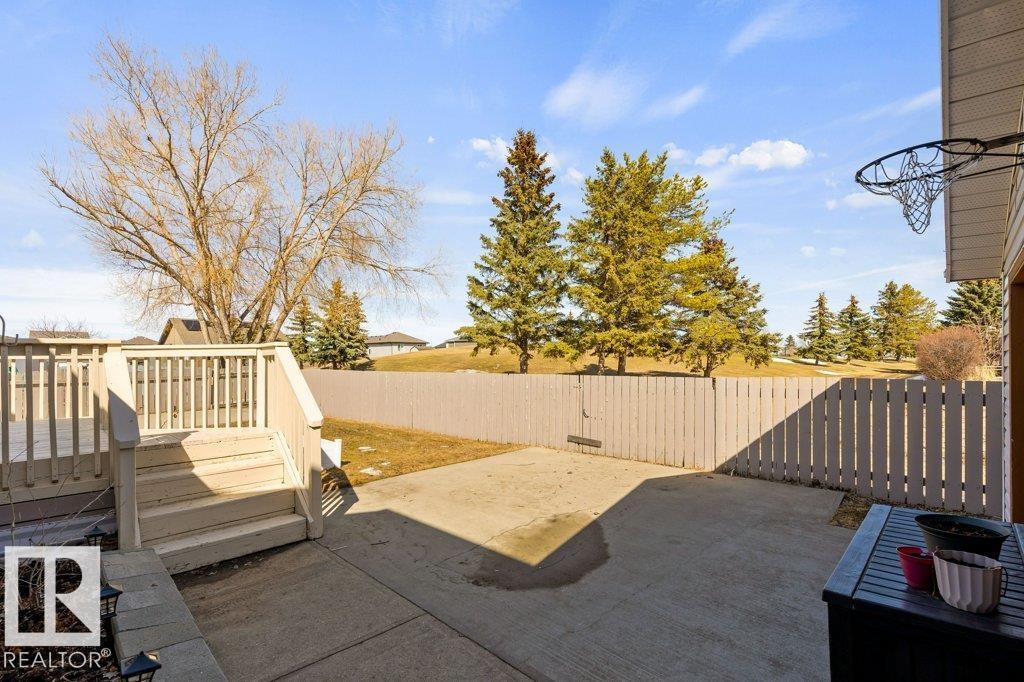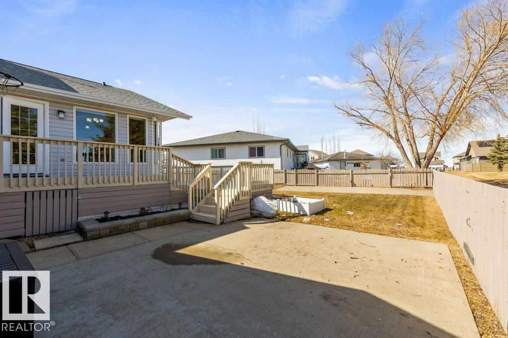 Welcome to this impressive 2,216 sq ft 4-level split in the charming Legal! This spacious home offers 4 bedrooms and 3 bathrooms, with in-floor heating throughout for year-round comfort. The bright main floor features vaulted ceilings, a large living room, and an open-concept kitchen with a generous island and ample cabinetry. Upstairs includes 3 bedrooms, highlighted by the primary suite with walk-in closet and a large 4-piece ensuite. The lower level offers a cozy family room, laundry, and an office or 4th bedroom, while the basement provides an additional family room and storage space. Situated on a large lot backing greenspace, enjoy the wrap-around two-tiered deck, rear RV parking, and a 21' x 18' heated shop with 220V. Complete with a double attached heated garage—perfect for families seeking space and functionality! (id:51989)