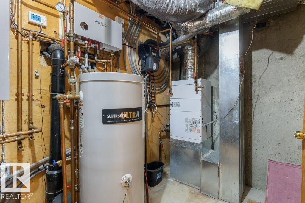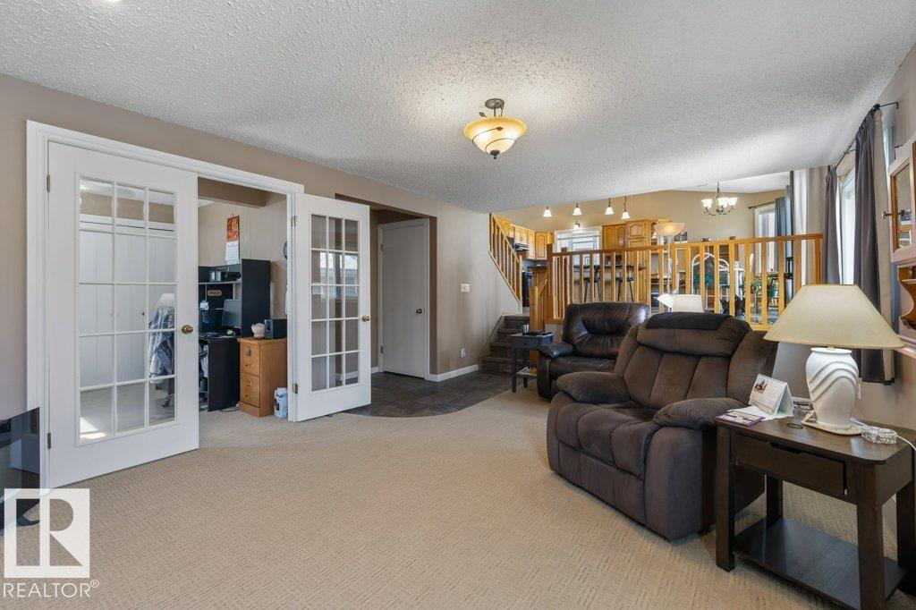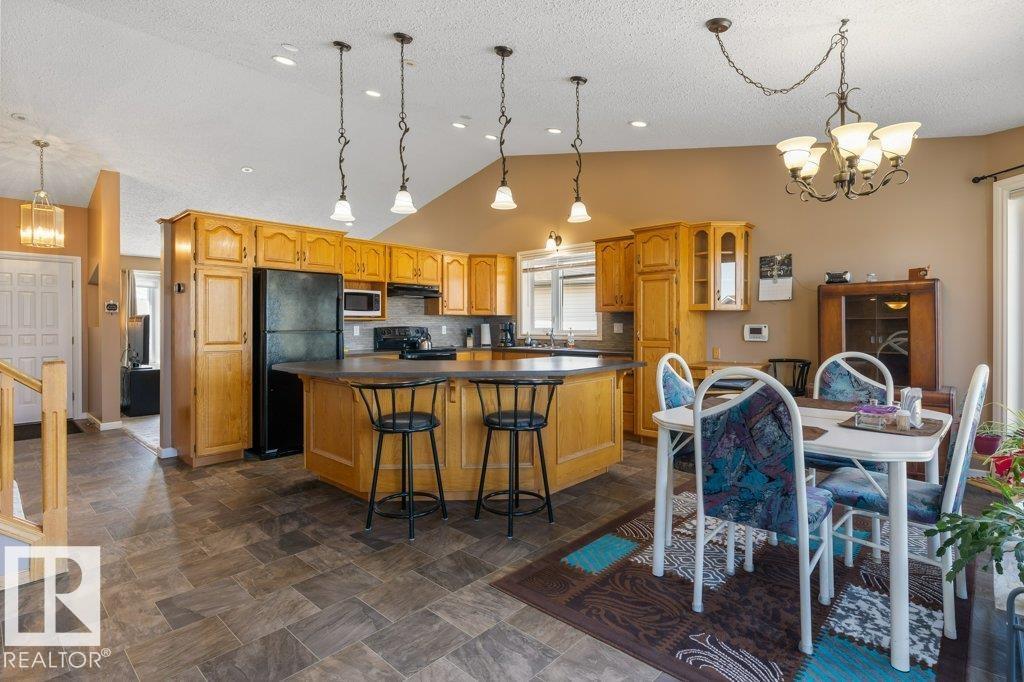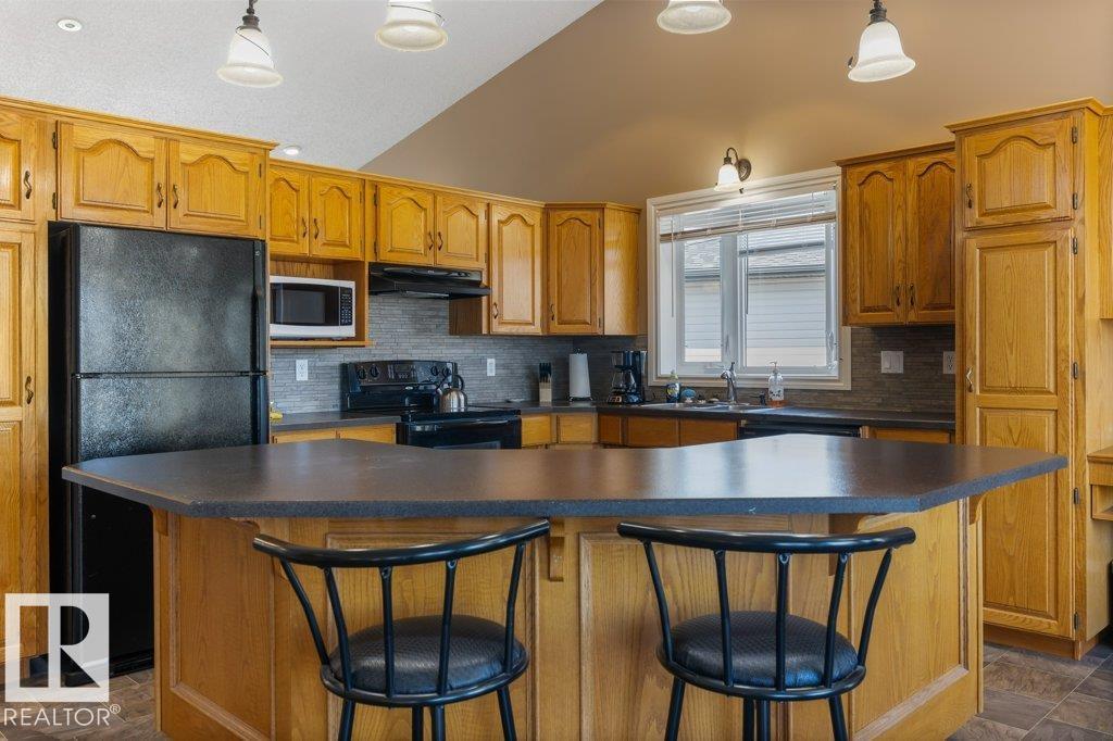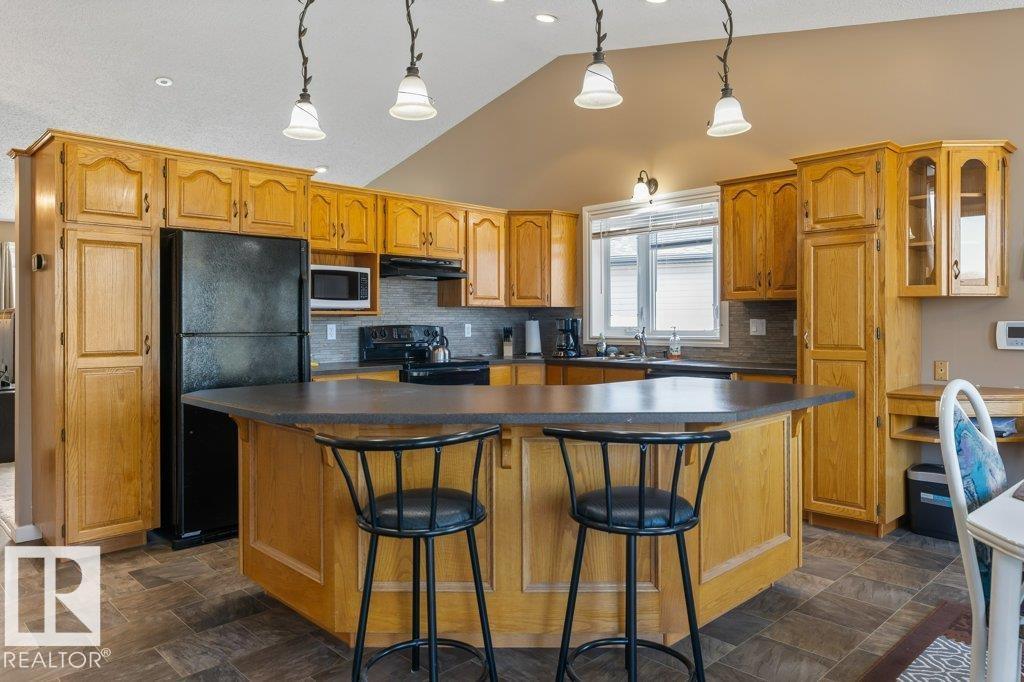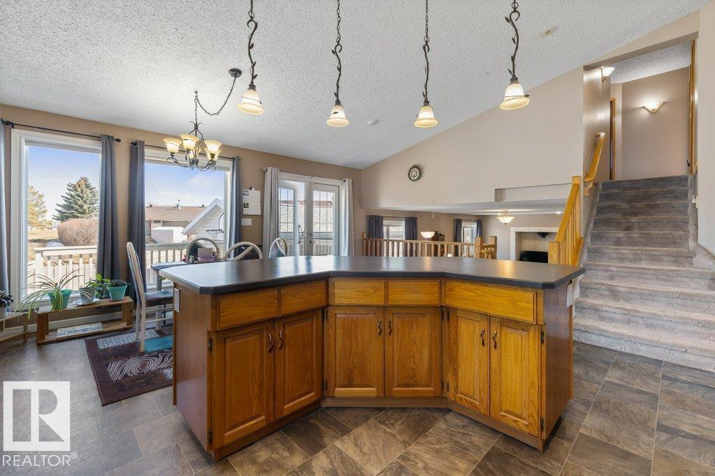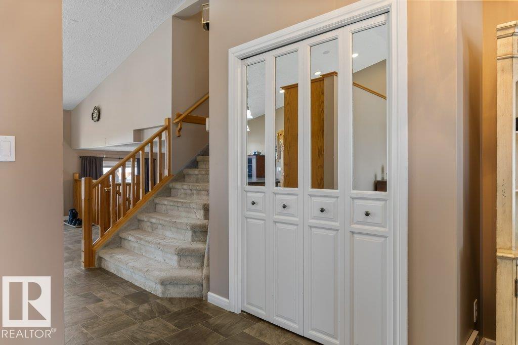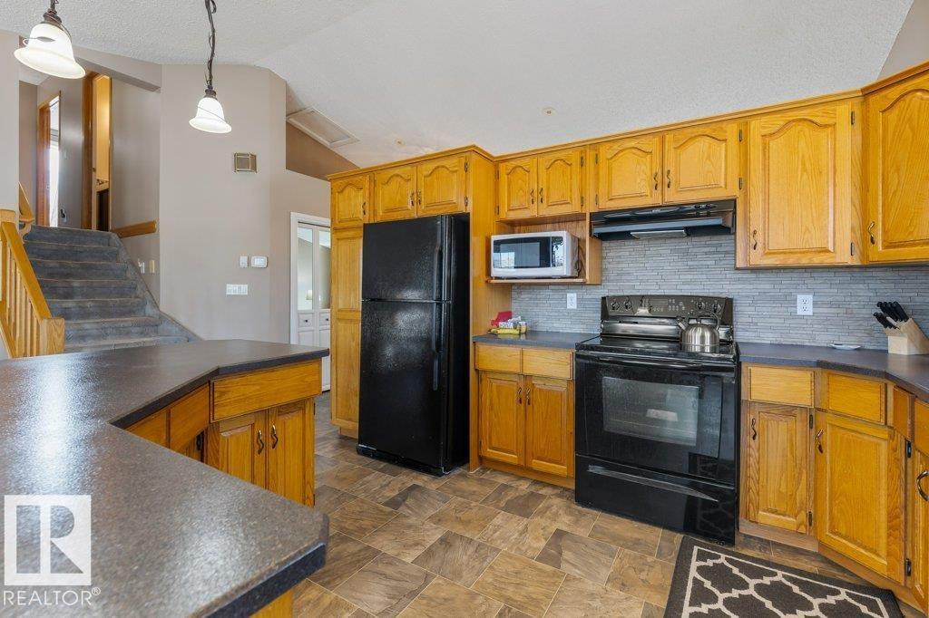 Welcome to this impressive 2,216 sq ft 4-level split in the charming Legal! This spacious home offers 4 bedrooms and 3 bathrooms, with in-floor heating throughout for year-round comfort. The bright main floor features vaulted ceilings, a large living room, and an open-concept kitchen with a generous island and ample cabinetry. Upstairs includes 3 bedrooms, highlighted by the primary suite with walk-in closet and a large 4-piece ensuite. The lower level offers a cozy family room, laundry, and an office or 4th bedroom, while the basement provides an additional family room and storage space. Situated on a large lot backing greenspace, enjoy the wrap-around two-tiered deck, rear RV parking, and a 21' x 18' heated shop with 220V. Complete with a double attached heated garage—perfect for families seeking space and functionality! (id:51989)