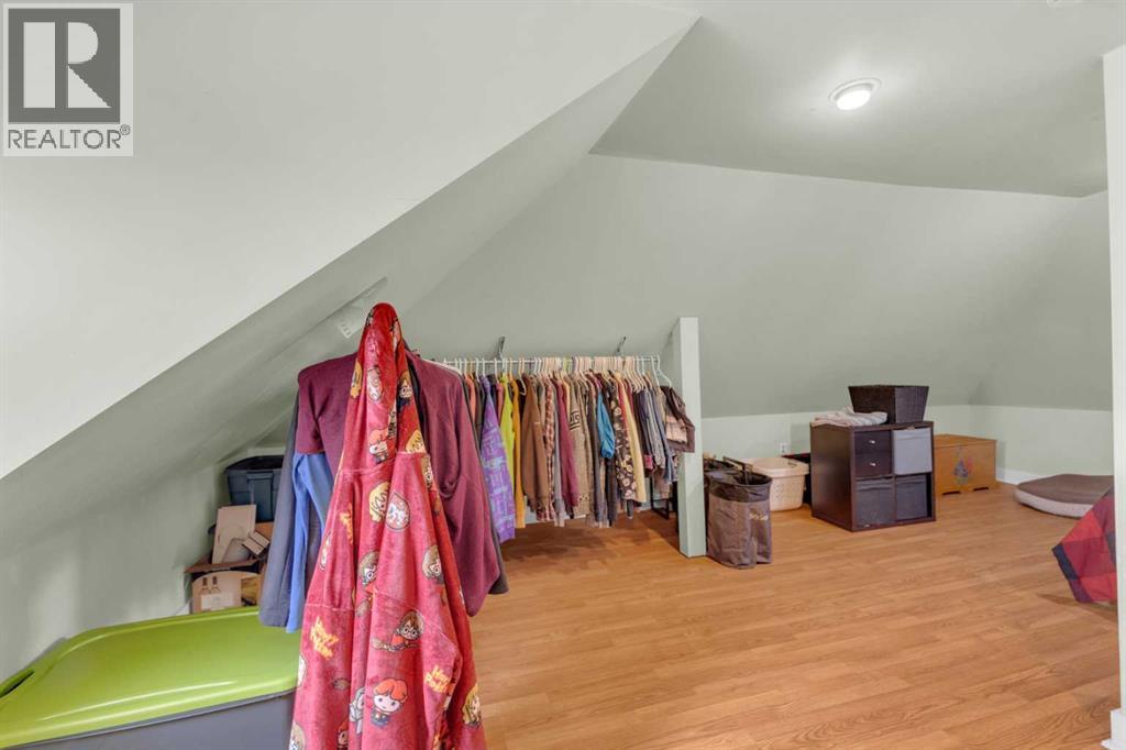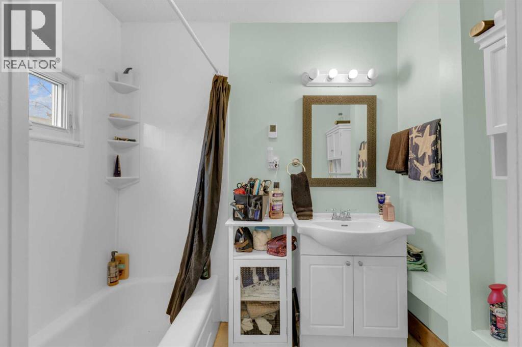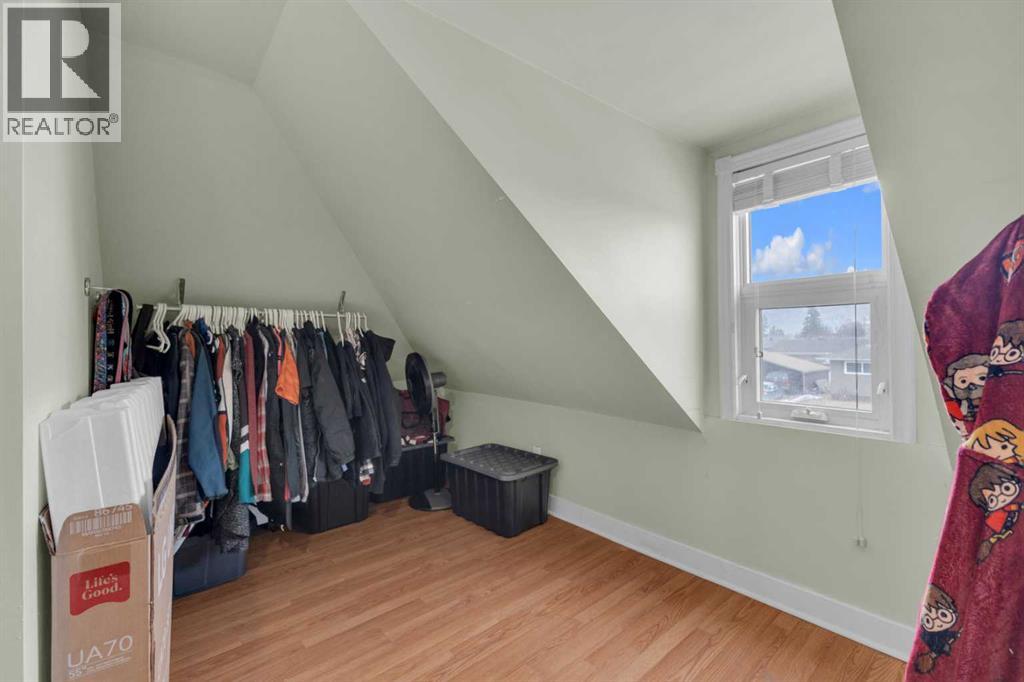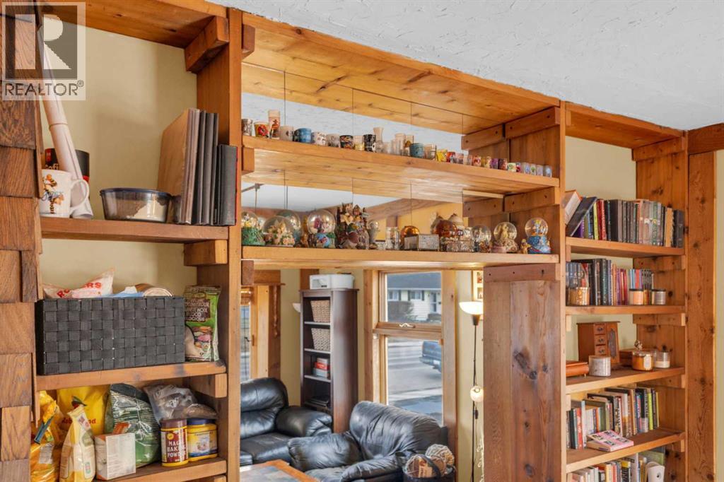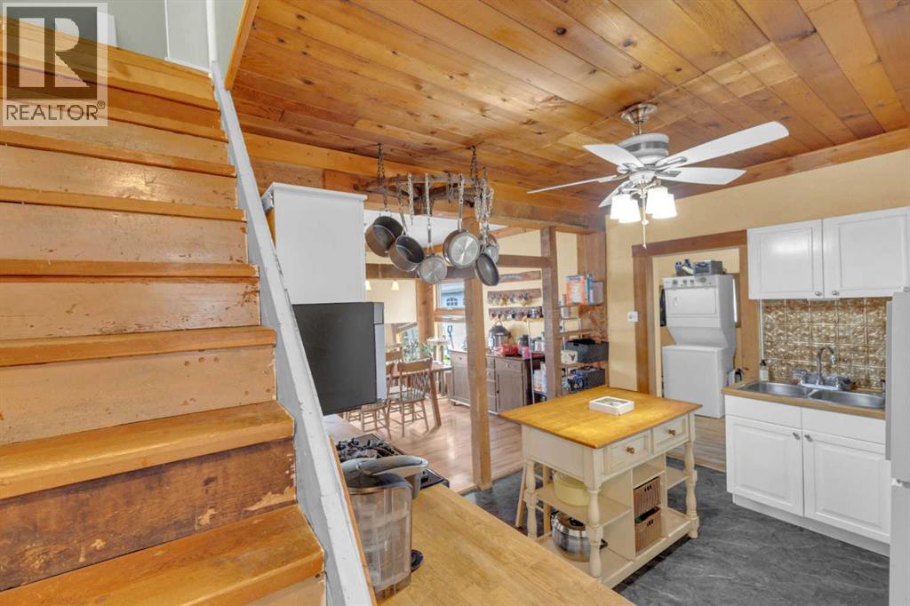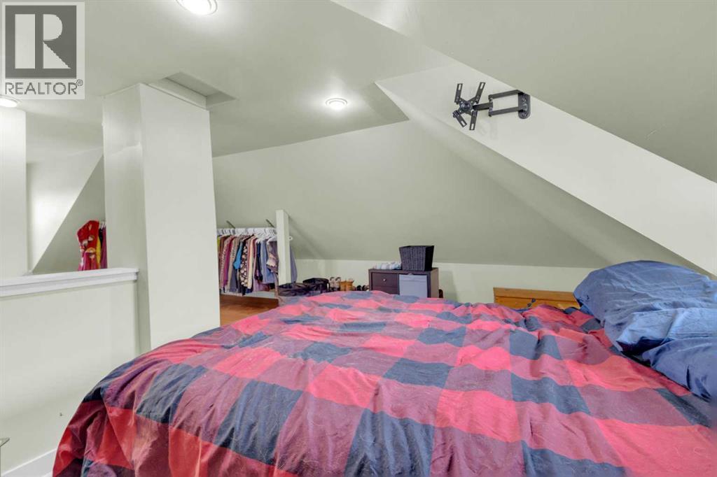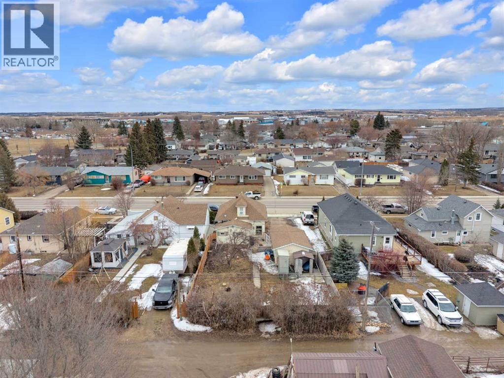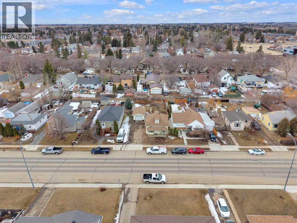 Charm, character, and over a century of Lacombe history — this 1920 one-and-a-half storey is one of a kind. Sitting on a mature double lot in the heart of Downtown Lacombe, it offers the kind of setting that is simply not replicated in newer neighbourhoods: a covered front porch framed by established trees, a fenced yard with flowering and apple-producing trees, and a neighbourhood you can walk from.Inside, the home features beamed ceilings, a practical main floor layout with a good-sized kitchen, dining room, and living room, main floor laundry, and the primary bedroom all on the main level. The upper loft offers a generous second bedroom. A full bathroom completes the main floor.Updates over the years include new roof and eavestroughs on both the house and garage, some new windows, a refreshed kitchen with new cupboards, countertop, and backsplash, an updated electrical box, and in-floor heat and tile in the back entry and bathroom. All appliances are included.Outside, the 50 x 120 lot provides plenty of room to breathe. A detached single garage (14 x 22), a fenced backyard, extra parking, and a deck round out the property. Parks, schools, a playground, and the full amenities of downtown are all close by.A perfect starter home, a smart revenue property, or a place for anyone who appreciates the character and craftsmanship of a true Lacombe original. (id:51989)