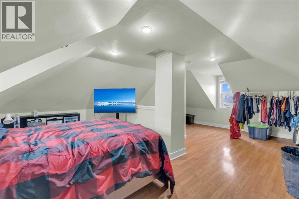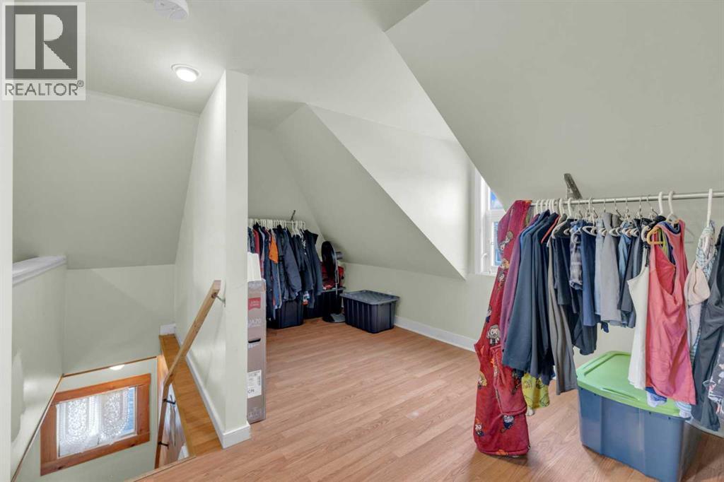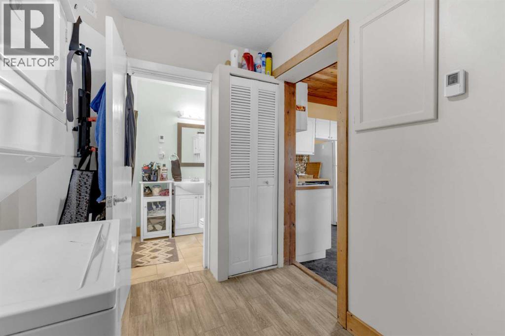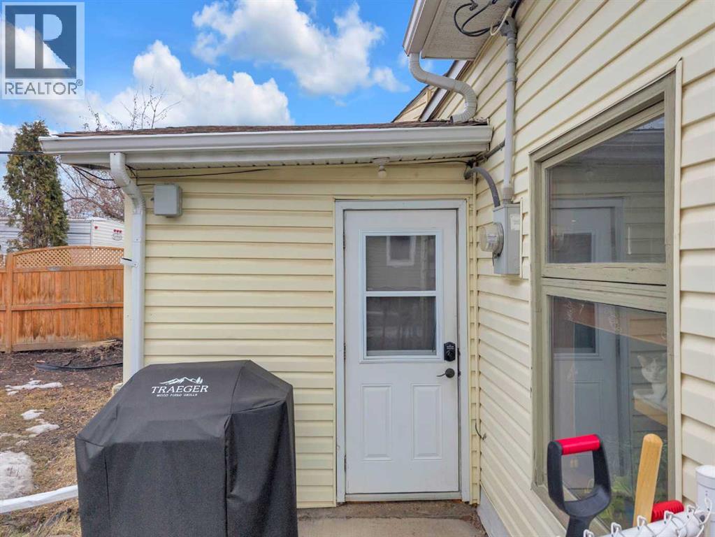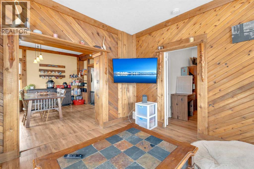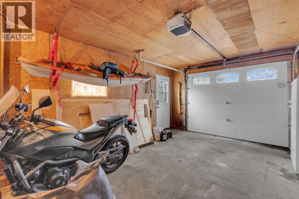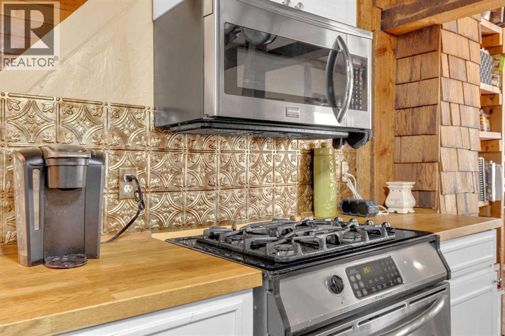 Charm, character, and over a century of Lacombe history — this 1920 one-and-a-half storey is one of a kind. Sitting on a mature double lot in the heart of Downtown Lacombe, it offers the kind of setting that is simply not replicated in newer neighbourhoods: a covered front porch framed by established trees, a fenced yard with flowering and apple-producing trees, and a neighbourhood you can walk from.Inside, the home features beamed ceilings, a practical main floor layout with a good-sized kitchen, dining room, and living room, main floor laundry, and the primary bedroom all on the main level. The upper loft offers a generous second bedroom. A full bathroom completes the main floor.Updates over the years include new roof and eavestroughs on both the house and garage, some new windows, a refreshed kitchen with new cupboards, countertop, and backsplash, an updated electrical box, and in-floor heat and tile in the back entry and bathroom. All appliances are included.Outside, the 50 x 120 lot provides plenty of room to breathe. A detached single garage (14 x 22), a fenced backyard, extra parking, and a deck round out the property. Parks, schools, a playground, and the full amenities of downtown are all close by.A perfect starter home, a smart revenue property, or a place for anyone who appreciates the character and craftsmanship of a true Lacombe original. (id:51989)