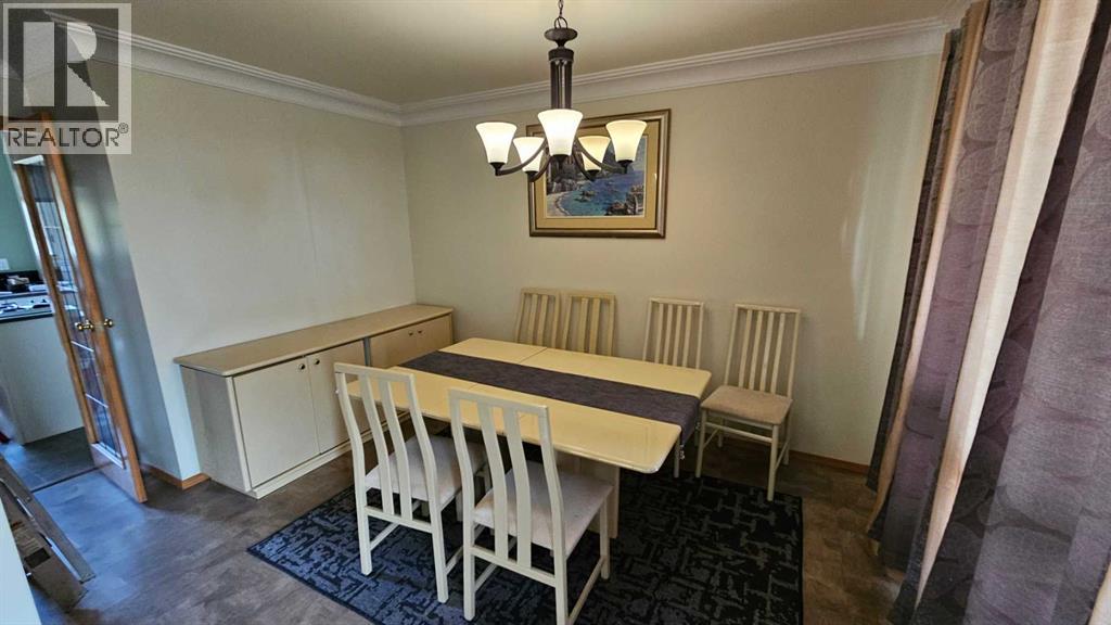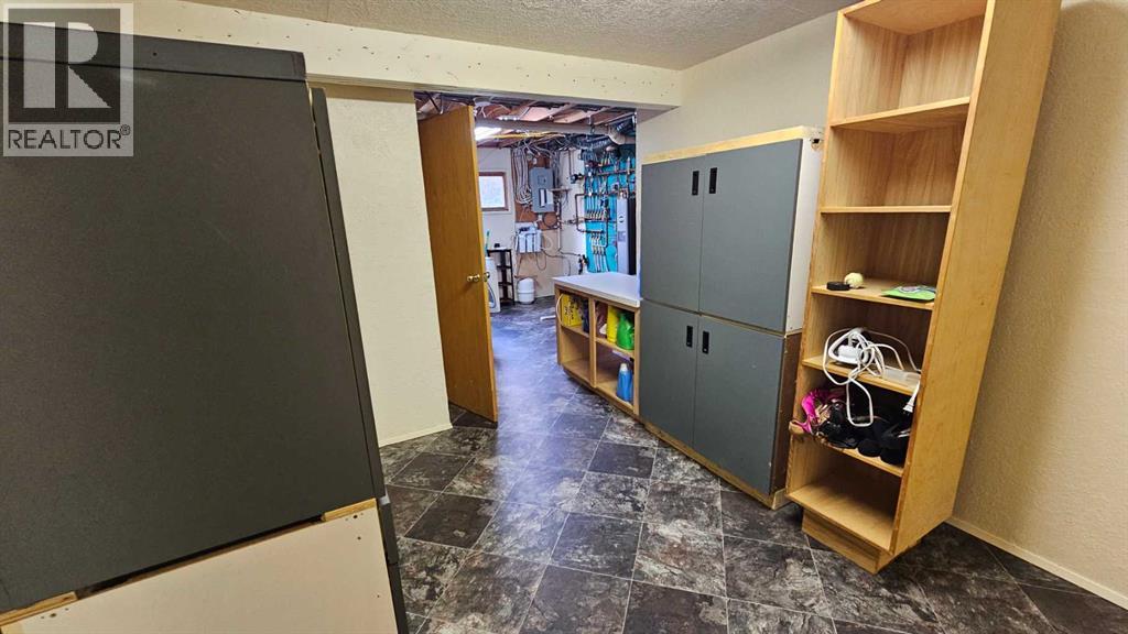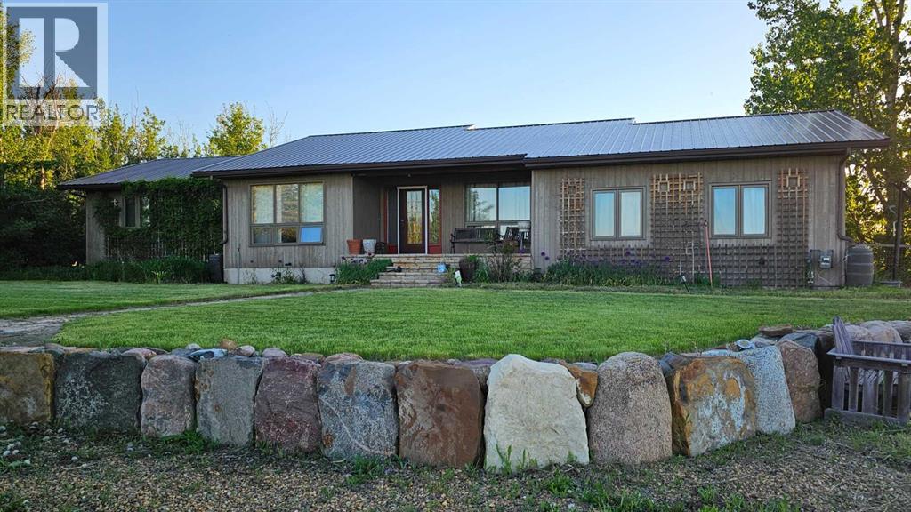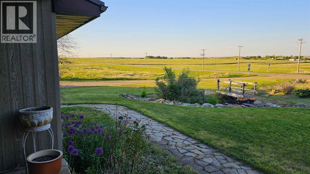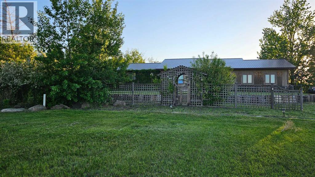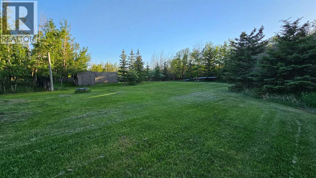 Welcome to Coronation, this 3.21 acre parcel is situated on the north west side, still within the town limits, north of the hospital. There are two parcels, sold together, one with the house -1.09 acres, beautiful landscaping and shrubbery and second lot with a fully fenced 2.12 acre lot with page wire fencing around numerous trees, comes with the 2 metal sea cans and a garden shed, all are included. . This beautiful home is a 1600 plus sq ft bungalow, with metal roof, wood looking(composite) siding, attached double heated garage and a front deck that has stone and rock accents and the overhanging roof. This custom built 1992(approx) home, has 5 bedrooms, three bathrooms and a den that faces east to watch the sunrise and the beauty that lies outside. It also has a large living room with vaulted ceiling(14ft) and a cozy kitchen with an eating area. Finally there is a separate dinning room just off the kitchen area. The wood windows in this home are extra large and plentiful. These add an abundance of light into the home. The west ones also include a large set of patio doors off the living room onto the large west deck. There has been new vinyl flooring put in throughout the upstairs. Downstairs is the large rumpus room, with newer flooring, 2 comfortable bedrooms, a four piece bathroom, loads of storage in the cold room and the utility room, along with washer and dryer and the heating system that is run by the on demand heater as the house has radiant heat throughout the entire building(both floors). Off the living room is a large 20x20 ft deck plus a 12 x 12ft attached deck facing out towards the west. There is a fenced dog run and plenty of room for those who want a garden. With so much potential and an abundance of space this is a one of a kind home to invest in. (id:51989)