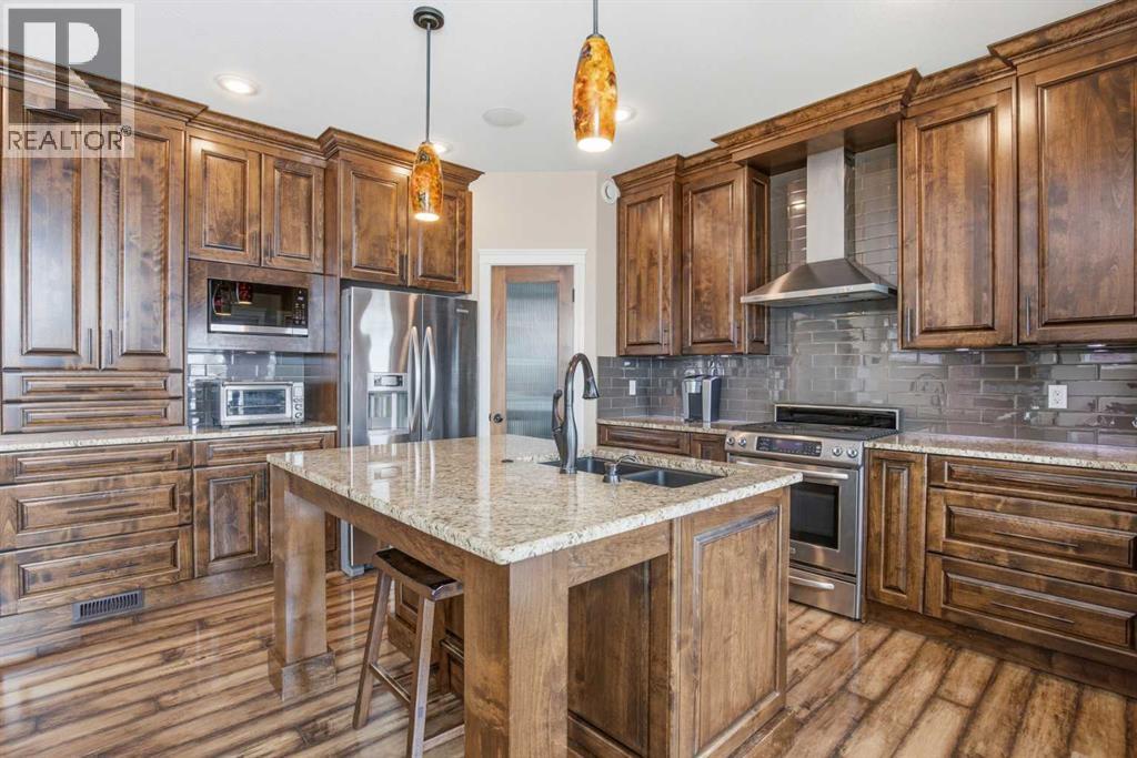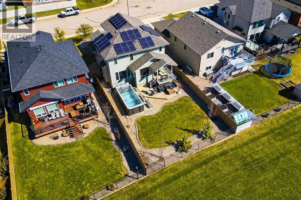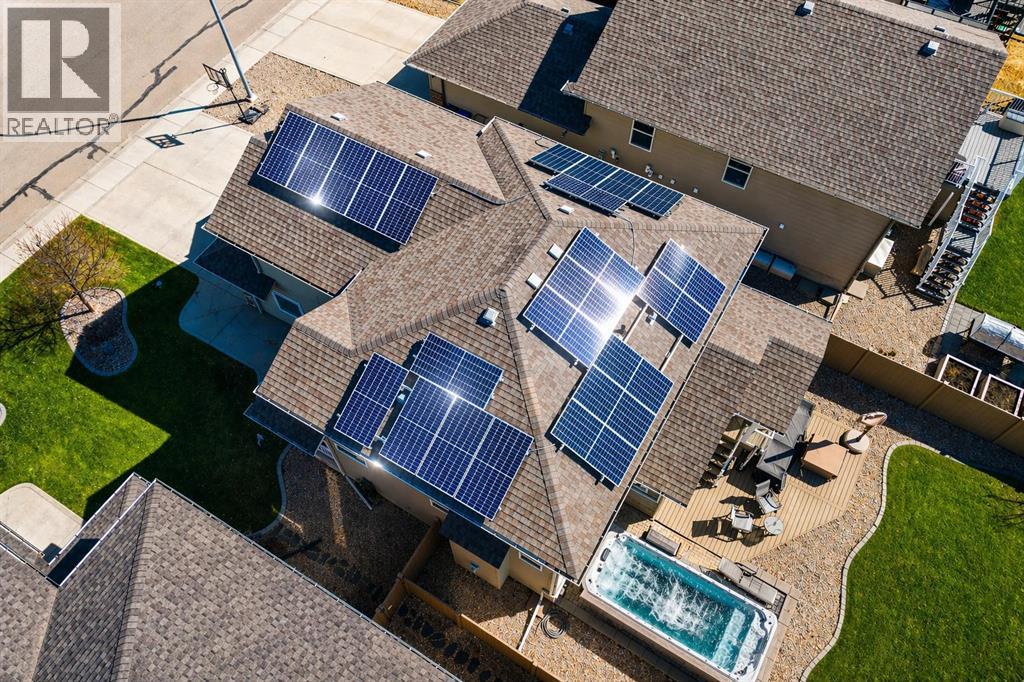 Welcome to this exceptional fully finished home built by Bomaier Development, offering quality craftsmanship, thoughtful upgrades, and an incredible location backing onto a park. This beautifully maintained property combines luxury features with functional design, creating a home that is perfect for both everyday living and entertaining. Step inside to discover a bright and inviting interior featuring granite countertops throughout, soft-close cabinetry, under-mounted sinks, under-cabinet lighting, and a spacious kitchen island with power and a convenient central vacuum sweep plate. The kitchen is equipped with high-end appliances including a gas/electric hybrid range, making it a dream for cooking and entertaining. Pot lights on dimmers, LED lighting throughout, and built-in ceiling speakers wired to the utility room add both ambiance and modern convenience. The home offers two cozy gas fireplaces and a fully developed layout, providing plenty of comfortable living space. The luxurious primary suite includes a walk-in closet and a spa-inspired ensuite with dual sinks, while thoughtful construction details such as double insulated interior walls and floors in the primary bedroom ensure added comfort and sound reduction. The basement is fully finished and designed for entertaining, featuring operational in-floor heat and a stylish wet bar complete with a dishwasher, mini fridge, & a mounted bar TV. Additional comfort features include a high-efficiency furnace with humidifier, on-demand hot water system, water softener, and central vacuum system. Step outside to enjoy the beautifully landscaped yard backing directly onto a park, complete with vinyl fencing, underground sprinkler system, and a stunning two-tier composite partially covered deck and a gas line for your BBQ. This space also offers an outdoor shower and huge heated swim spa.Car enthusiasts and hobbyists will appreciate the radiant heated garage, while upgraded eco-friendly tinted windows throughout th e home enhance efficiency and comfort. With premium finishes, thoughtful upgrades mentioned, this home also offer solar panels to really help with utility prices, and an unbeatable park-backing location, this meticulously maintained property offers a rare opportunity to own a truly outstanding home. (id:51989)