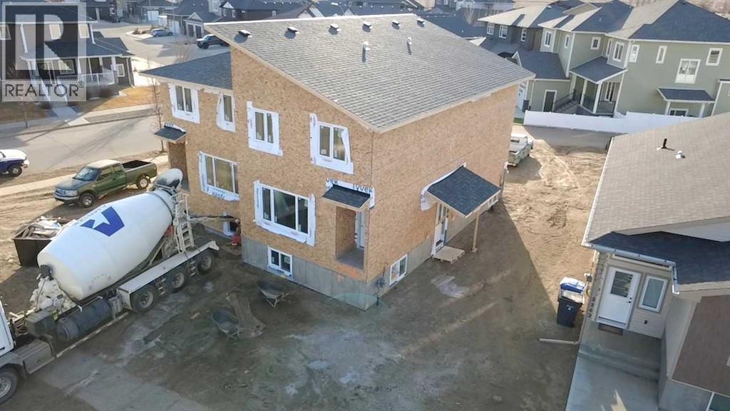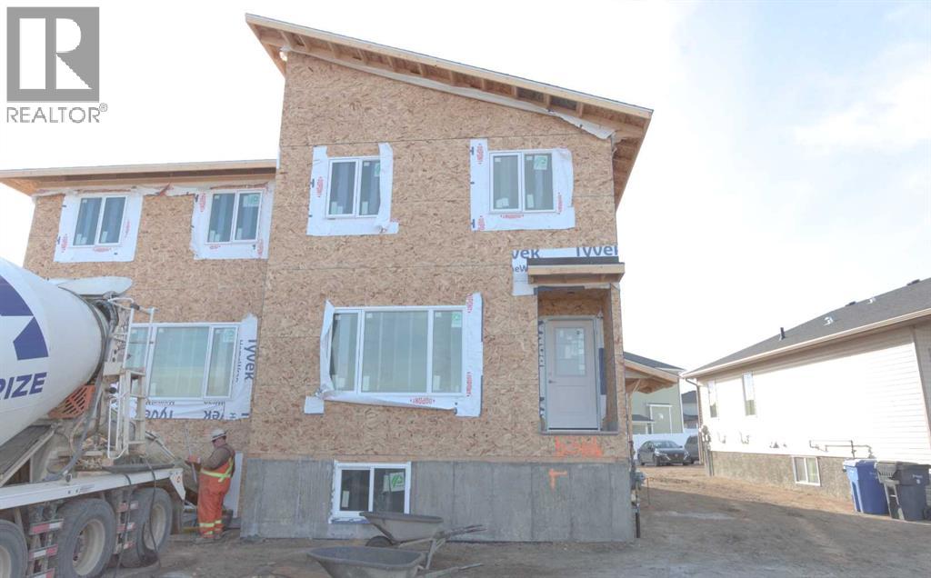 Welcome to this brand-new built half duplex 3+2 bedrooms, 3.5 bathrooms 1782sf home with a legal basement suite 2 bedrooms and 1 full bathroom. You will love and enjoy the thoughtful layout and quality home by New Tab Homes and DP76 Construction. This property offers you the brightness, modern design, smart functionality and a passive income from the suite. The main living space is intentionally designed to maximize the layout and accommodates lower suite bedrooms stay away from the mechanical rooms which is a such thoughtful design. The upper-level hosts 3 generously sized bedrooms, including a primary bedroom with a walk-in closet and a 4-piece ensuite, an additional 4-piece bathroom and a convenient laundry room. Step in the main floor is the bright living room, a half bathroom, a storage, a den, the kitchen and the dining room. The fully developed basement is a legal suite, offering a separated entrance, an excellent feature for extended family or a passive income. The suite features its own kitchen, a family room, two bedrooms, a 4-piece bathroom, and a separate laundry area. The estimated completion is end of March 2026. A great opportunity to own a brand new home 1 land of title for 2 units in Southlands of Medicine Hat. (id:51989)