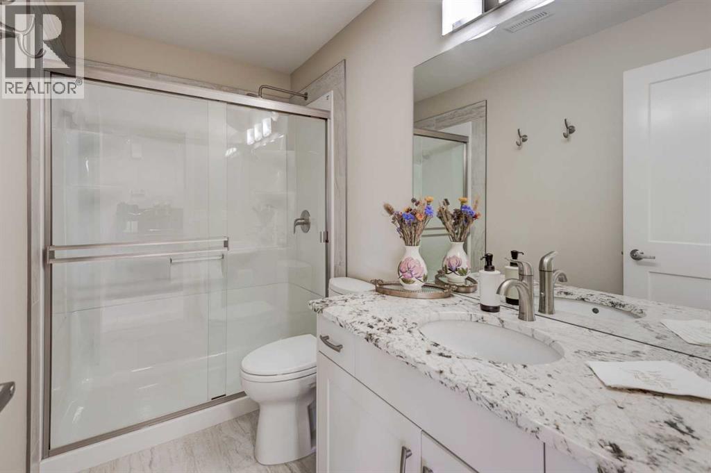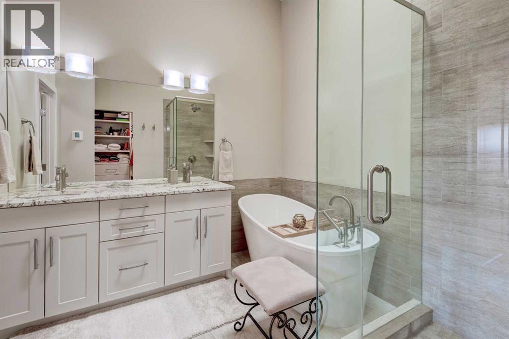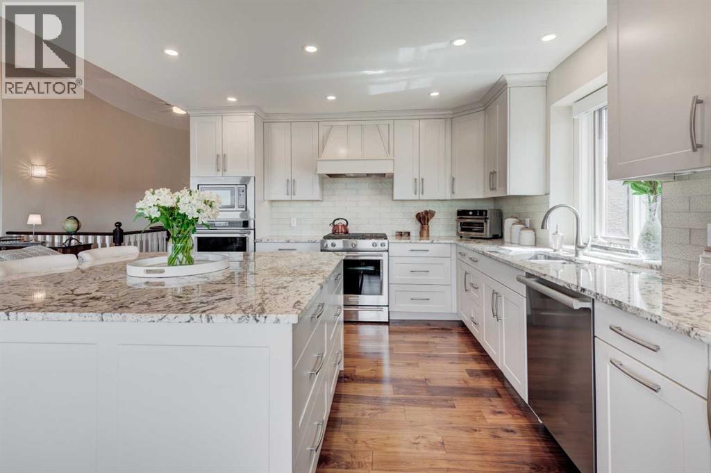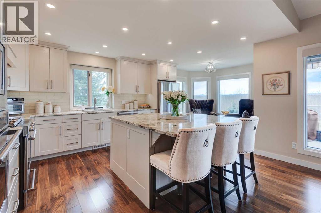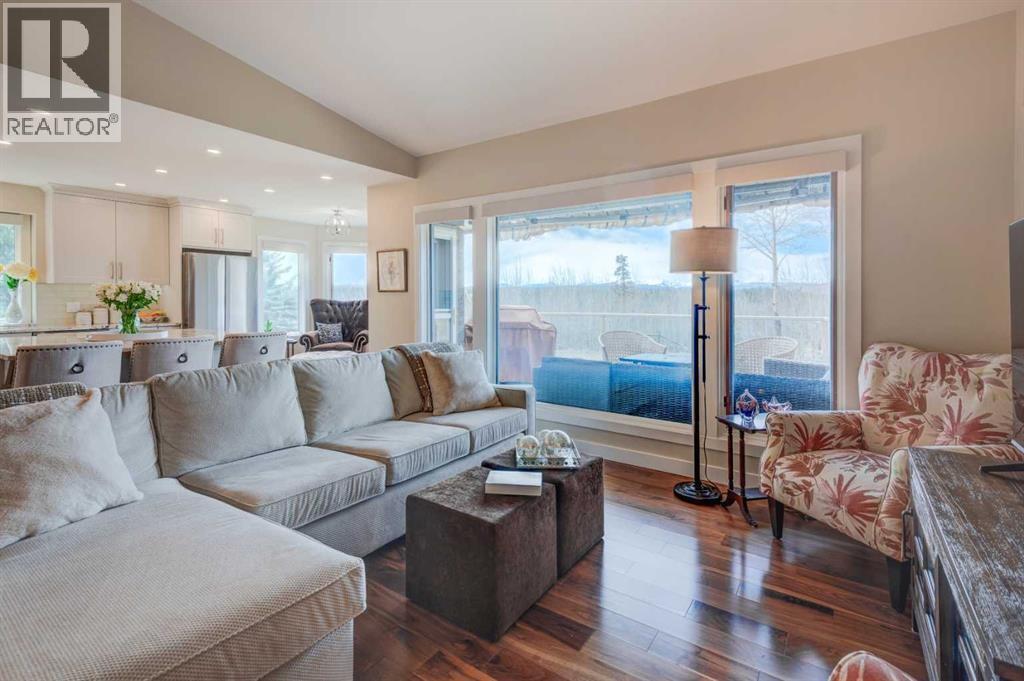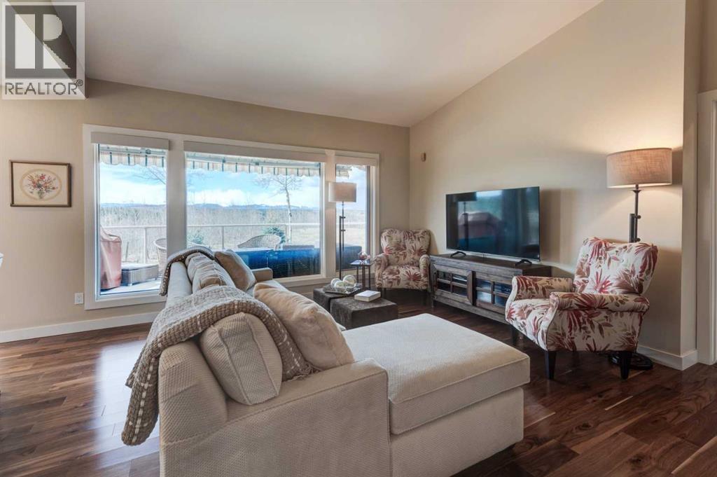 Home Sweet Home! Welcome to your stunning, recently renovated VILLA with MAGNIFICENT MOUNTAIN & VALLEY VIEWS from both levels of this beautiful home! This large "Augusta Plan Model" WALK OUT BUNGALOW has no neighbours behind, backs into a farmers field. Out back there is both a west facing upper deck and covered patio for you to enjoy you sunsets over the mountains. Out front there is a cozy interlocking brick patio to enjoy coffee in the morning sun. It is common to see wild life in the area before your tee time on the golf course. The home has recently been extensively updated and renovated throughout. The $250,000 update includes new kitchen, baths, flooring, cabinets, appliances, fixtures, window coverings, exterior stucco paint and more. The Main level consists of a formal living and dining area that can accommodate a large dining table and hutch, an open concept kitchen/nook/family room that is ideal for entertaining, large foyer, master retreat with 5 piece ensuite, large sitting area and huge walk in closet, full bath, Den, second bedroom and laundry room. The lower Walkout level consists of a very large family room with gas fire place, patio doors to lower covered patio, two larger bedrooms, a 4 pc bathroom and a huge undeveloped area currently used for storage and utilities but with room to build another bedroom/den/gym. The attached double garage has an area for your golf cart as well as room to store bikes or have a work bench. Features include beautiful flooring, oversized windows, upgraded appliances, upgraded lighting, quartz counters, soaring vaulted ceilings, with stained glass panels, spiral stairs, architecturally landscaped yard and much more! This is one of those communities that will make you will feel at home. Don’t miss your opportunity to purchase this stunning home. (id:51989)
