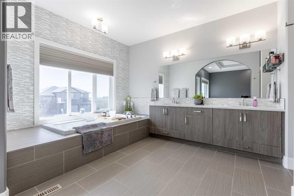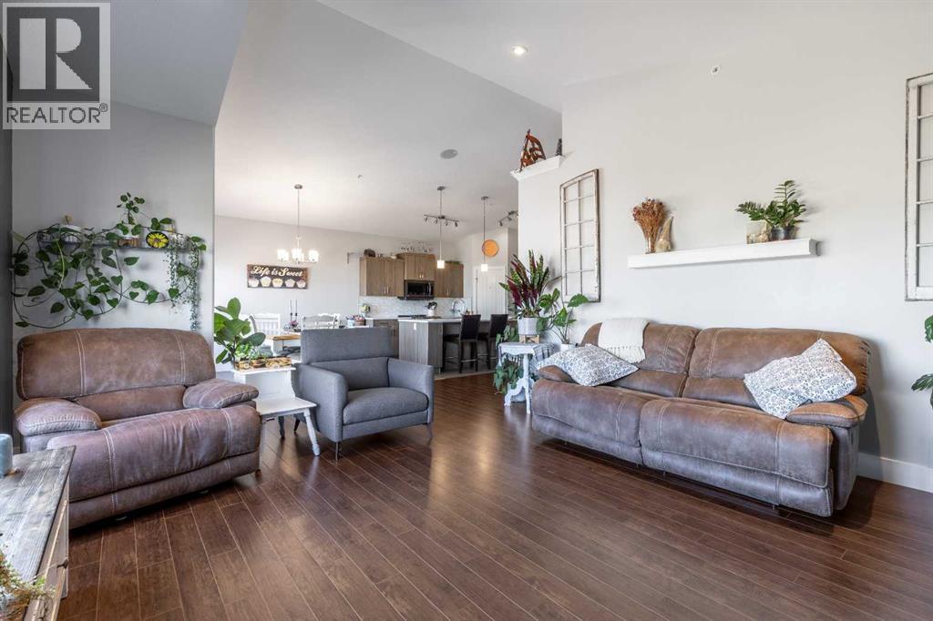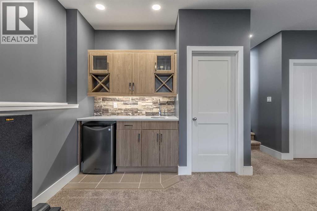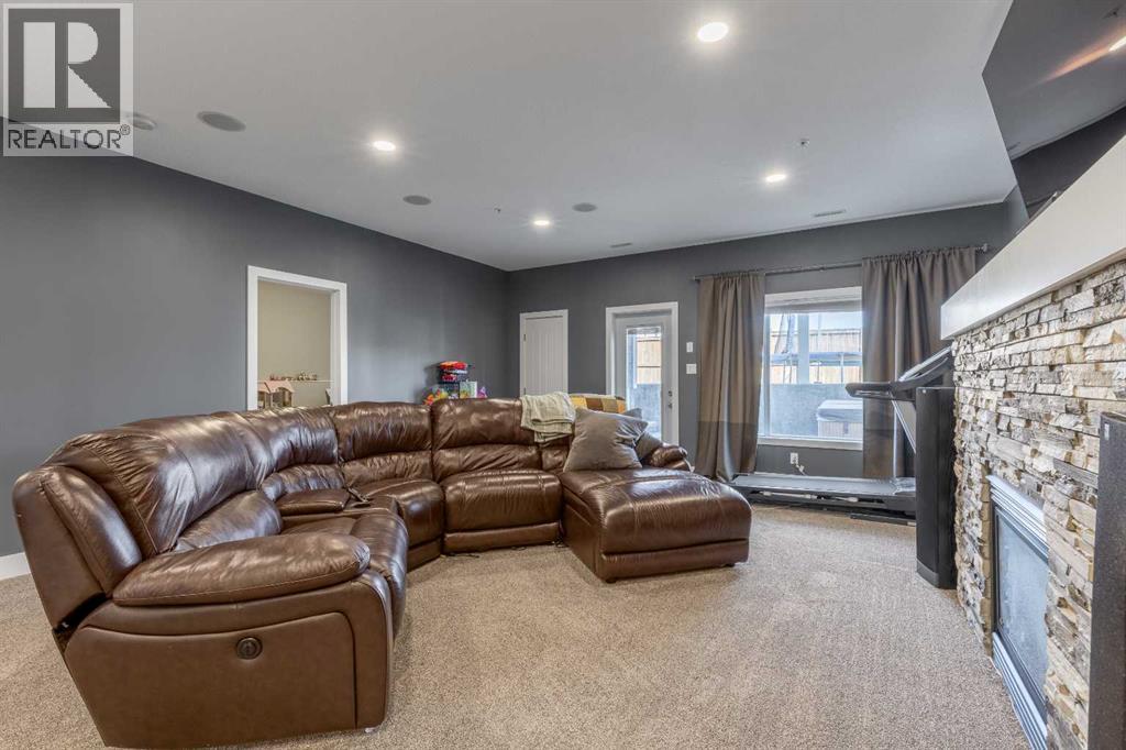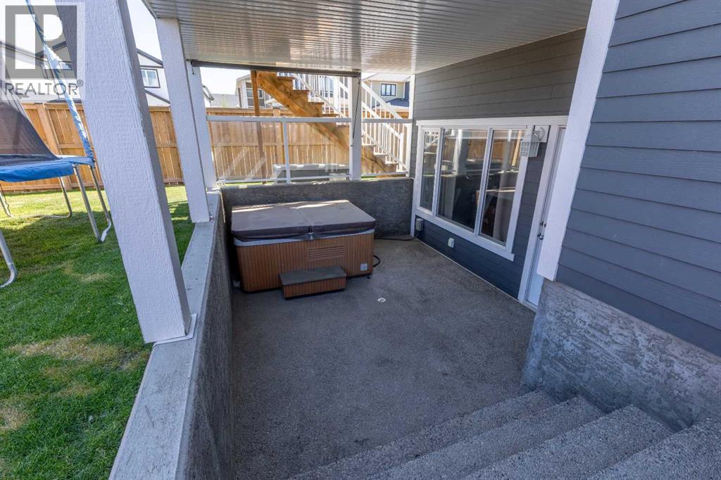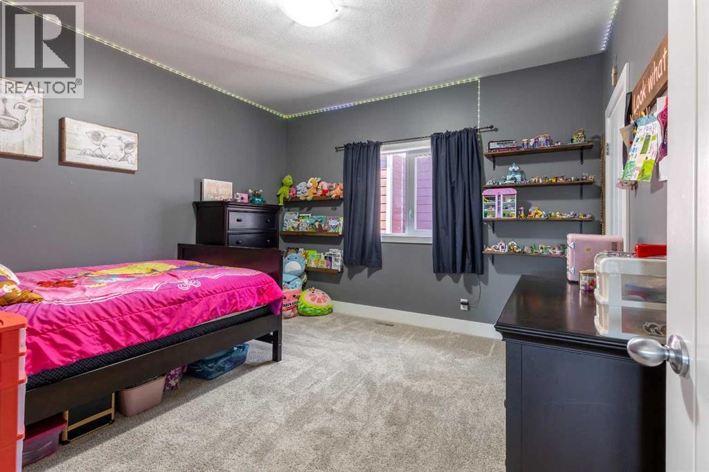 Welcome to 5401 43 Street in Taber — an exceptional family home situated on a quiet corner lot, thoughtfully designed with comfort, function, and modern elegance in mind. The exterior impresses with striking curb appeal, featuring Hardie board siding with smart trim accents, exposed aggregate concrete, PVC windows, and maintenance-free handrails. The fully fenced and professionally landscaped yard includes a stamped concrete patio that also doubles as R.V. parking, a covered lower patio ideal for a future hot tub, and a spacious back deck — the perfect place to enjoy peaceful, east-facing sunrises. A charming front porch invites you to start your mornings with a coffee in hand.Inside, the main level is bright and open, enhanced by vaulted ceilings and an airy, functional layout. The kitchen is beautifully appointed with quartz countertops, a large island with an undermount sink, updated appliances, a pantry, garburator, and tile backsplash. The adjacent dining and living spaces are warm and inviting, centered around a gas fireplace and built-in desk area, and complemented by a full-home speaker system—ideal for everyday living and entertaining. Privately situated above the garage, the spacious primary suite offers a quiet retreat. It features a tray ceiling with ambient mood lighting, access to a private balcony, an expansive walk-in closet, and a luxurious 6-piece ensuite with an extra-long soaker tub, dual vanities, and generous built-in storage. Two additional well-sized bedrooms and a stylish 4-piece bathroom complete the main floor. The fully finished basement offers 9’ ceilings, a large family room with a second gas fireplace, two more generously sized bedrooms—each with walk-in closets—a 4-piece bathroom, and a wet bar. Comfort and practicality continue with in-floor heating, air conditioning, and rough-ins for central vacuum. Additional highlights include a heated double attached garage, underground sprinklers, exposed aggregate front steps, an outdoor spea ker system, and durable asphalt shingles. Perfectly located just minutes from schools, parks, and all amenities Taber has to offer, this beautifully maintained home is an ideal choice for families seeking space, style, and functionality (id:51989)
