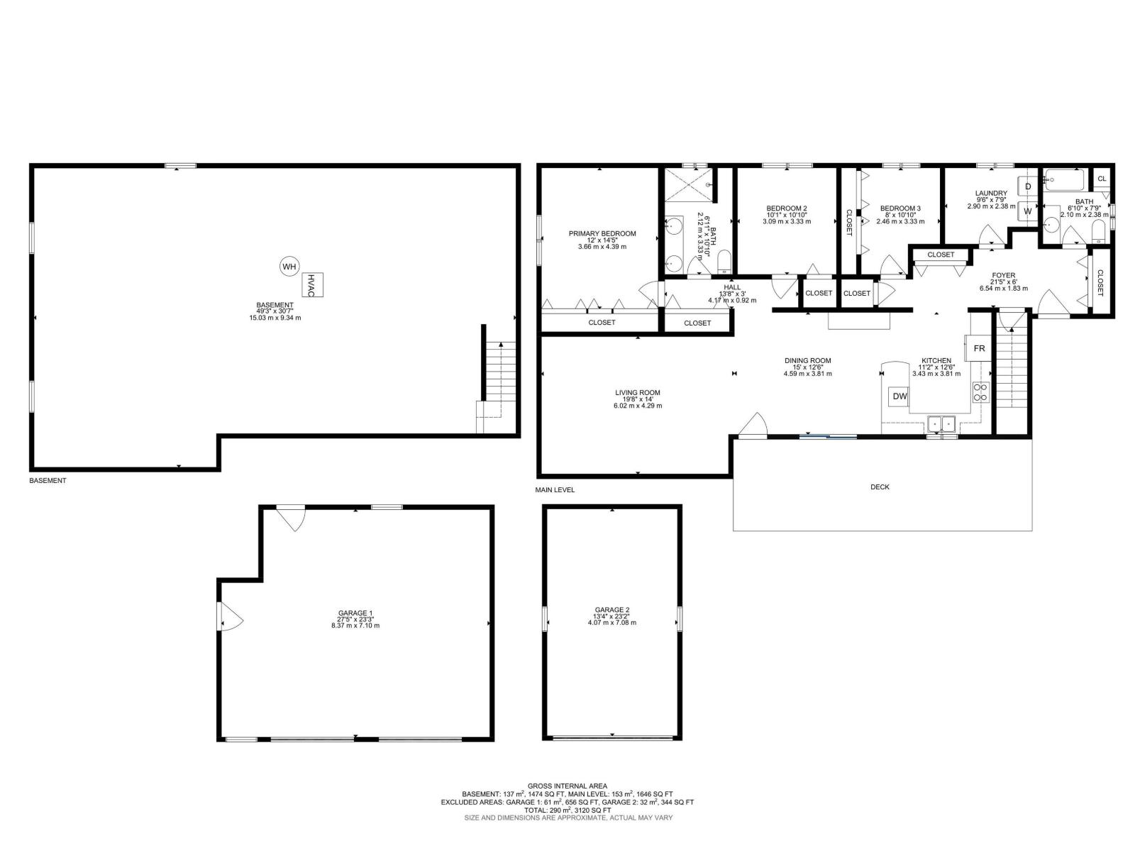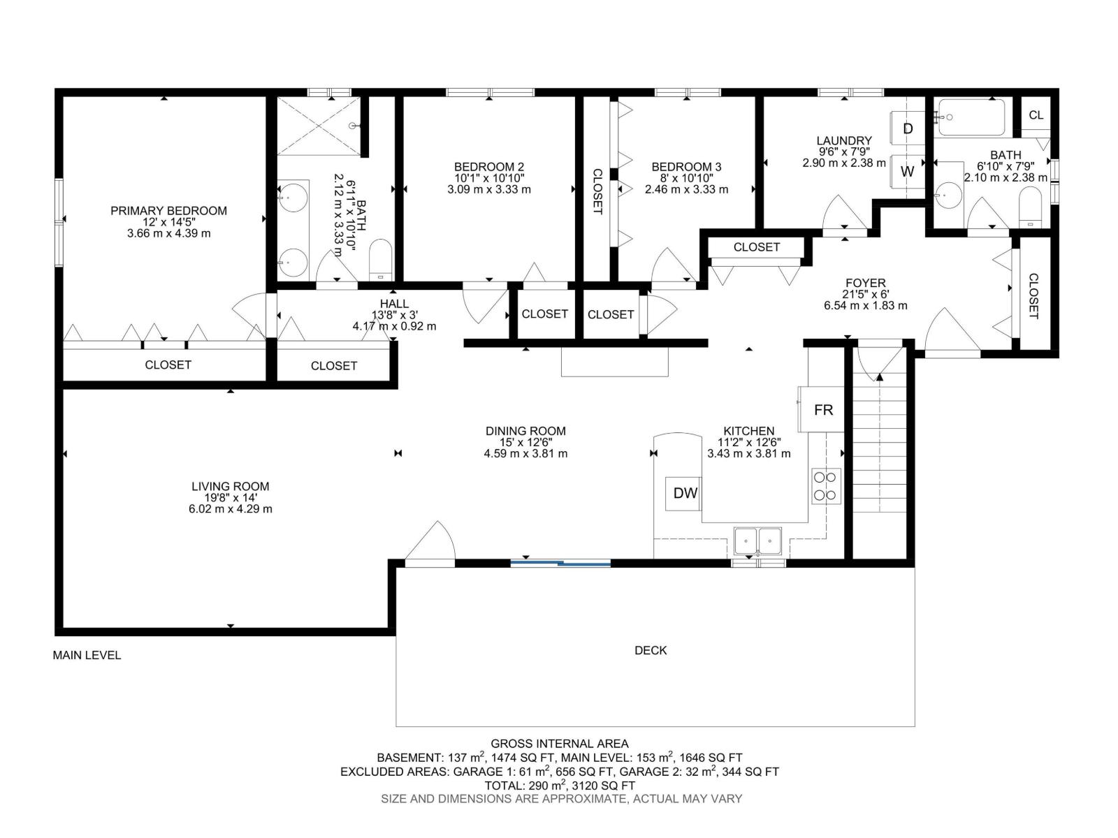 | Main Level | Primary Bedroom | 3.66 m | 4.39 m | 3.66 m x 4.39 m |