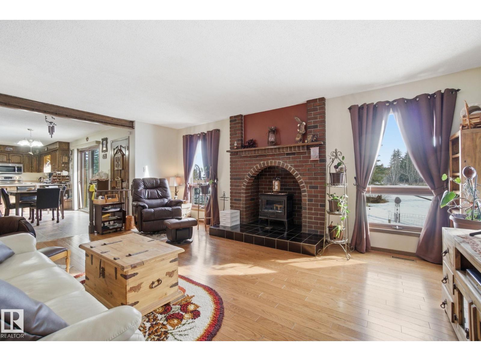 It's your picture, perfect country home! Built in 1990, this 1646 sq ft bungalow on 5.09 acres OUT OF SUBDIVISION is the ideal spot to call home. Zero stairs to get into the open concept main floor. Large kitchen with tons of cabinets & prep space is perfect for hosting. Family & friends will love gathering at the dining table and watching wildlife walk by the front window. Large living room is a great spot to spend the evening watching a movie or reading a good book. Master bedroom has room for king-size furniture & a full wall of closets! 4pc bathroom with accessible shower. 2 more bedrooms are great for kids, guests or a home office! Main floor laundry with extra space for a freezer or 2nd fridge. Basement is undeveloped & has tons to space for whatever additional rooms you need! Oversized double attached garage is great for keeping snow off vehicles. Hobby shop is 14'x24' & perfect for all the extras. PAVED DRIVEWAY. Cross fenced for animals. Automatic waterer. Just 5 minutes to Onoway!!! (id:51989)