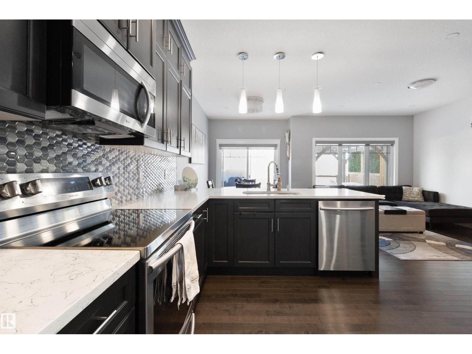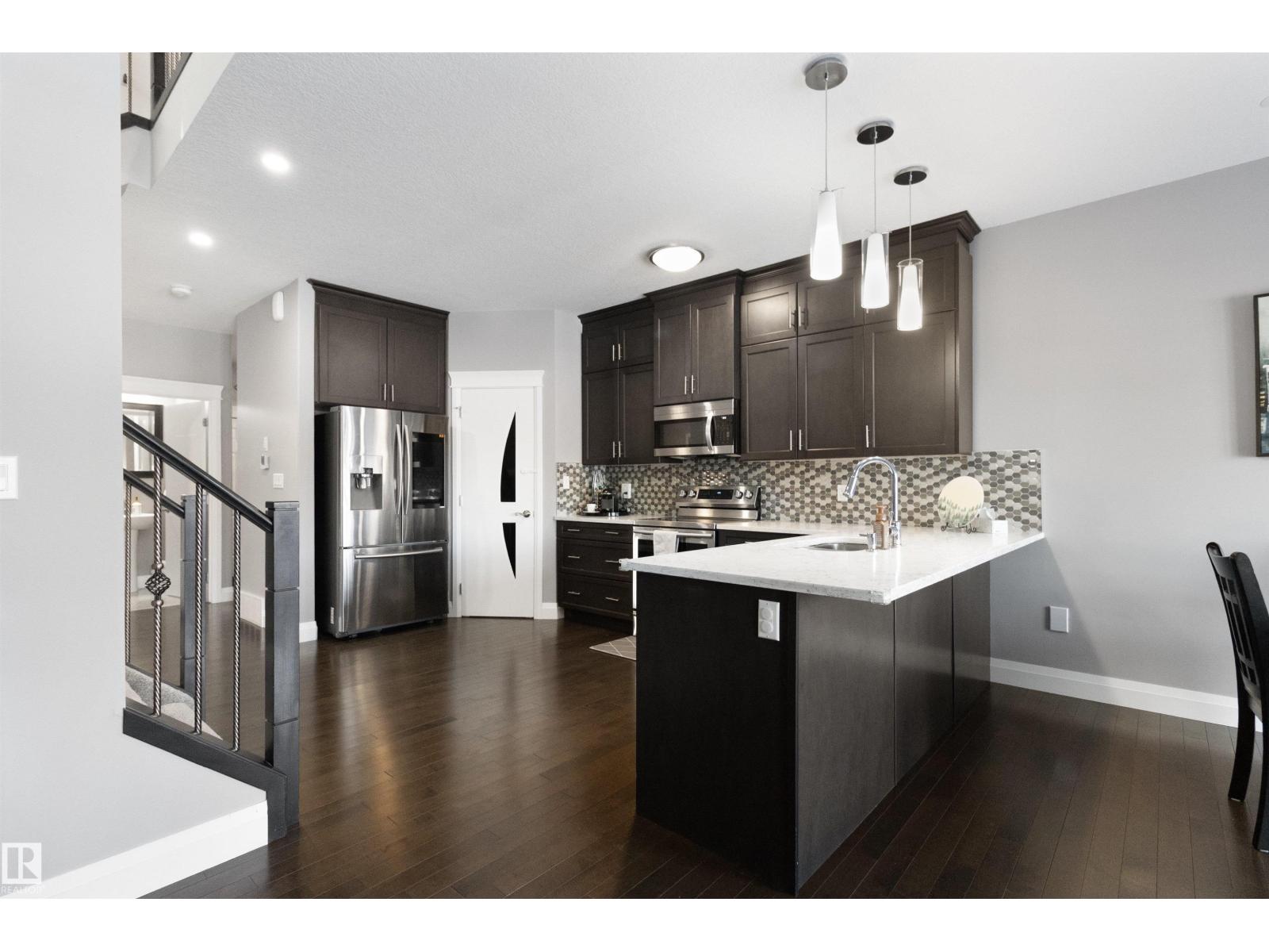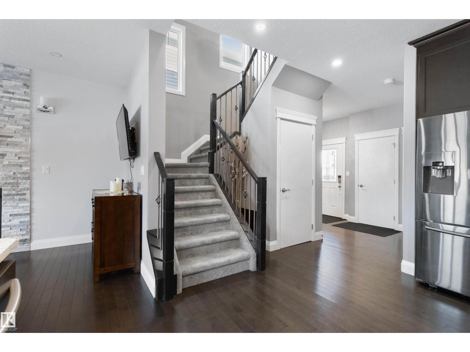 Welcome to 56 Durrand Bend backing onto scenic walking trails and just steps from Henderson Park. Enjoy a large private rear deck with privacy walls and no direct rear neighbours, perfect for relaxing or entertaining. The bright open concept main floor features 9’ ceilings, central air conditioning, a stunning granite kitchen with oversized pantry, smart appliances, ample cabinetry and counter space, and a beautiful stone facing fireplace. The massive primary bedroom offers a spacious walk-in closet and a luxurious ensuite with double sinks. A convenient side entrance provides excellent potential for future basement suite development subject to municipal approval. Additional highlights include a double attached garage, Ring doorbell camera, and great curb appeal. Close to playgrounds, shopping, schools and quick commuter routes for easy everyday living. Ideal for families or buyers looking for space, comfort and long term potential. (id:51989)