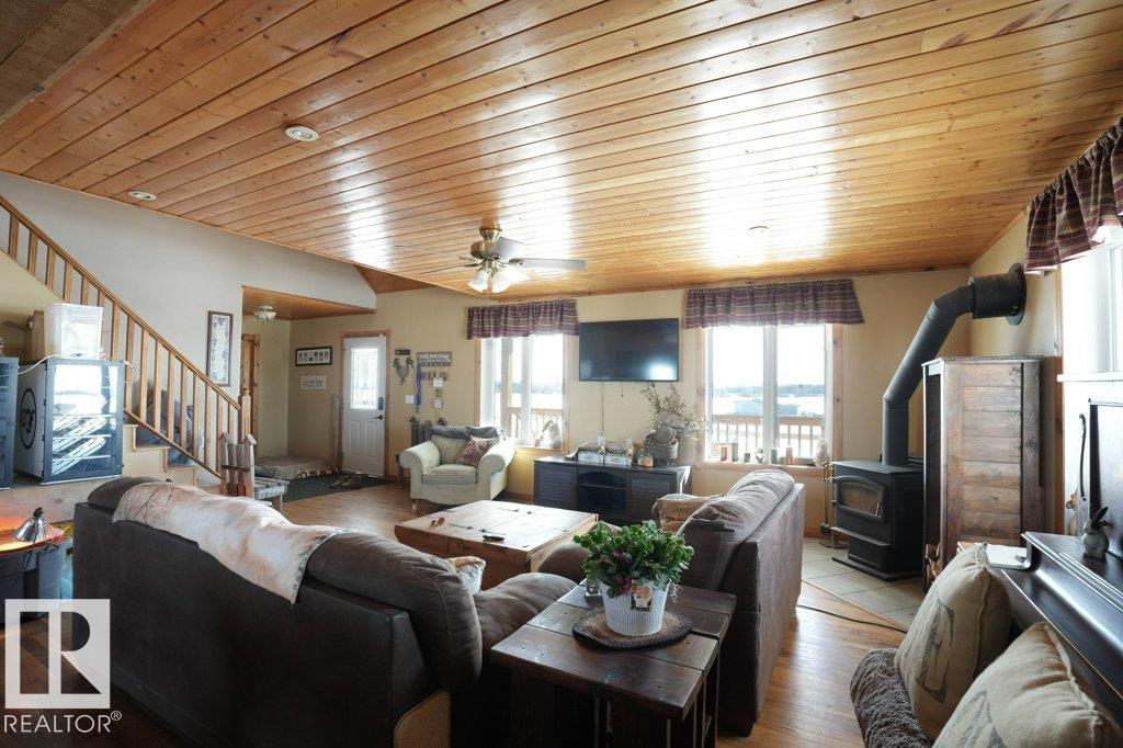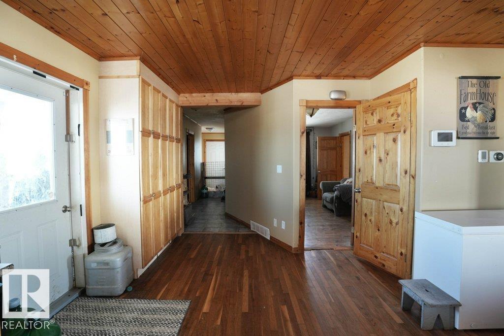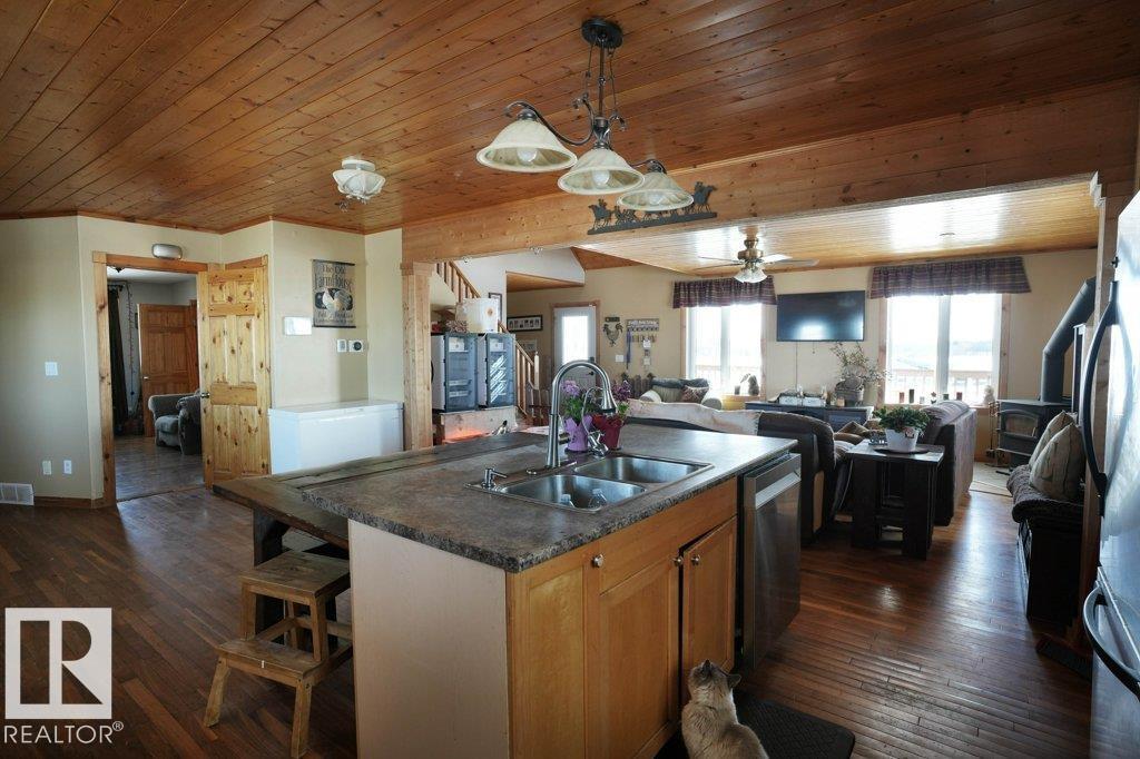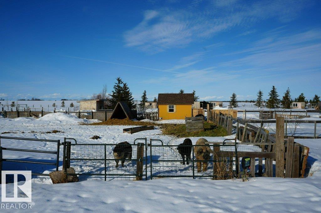 Rare opportunity to own 74.9 acres of versatile farmland set up for livestock and hobby farming. The property includes fenced and separated areas for animals, a dugout water system, and 8 chicken coops with enclosed yards suitable for poultry or small livestock. The charming Cape Cod style home offers 3 bedrooms and 3 bathrooms, including a primary bedroom with private ensuite and two bedrooms upstairs. Interior finishes feature wood ceilings, hardwood floors, and ceramic tile, creating a warm country feel. Recent upgrades include a newer furnace, air conditioning, and on-demand hot water system. Enjoy the outdoors with a large wraparound deck, rear deck, pool, and fire pit areas. The property also includes a triple attached heated garage with its own power panel and hot/cold water sink, plus a large unfinished basement ideal for storage or future development. A great opportunity for those seeking rural living with farming potential. (id:51989)