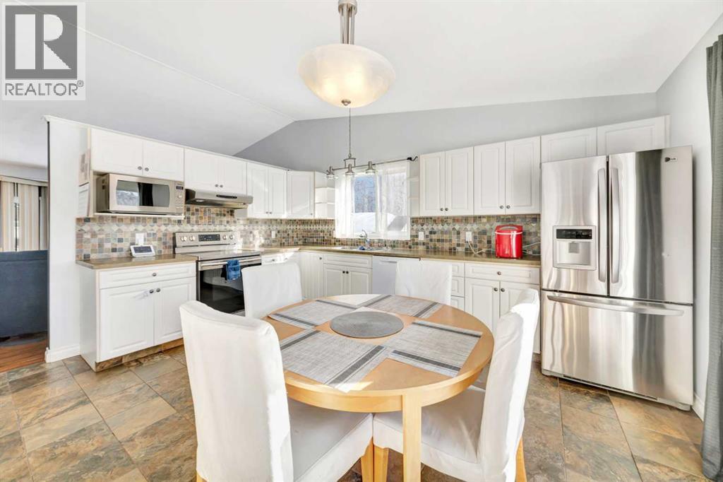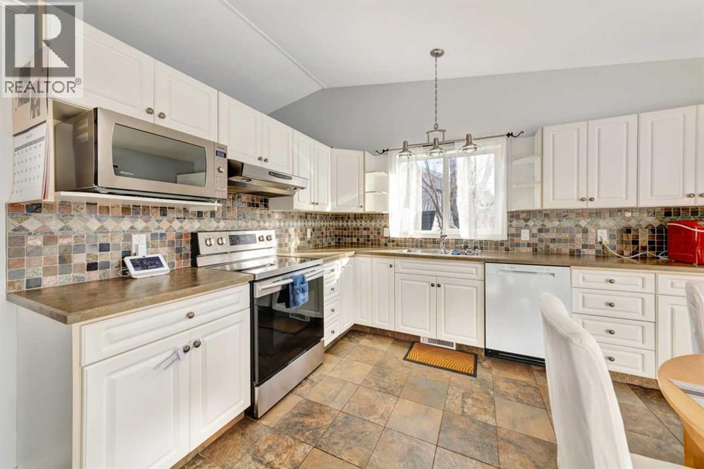 Nestled on a quiet street near College Park School, this beautifully maintained home offers a bright, spacious layout and solid craftsmanship with a full concrete foundation. The main floor features vaulted ceilings, a large eat-in kitchen with updated slate backsplash, and abundant cabinetry and storage.Upstairs, you’ll find three comfortable bedrooms, including a primary suite complete with two closets and a luxurious ensuite boasting a two-person walk-in tiled shower.The fully finished basement expands your living space with a cozy gas fireplace, an additional large bedroom, ample storage, and two versatile family areas—ideal for a home gym, playroom, or office.Enjoy year-round convenience with a heated, insulated double garage, plus peace of mind with a newer Armadura metal roof. The fully landscaped backyard offers privacy with mature trees, a raspberry patch, a two-tier deck, and two storage sheds—perfect for relaxing or entertaining outdoors. In the last couple of years, this home has seen some significant updates, including: New furnace, water heater and PEX water lines. (id:51989)