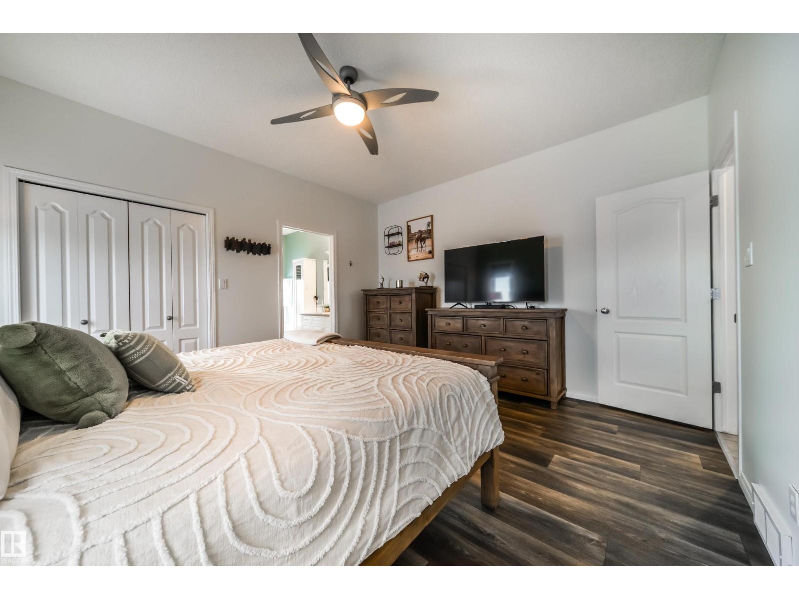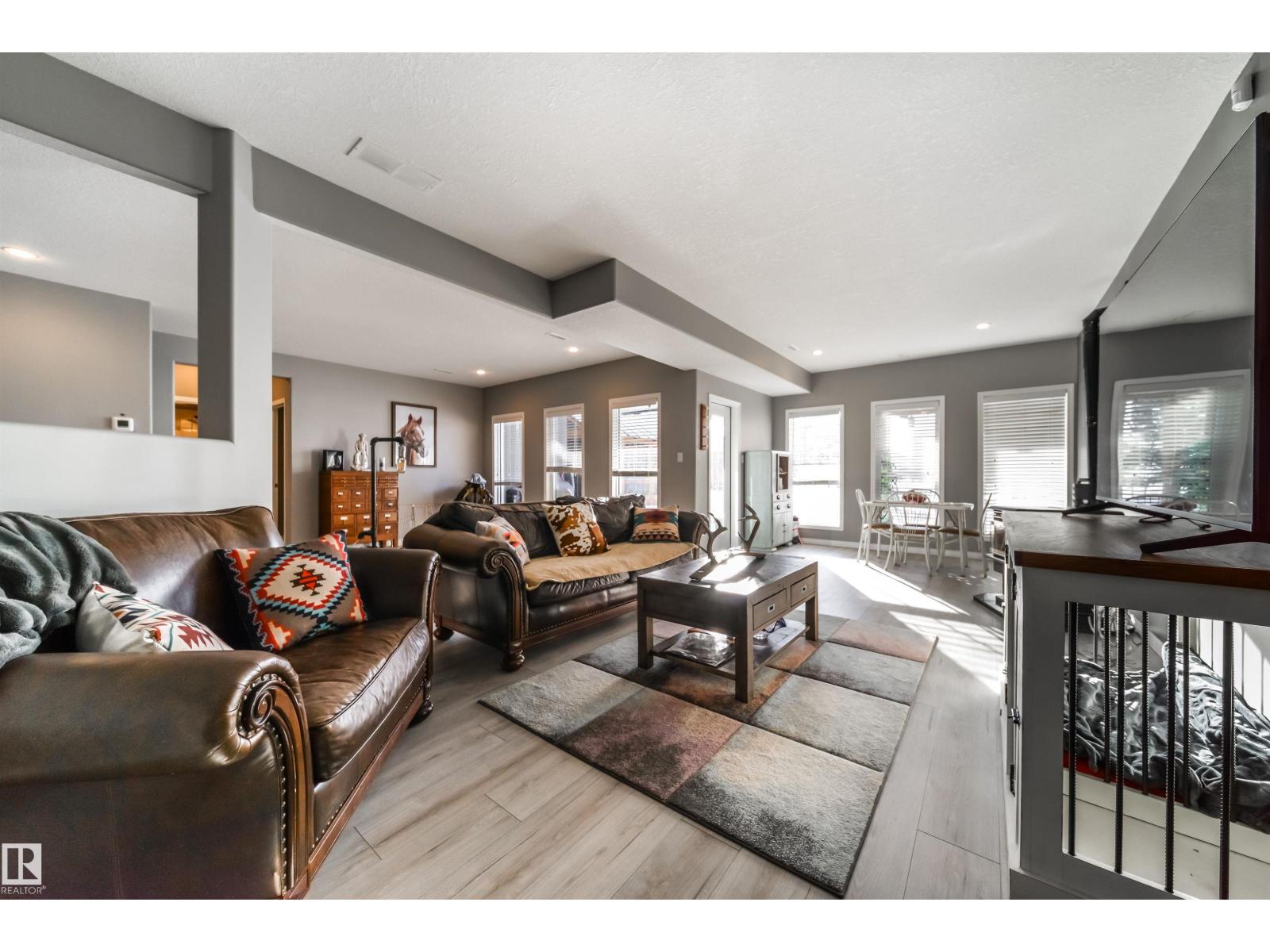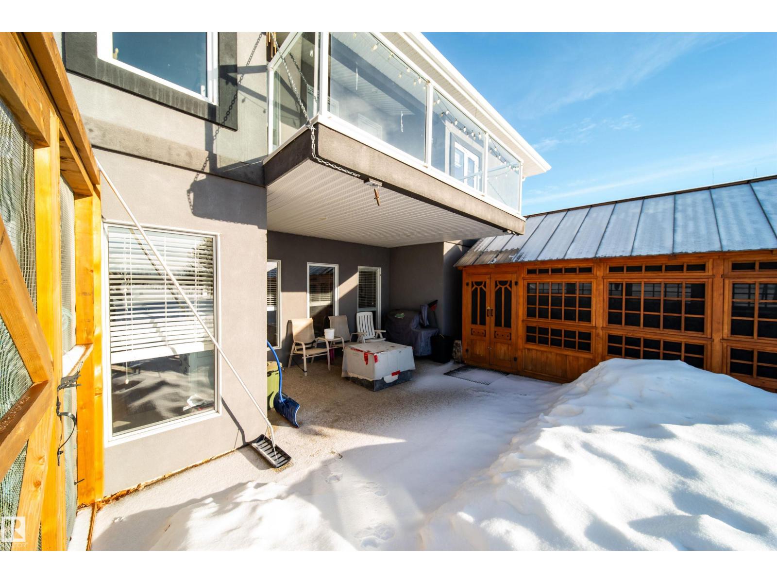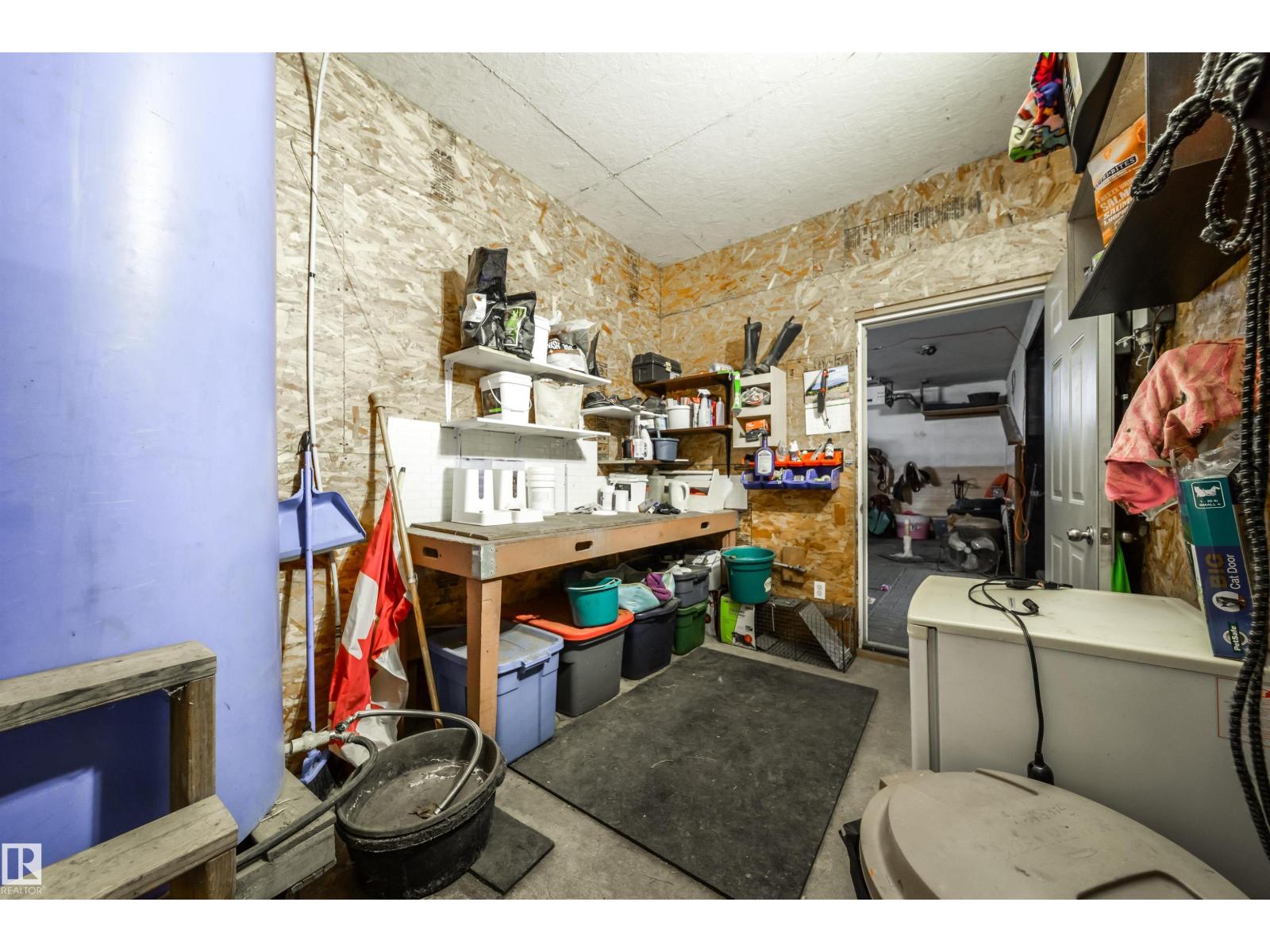 Bring the family and the horses! This beautifully updated 3 bedroom, 3 bath walkout bungalow sits on 12.92 acres just 20 minutes from St. Albert and blends modern comfort with acreage living. The bright open-concept main floor features beautiful kitchen with quartz island, stainless appliances, walk-in pantry, and south-facing views from the dining area with access to a covered deck. The living room offers 11’ ceilings, large windows, and a cozy gas fireplace. A spacious den, laundry/boot room, full bath, and primary suite with ensuite complete the main level. The finished walkout basement includes two bedrooms, hobby room, full bath, and large rec room with pellet stove. Outside you’ll find corrals, riding area, heated 5-stall barn, 2016 massive 78x42 in-floor heated shop with 14’ x14' doors, shed, heated triple attached garage, plus a private 2017 Artic Ozone salt water swim spa with beach house for year-round relaxation. Acreage living done right. Railroad tracks are decommissioned. (id:51989)