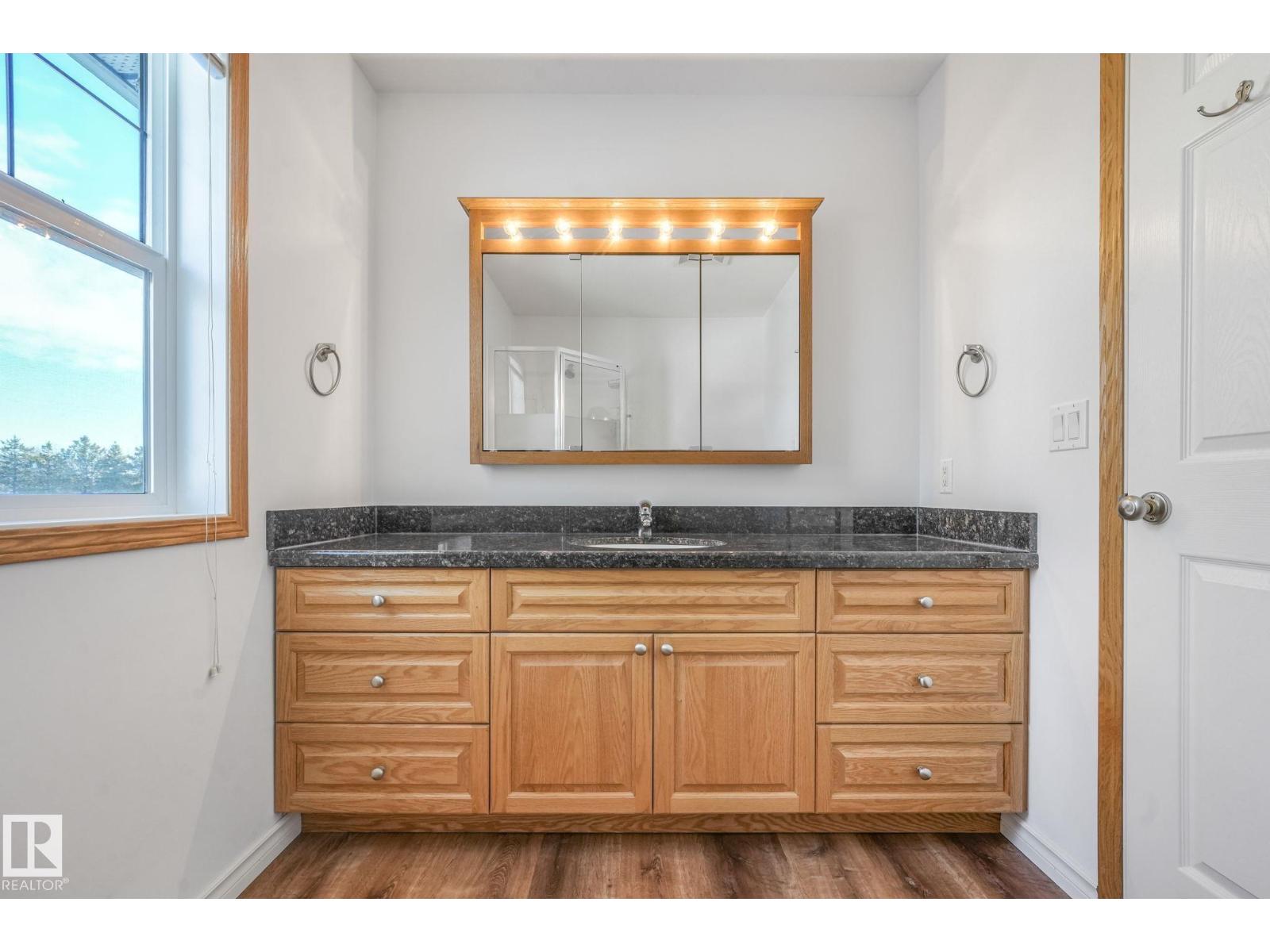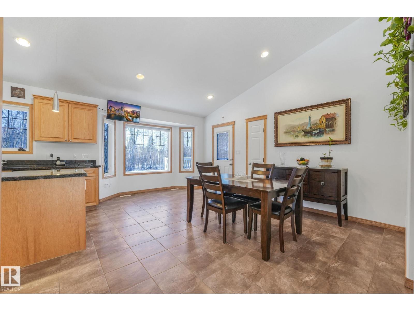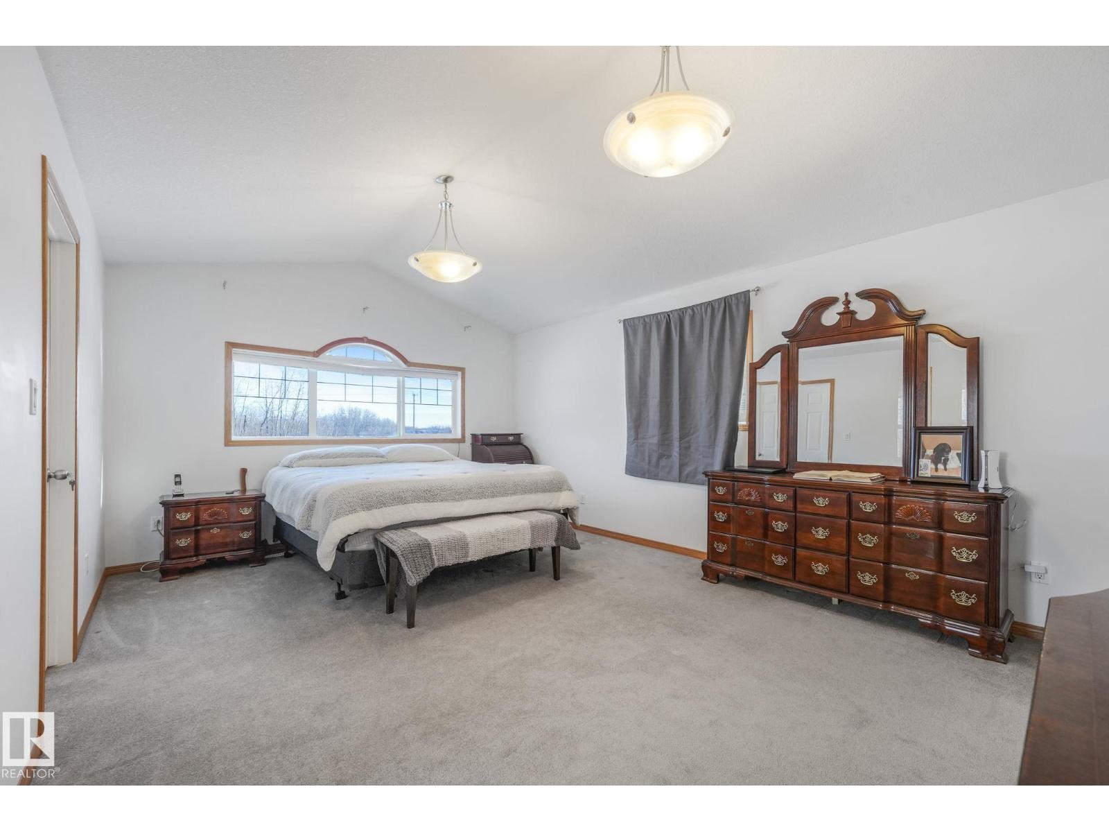 Escape to peace and privacy on 10 acres just outside Redwater, 40 minutes to the city, in this beautifully maintained bi-level. Bright, open living space features vaulted ceilings and a cozy fireplace. The spacious kitchen offers oak cabinetry, granite countertops, new stainless steel appliances, large pantry and under-sink water filtration. Entertain with ease in the large dining area leading to a two-tiered deck with natural gas BBQ hookup. The primary suite includes an updated ensuite with new shower and flooring. Downstairs is a massive rec room, office nook, and an additional bedroom with full ensuite. Enjoy year-round comfort with central A/C, heated double garage, furnace (2019), upgraded well pump (2022), and a full water filtration system (2023). Outdoors, you'll have your own pond, walking trails, raspberry bushes, crabapple trees, rose hips, incredible northern light views, ready-to-use chicken coop, and a 40’ x 20’ quonset. A rare blend of comfort, space, and country living. Move-in Ready! (id:51989)