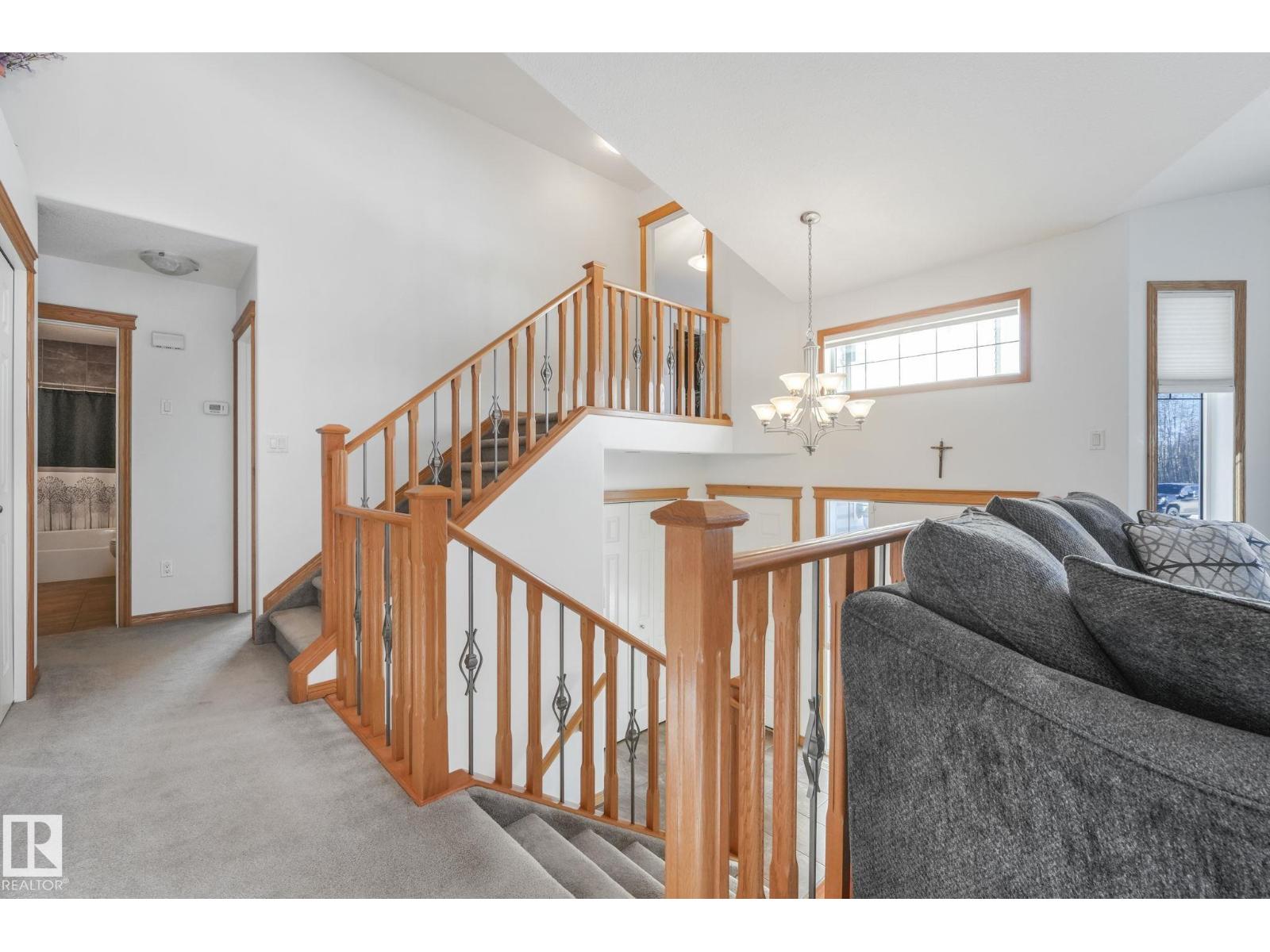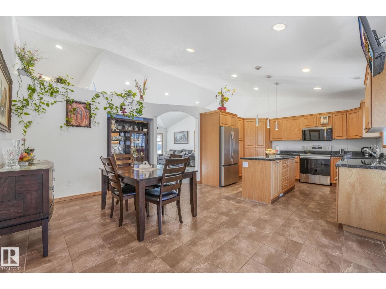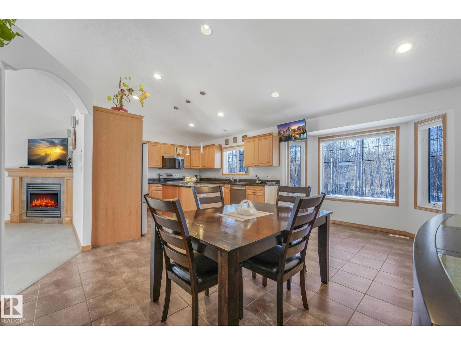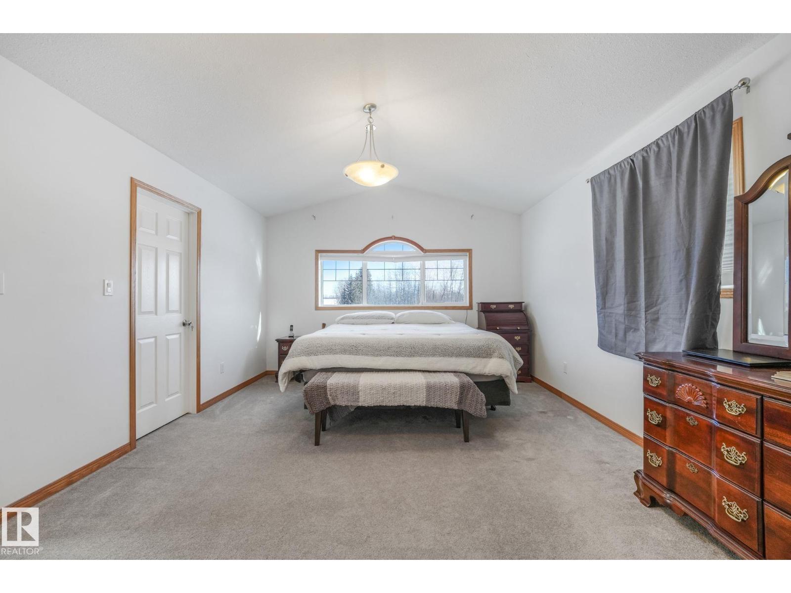 Escape to peace and privacy on 10 acres just outside Redwater, 40 minutes to the city, in this beautifully maintained bi-level. Bright, open living space features vaulted ceilings and a cozy fireplace. The spacious kitchen offers oak cabinetry, granite countertops, new stainless steel appliances, large pantry and under-sink water filtration. Entertain with ease in the large dining area leading to a two-tiered deck with natural gas BBQ hookup. The primary suite includes an updated ensuite with new shower and flooring. Downstairs is a massive rec room, office nook, and an additional bedroom with full ensuite. Enjoy year-round comfort with central A/C, heated double garage, furnace (2019), upgraded well pump (2022), and a full water filtration system (2023). Outdoors, you'll have your own pond, walking trails, raspberry bushes, crabapple trees, rose hips, incredible northern light views, ready-to-use chicken coop, and a 40’ x 20’ quonset. A rare blend of comfort, space, and country living. Move-in Ready! (id:51989)