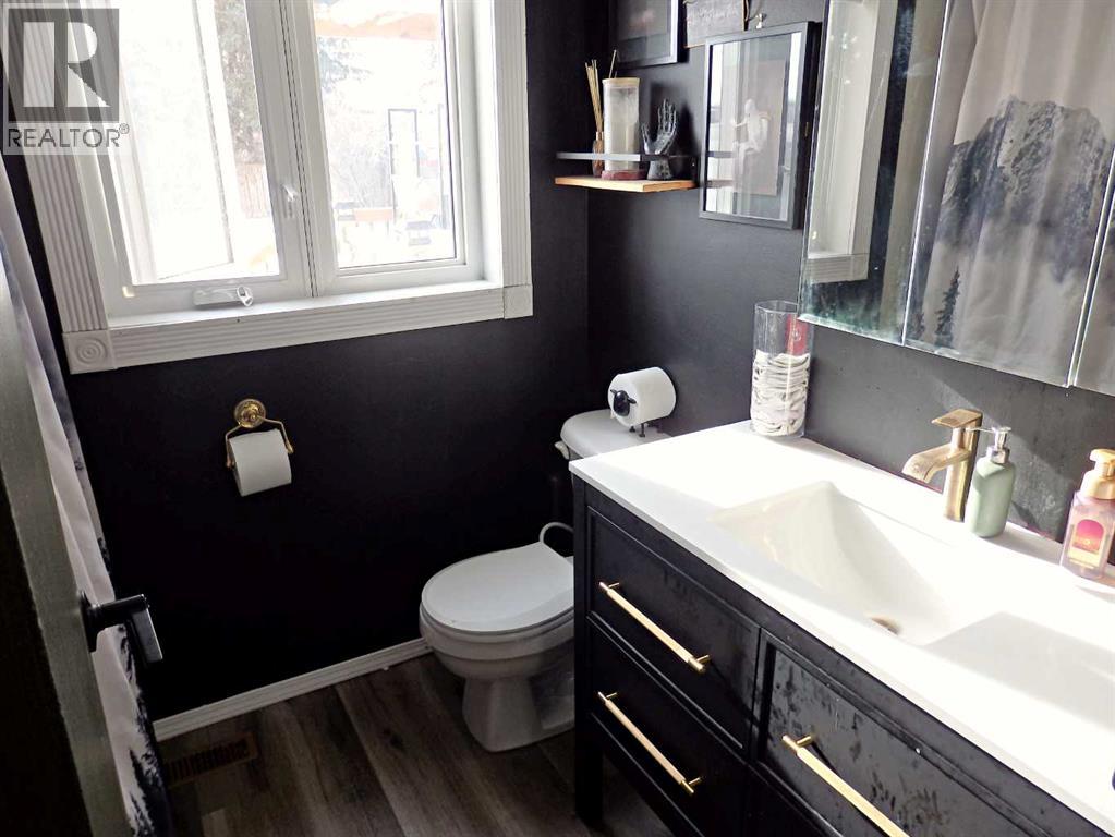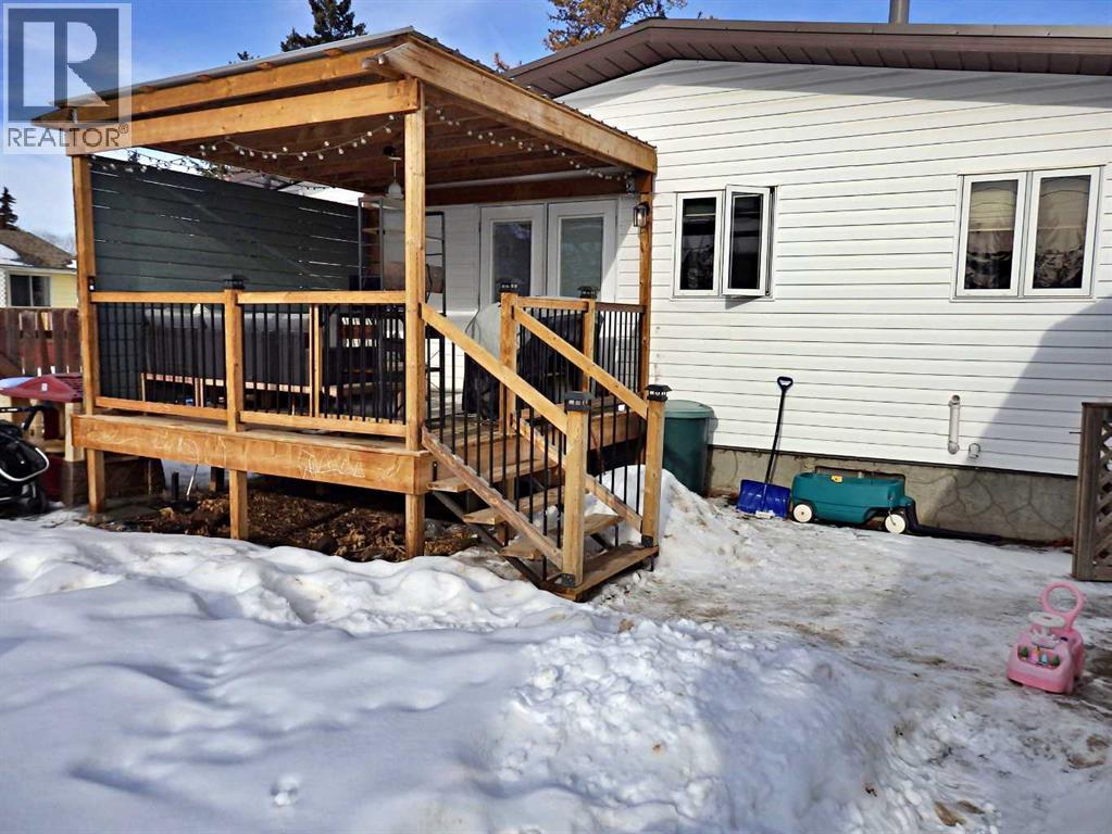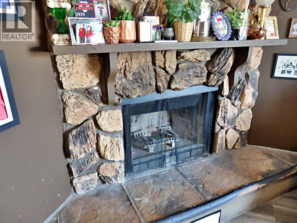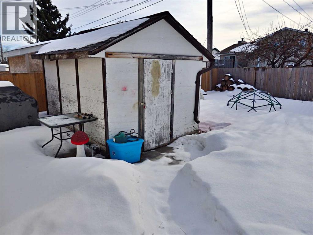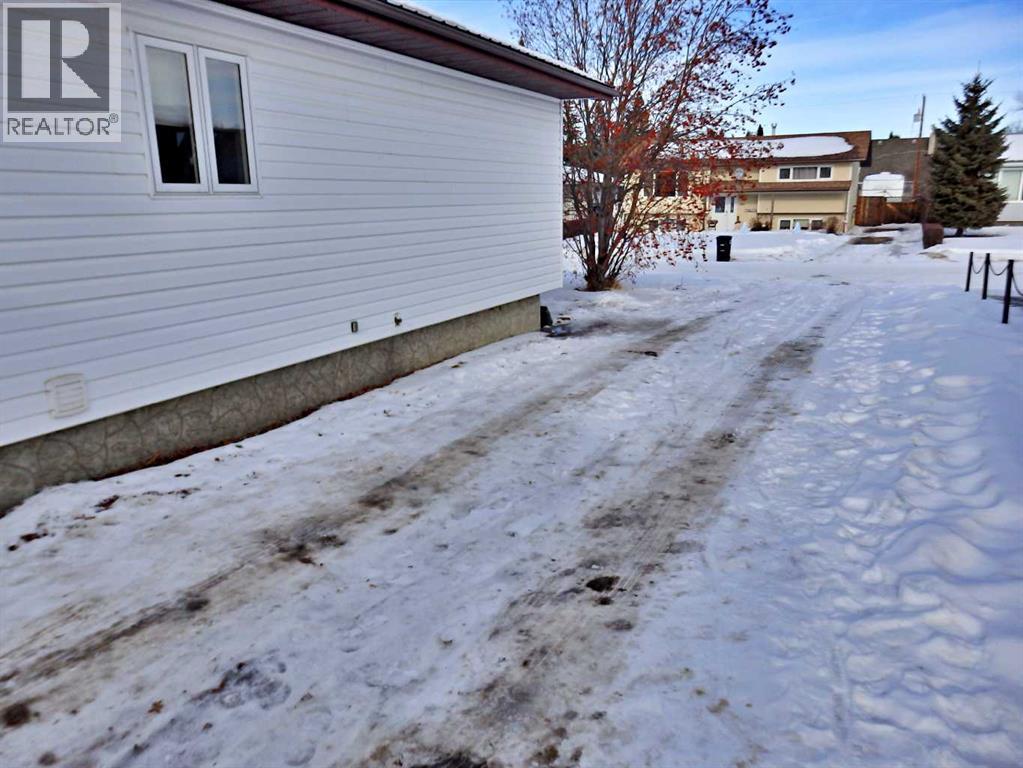 Updated bungalow situated in a quiet cul-de-sac on Vermilion's west-end. The oversized, fully-fenced lot provides a double detached-heated garage, large storage shed & established fire pit area. The home has seen a multitude of renovations as of late: new vinyl windows, doors, siding, bathroom, furnace, HWT and metal roof for longevity. A recent fire next door has left the lot adjacent, open. Large areas of greenspace & playgrounds within a short walk from the property. The extra-long driveway supplies a ton of parking spaces for toys etc. Majority of the appliances are new within a year and are all set to stay. A renovated family home in a fantastic location. (id:51989)