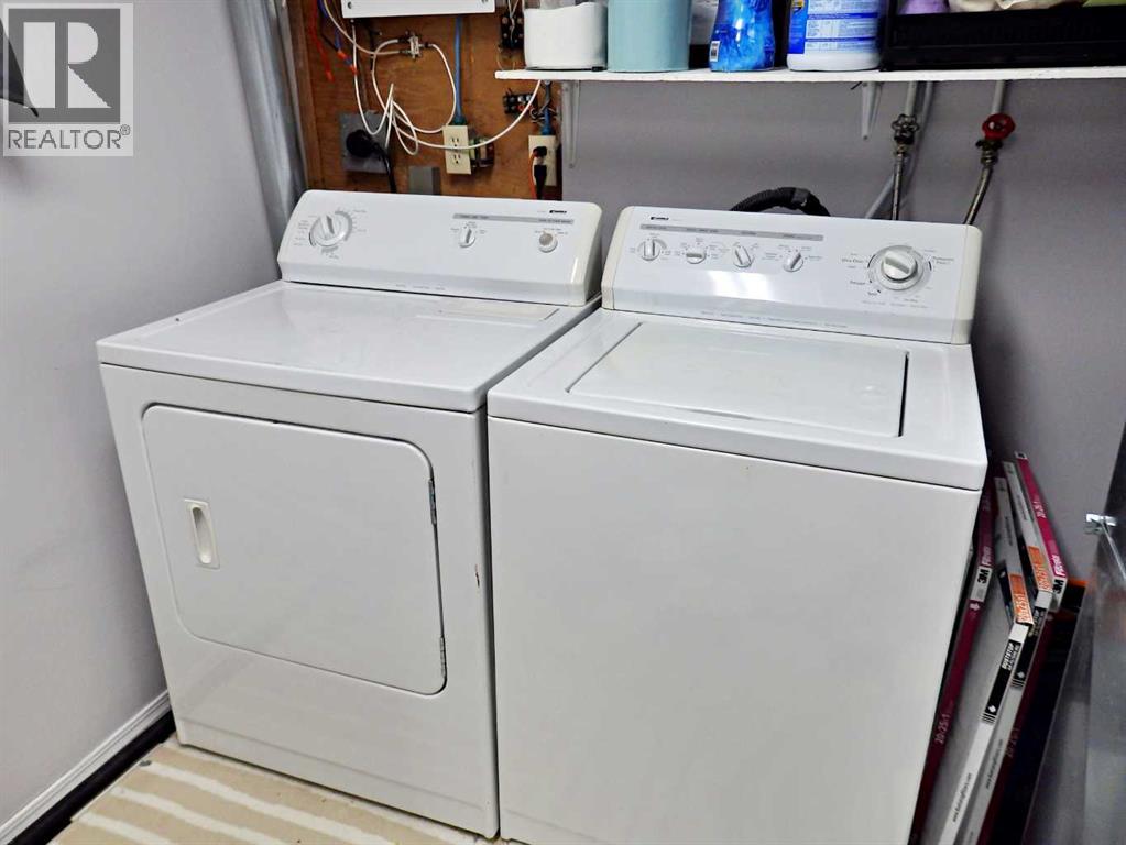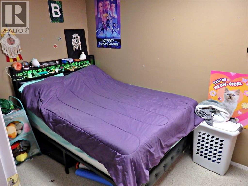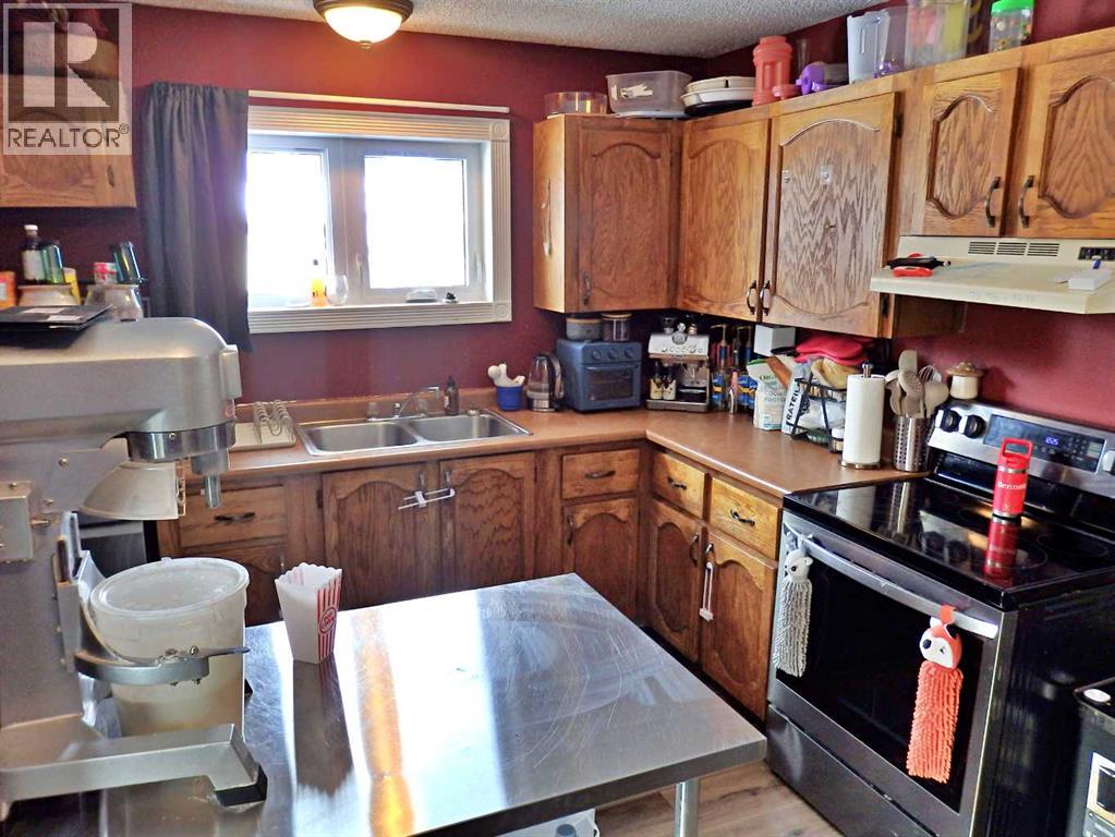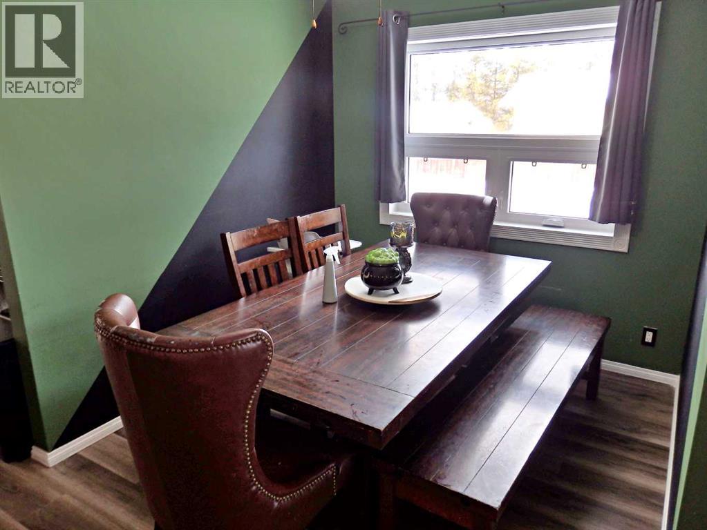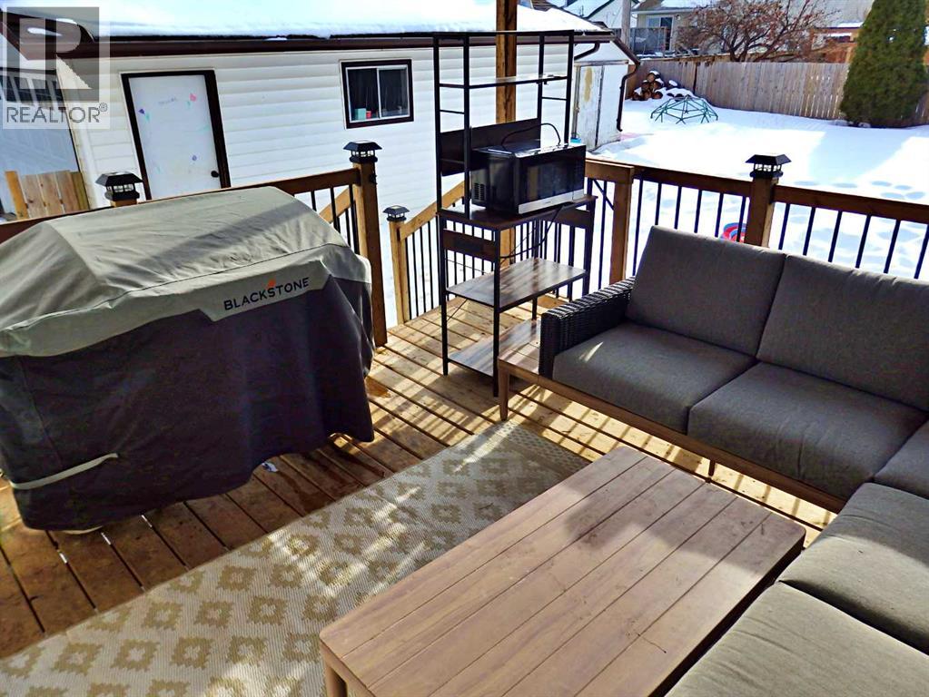 Updated bungalow situated in a quiet cul-de-sac on Vermilion's west-end. The oversized, fully-fenced lot provides a double detached-heated garage, large storage shed & established fire pit area. The home has seen a multitude of renovations as of late: new vinyl windows, doors, siding, bathroom, furnace, HWT and metal roof for longevity. A recent fire next door has left the lot adjacent, open. Large areas of greenspace & playgrounds within a short walk from the property. The extra-long driveway supplies a ton of parking spaces for toys etc. Majority of the appliances are new within a year and are all set to stay. A renovated family home in a fantastic location. (id:51989)
