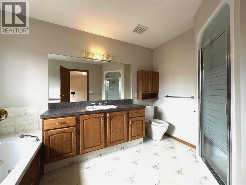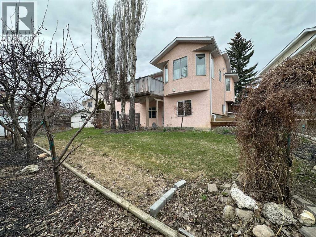 Walkout Bungalow in Edgemont with a Legal Secondary Suite!Welcome to this well-maintained, custom-built walkout bungalow, ideally situated on a quiet crescent in the highly desirable community of Edgemont. Offering over 2,700 sq. ft. of developed living space, this 5-bedroom home provides exceptional flexibility for families or multi-generational living.The bright main floor features extensive hardwood flooring, a formal living and dining area with bay windows, and elegant French doors. The spacious oak kitchen, complete with a central island, flows into a sun-filled breakfast nook with direct access to a south-facing balcony—perfect for enjoying your morning coffee. This level includes two bedrooms, highlighted by a generous primary suite featuring a walk-in closet and a jetted tub ensuite.The fully developed walkout basement is a legal suite, boasting 9-ft ceilings, in-floor heating, three additional bedrooms, a large living/recreation area with a pellet stove, a kitchen, and separate laundry—an excellent mortgage helper or private guest space.Set on a pie-shaped lot, the backyard offers a perfect blend of functionality and outdoor enjoyment with garden beds, a brick patio, and a playhouse.Additional Features:New Roof (2024), All Poly-B Replaced (2021), Oversized 24’ x 24’ double garage, Water filtration & underground sprinkler systems. Conveniently located just minutes from Nose Hill Park, top-rated schools, shopping, and transit. A rare opportunity to own a walkout bungalow with incredible income potential in one of NW Calgary’s most established communities! (id:51989)