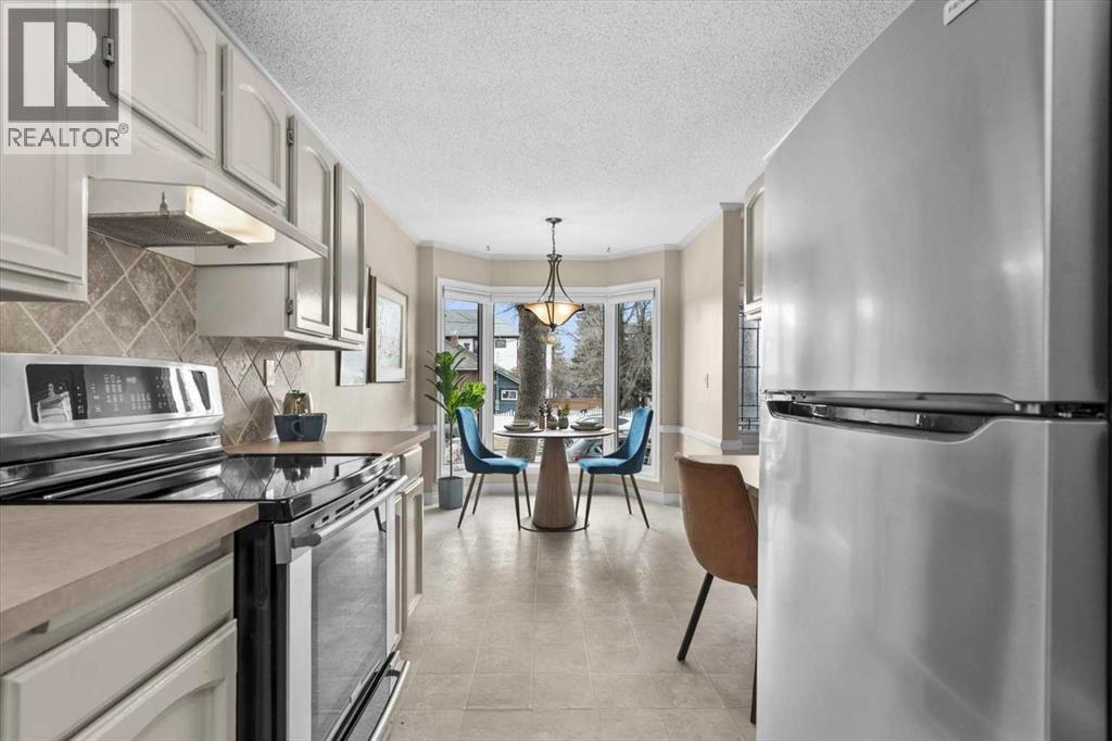 Unbelievable value in Calgary's inner-city! Nestled in the heart of Sunnyside, one of Calgary's most charming and walkable inner-city communities that's known for its perfect balance of vibrant city energy and laid-back neighbourhood feel! Just moments from the Bow River pathways, this location can't be beat, providing easy access for walking, running, or cycling, and only a couple of blocks from the vibrant amenities of Kensington, one of Calgary’s most sought-after lifestyle hubs! Think local cafés, brunch spots, pubs, boutique shopping, fitness studios, and everyday essentials like groceries and the C-Train all within a few blocks. Greeted by a lovely front patio, you'll step inside to a bright and welcoming layout featuring new vinyl flooring that adds a fresh, modern touch throughout. The functional kitchen is beaming with natural light all day, with a charming bay window to enjoy your morning coffee. The spacious living room features large windows and is anchored with a cozy gas fireplace and access to the second outdoor terrace. This room offers plenty of flexibility! Head upstairs to find the over-sized primary retreat that serves as the perfect sanctuary, complete with its own gas fireplace, walk-in closet, and a spacious 5-piece ensuite featuring dual sinks and a large soaker tub. The second bedroom is great for the family or guests. The lower level provides a versatile space for a den/office, ideal for those who work from home, or could be used as a 3rd bedroom complete with closet space. Additional highlights include a double attached garage, new furnace (2025), newer roof (2022), exterior paint (2024), and hot water tank (2026). A rare opportunity to own a well-kept townhome in one of Calgary’s most walkable and desirable inner-city communities. Don’t miss out! (id:51989)