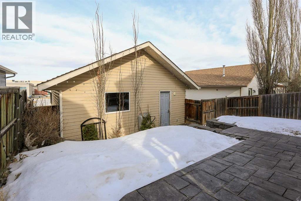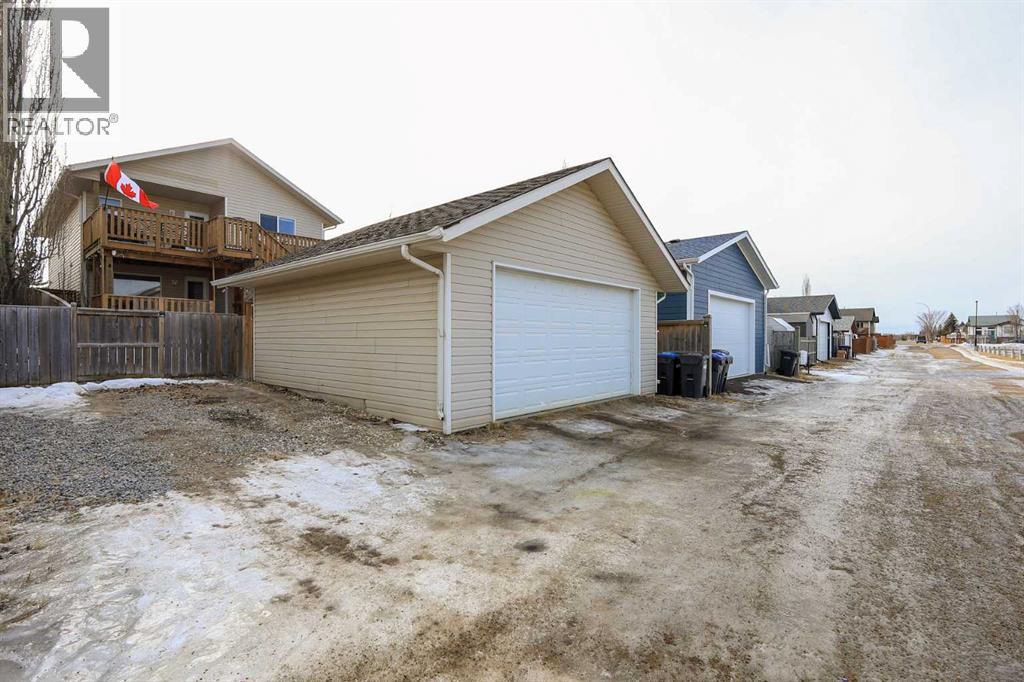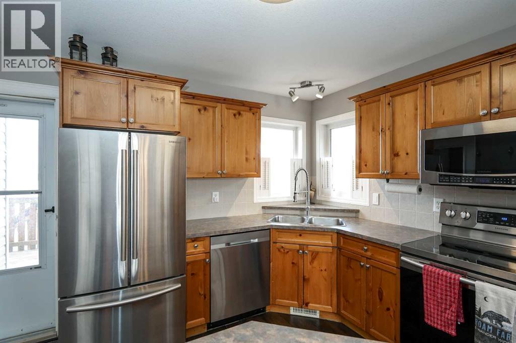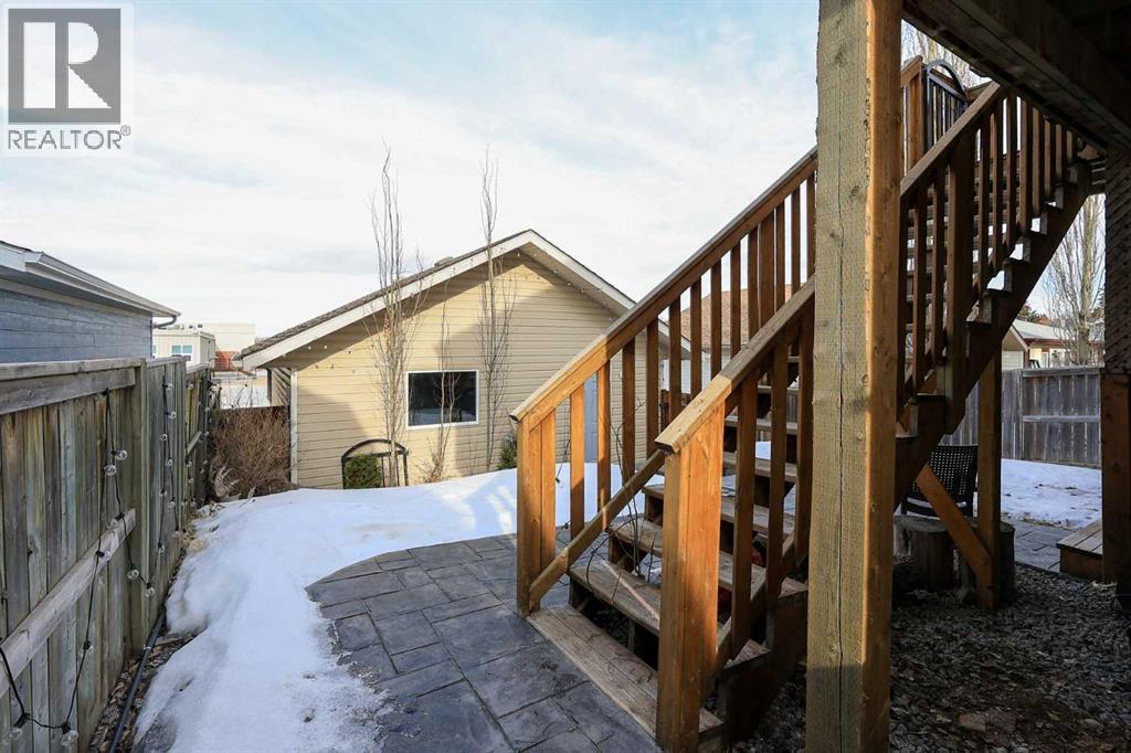 FULLY DEVELOPED 3 BEDROOM, 3 BATHROOM BI-LEVEL ~ WALKOUT BASEMENT ~ HEATED DOUBLE GARAGE & RV PARKING ~ FACING A GREEN SPACE & BACKING ONTO A PARK & SCHOOLS ~ Sunny south facing front yard with raised garden boxes with an irrigation system ~ Covered front veranda welcomes you and leads to a bright and spacious foyer with high ceilings ~ The living room features vaulted ceilings and a large south facing window that fills the space with natural light while offering beautiful park views ~ Architectural columns provide a visually appealing separation between the living and dining space while maintaining an open floor plan ~ The kitchen offers plenty of pine cabinets with crown moulding and built in wall pantry; ample counter space including an island with an eating bar; full tile backsplash; and a window above the sink that overlooks the deck and park ~ Garden door access to the partially covered upper deck that spans the entire width of the home, has a gas line, and offers park views ~ The primary bedroom can easily accommodate a king size bed, has ample closet space, and a 3 piece ensuite ~ Second main floor bedroom is also a generous size and is conveniently located next to the 4 piece main bathroom ~ The fully finished, walkout basement has large above grade windows, high ceilings and operational in-floor heating ~ Family room/den (currently being used as a home office) has board and batten wainscotting and opens to the rec room with plenty of space for a seating area and games table or home gym, plus a separate entry leading to a covered deck (with wiring roughed in for a hot tub), and the backyard ~ 3rd bedroom is conveniently located next to a 3 piece bathroom with a walk in shower ~ Laundry is located in it's own room, has a large window and tons of space for storage ~ The backyard is landscaped and fully fenced ~ HEATED 22' x22' detached garage with shelving, 220V wiring on it's own sub panel, and a workbench (seller will replace shingles on garage before poss ession) ~ RV parking beside the garage with an easy approach and paved back alley ~ Backing onto Meadowview Park, École Fox Run School and École Mother Theresa Catholic School ~ Easy access to walking trails, more great parks and playgrounds, shopping, dining, and the beach/Lakeshore Drive ~ (id:51989)