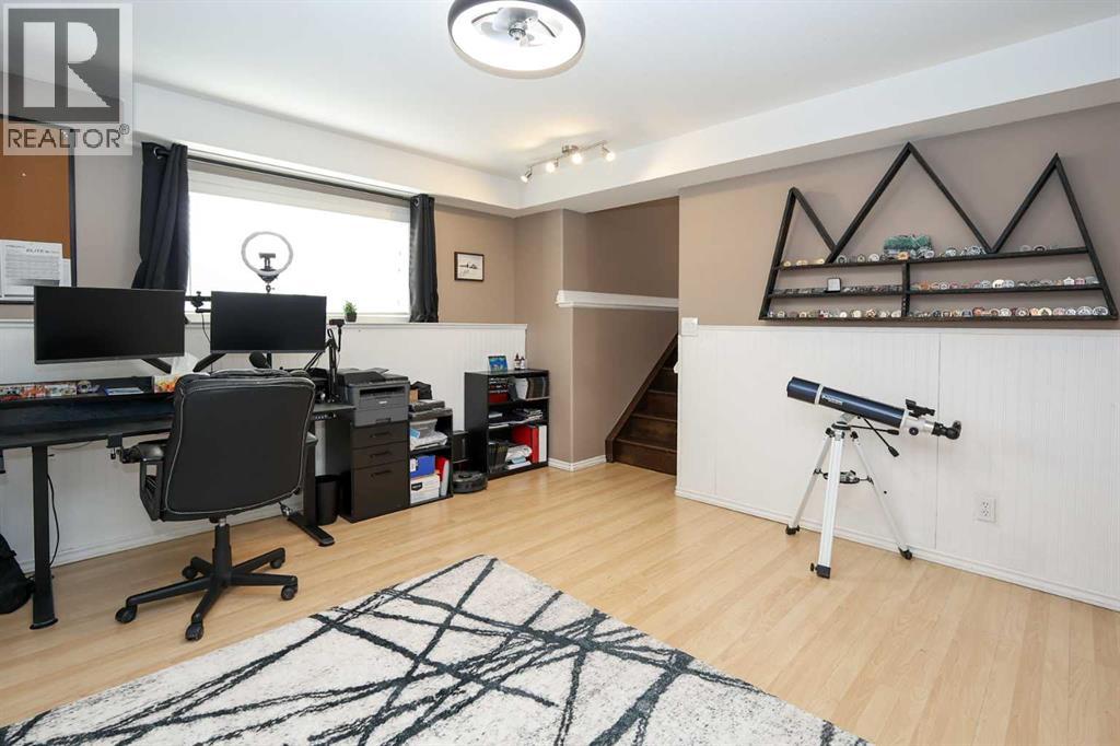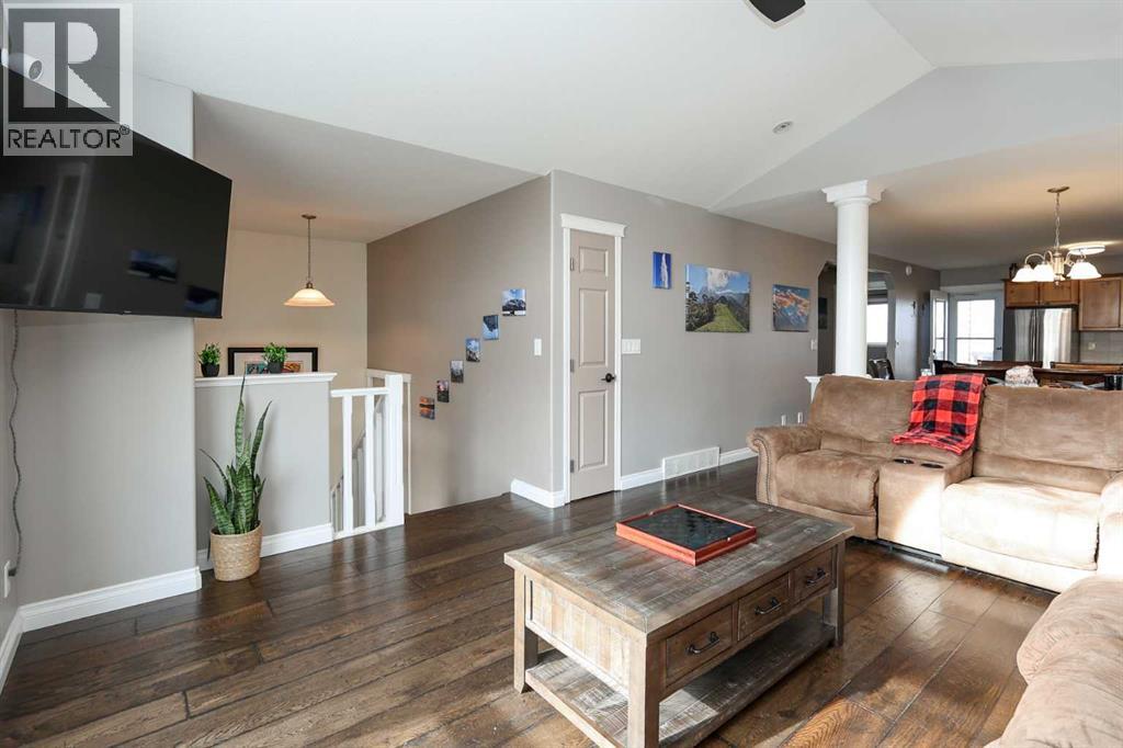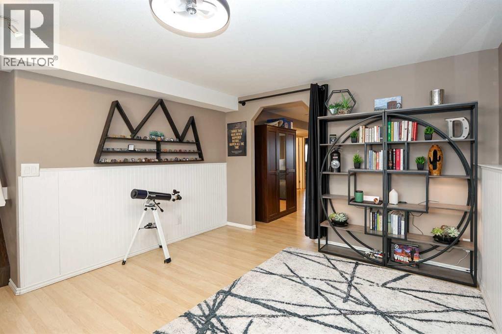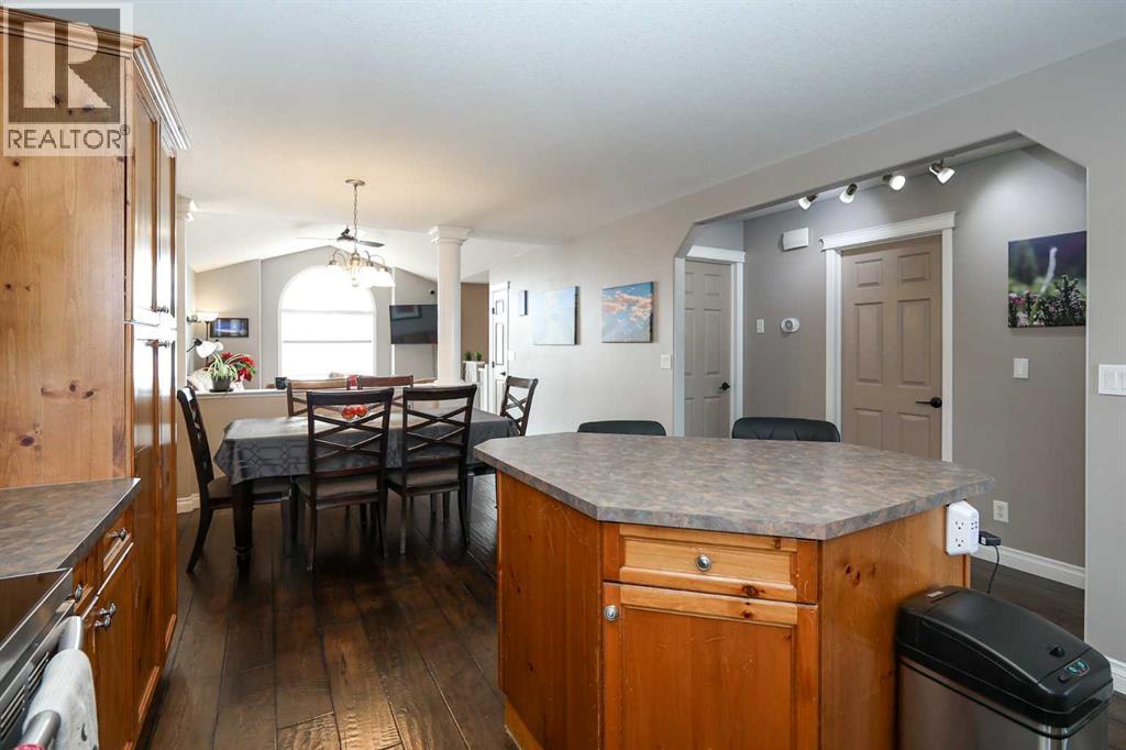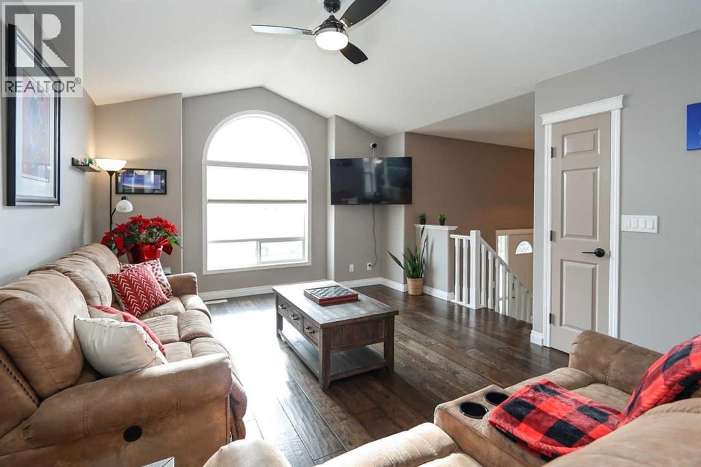 FULLY DEVELOPED 3 BEDROOM, 3 BATHROOM BI-LEVEL ~ WALKOUT BASEMENT ~ HEATED DOUBLE GARAGE & RV PARKING ~ FACING A GREEN SPACE & BACKING ONTO A PARK & SCHOOLS ~ Sunny south facing front yard with raised garden boxes with an irrigation system ~ Covered front veranda welcomes you and leads to a bright and spacious foyer with high ceilings ~ The living room features vaulted ceilings and a large south facing window that fills the space with natural light while offering beautiful park views ~ Architectural columns provide a visually appealing separation between the living and dining space while maintaining an open floor plan ~ The kitchen offers plenty of pine cabinets with crown moulding and built in wall pantry; ample counter space including an island with an eating bar; full tile backsplash; and a window above the sink that overlooks the deck and park ~ Garden door access to the partially covered upper deck that spans the entire width of the home, has a gas line, and offers park views ~ The primary bedroom can easily accommodate a king size bed, has ample closet space, and a 3 piece ensuite ~ Second main floor bedroom is also a generous size and is conveniently located next to the 4 piece main bathroom ~ The fully finished, walkout basement has large above grade windows, high ceilings and operational in-floor heating ~ Family room/den (currently being used as a home office) has board and batten wainscotting and opens to the rec room with plenty of space for a seating area and games table or home gym, plus a separate entry leading to a covered deck (with wiring roughed in for a hot tub), and the backyard ~ 3rd bedroom is conveniently located next to a 3 piece bathroom with a walk in shower ~ Laundry is located in it's own room, has a large window and tons of space for storage ~ The backyard is landscaped and fully fenced ~ HEATED 22' x22' detached garage with shelving, 220V wiring on it's own sub panel, and a workbench (seller will replace shingles on garage before poss ession) ~ RV parking beside the garage with an easy approach and paved back alley ~ Backing onto Meadowview Park, École Fox Run School and École Mother Theresa Catholic School ~ Easy access to walking trails, more great parks and playgrounds, shopping, dining, and the beach/Lakeshore Drive ~ (id:51989)