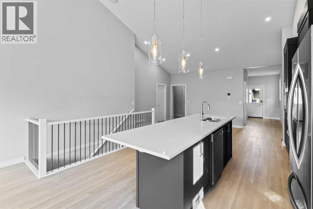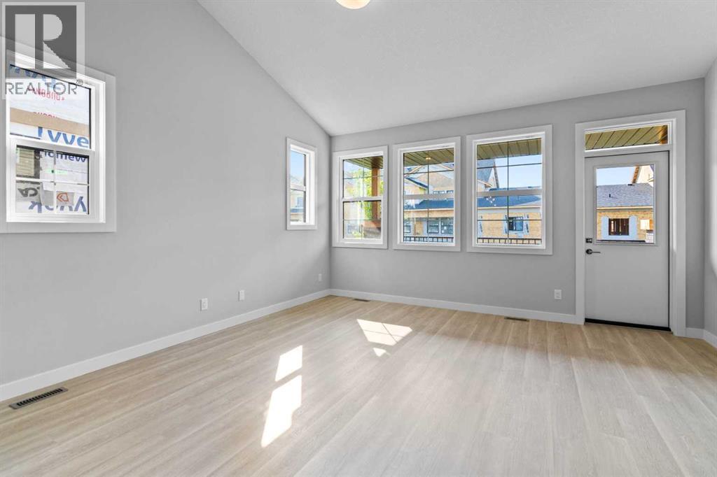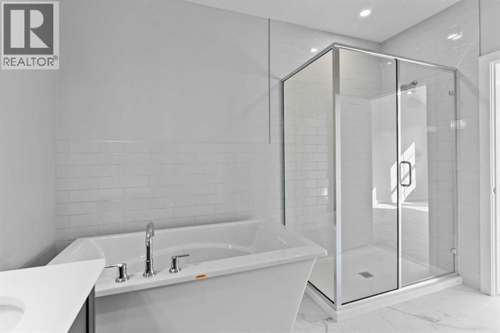 Discover this rare opportunity within Acadia Villas, an exclusive, private gated community nestled in the heart of the award-winning Cooper's Crossing neighborhood. Designed specifically for the discerning downsizer, this community features just 40 meticulously crafted, luxury bungalows, promising both security and serenity. Step into this exceptional bungalow, spanning 1,401 square feet of thoughtfully designed open concept living. The bright and airy ambiance in living area is defined by soaring vaulted ceilings that flood the space with natural light, enhancing the sense of spaciousness and grandeur. The main floor has an ideal layout which hosts 1 bedroom plus den and two full bathrooms, complemented by a practical back hall and a dedicated laundry room for ultimate convenience. The primary bedroom is a true sanctuary, featuring its own vaulted ceiling and generous proportions. The opulent five-piece ensuite is a spa-inspired finishes complete with a walk-in shower, a decadent freestanding soaker tub, and elegant double sinks. Throughout the home, you will find premium finishes including sleek quartz countertops with undermount sinks, durable luxury vinyl plank, and sophisticated tile flooring in all bathrooms. Every detail reflects an unwavering commitment to luxury and low-maintenance living. For those envisioning even more living area, the unfinished basement presents limitless potential. This expansive space offers the opportunity to add additional bedrooms, an expanded entertainment area, or a personalized recreational space—ensuring the home can grow with your changing needs. Acadia Villas provides luxury living without compromise, offering the independence of a bungalow with the security and maintenance-free ease of a gated community. (id:51989)