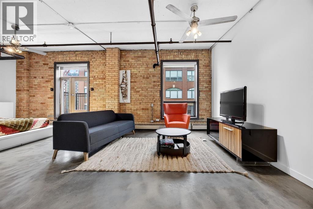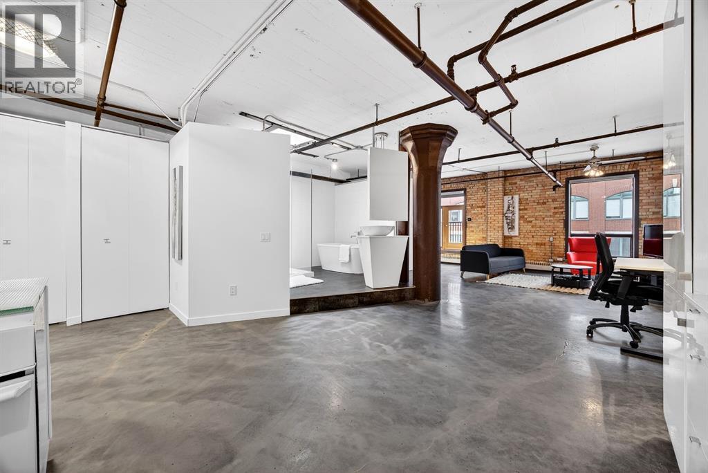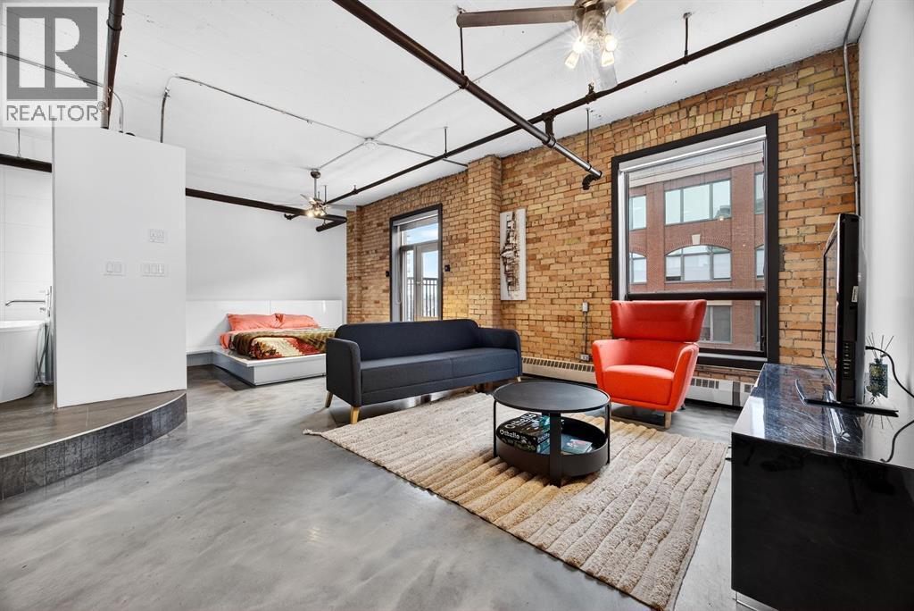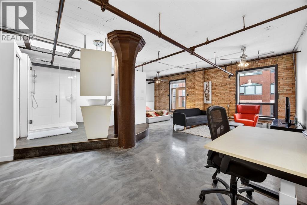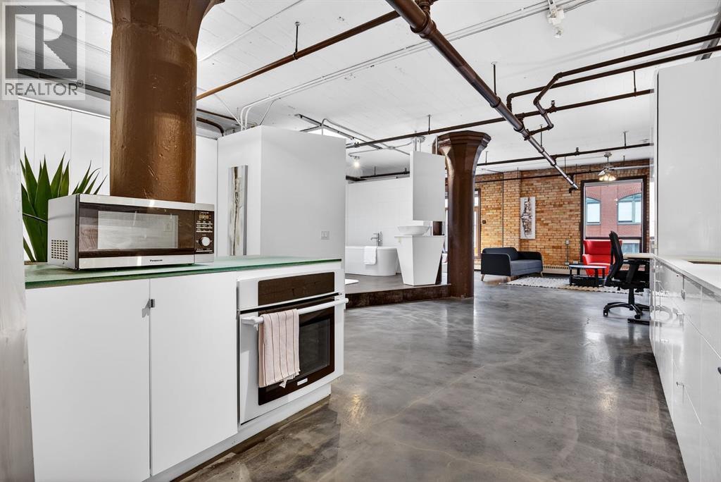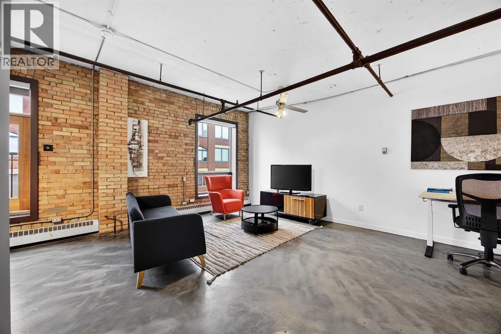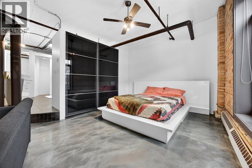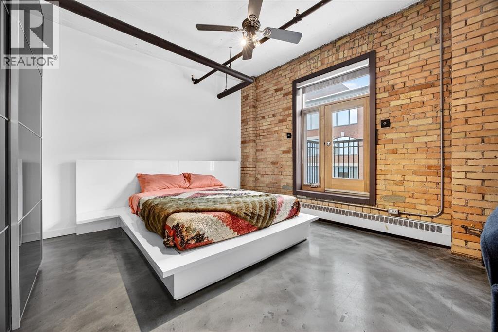 Welcome to the Lewis Lofts! This building gives New York vibes and a rare opportunity to own a piece of history in this 1911 converted Lewis Stationary building. One of Calgary’s only true “hard lofts” a provincial Class "A" Heritage Building that was converted in 1995 to residential condos. This TOP FLOOR penthouse unit features open concept living with polished concrete flooring, original brick feature walls, open industrial ceilings, and large fluted columns that give the property a ton of character. Gorgeous kitchen with sleek white cabinetry, brand quartz counters, undermount sink, built-in integrated dishwasher and fridge, and island with custom glass counter and matching shelving unit. Open to the main area with lots of space for dining, living room, and office area. Remodeled open concept bathroom with floor to ceiling tile, free-standing soaker tub, walk-in glass shower, and separate water closet. Bedroom area with garden door out to the top floor West facing balcony with High Park and DT views. In suite laundry and a direct vent outside with air conditioning unit included complete this amazing space. The unit comes with heated underground parking, storage locker, and the building features a huge common area patio with gazebo, BBQs, and lawn furniture, a great spot to hang out with friends on summer days! All located in the heart of the Beltline across the street from Vintage Chop house and walking distance to all the bars, restaurants, shops, DT Core, Vibrant 10th and 17th Avenue. Convenient close access to the +15 walkway, Scotiabank Saddledome, Stampede Park, and so much more! Don’t miss your chance own in one of Calgary’s most sought after historic landmarks, with timeless architecture and character that will be the envy of all your friends! (id:51989)