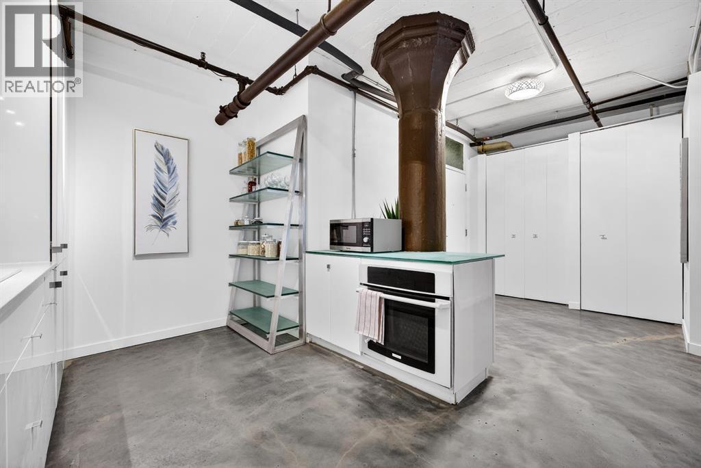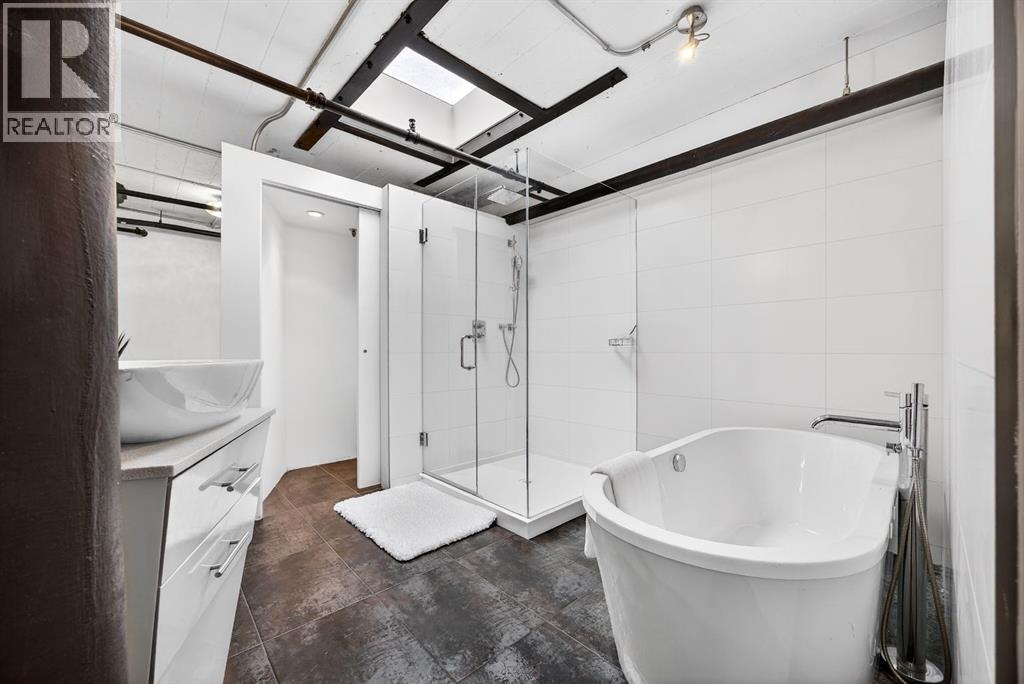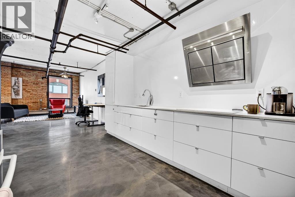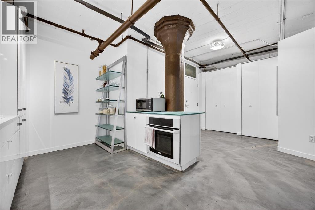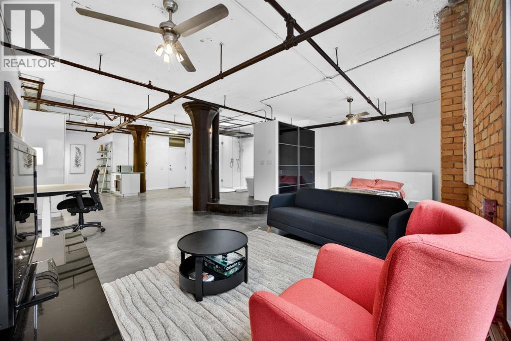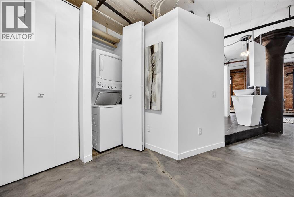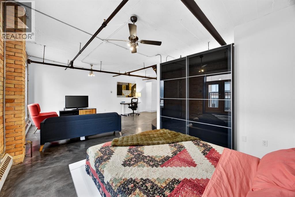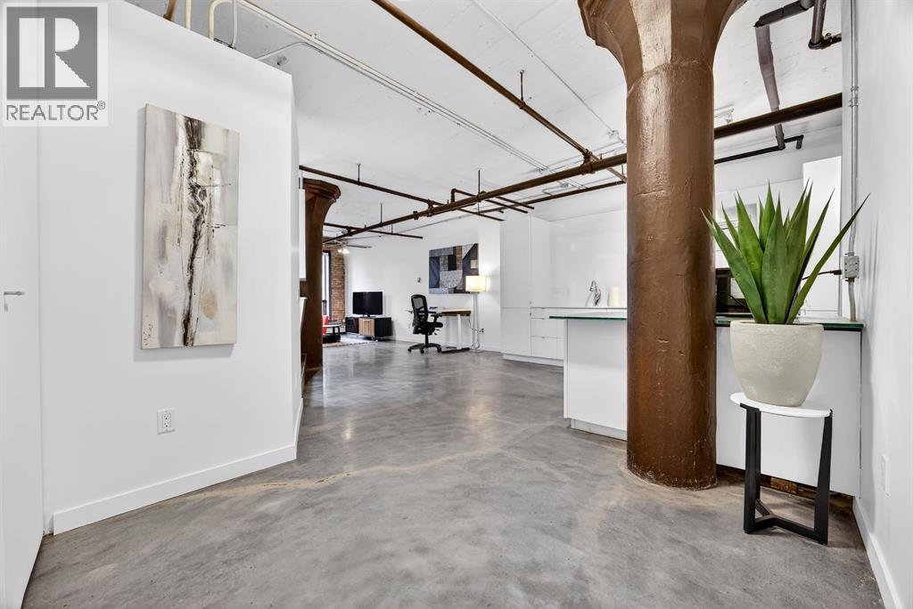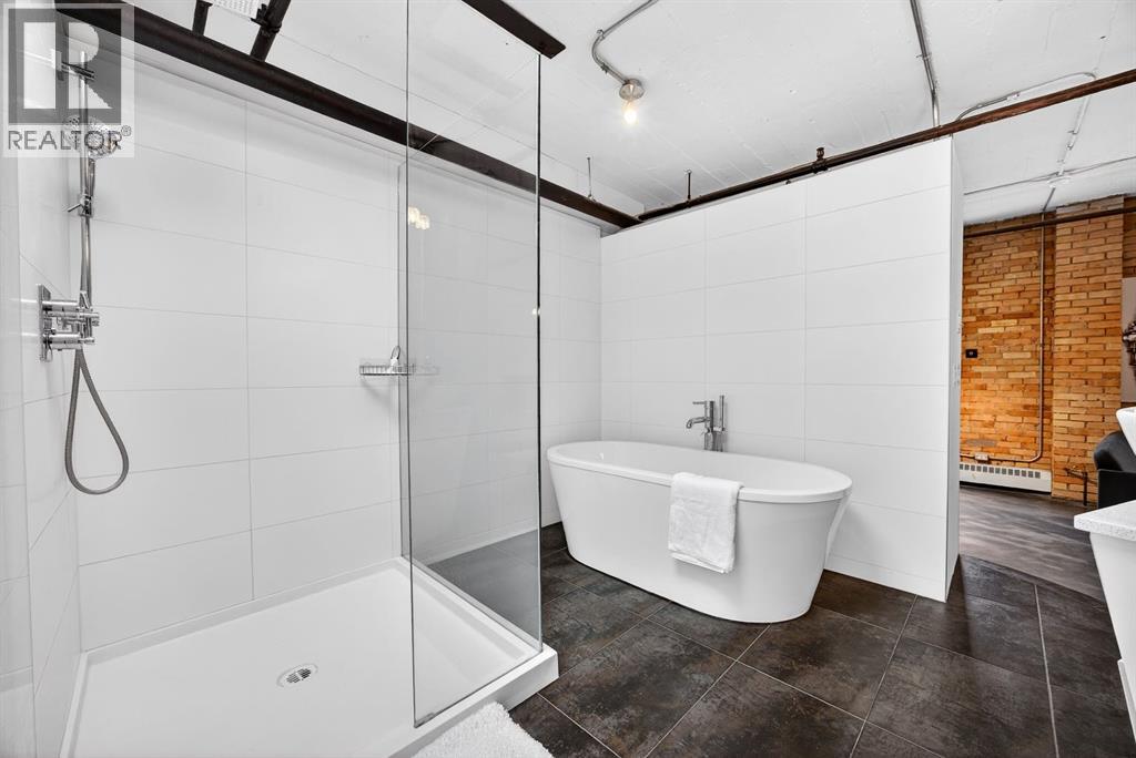Welcome to the Lewis Lofts! This building gives New York vibes and a rare opportunity to own a piece of history in this 1911 converted Lewis Stationary building. One of Calgary’s only true “hard lofts” a provincial Class "A" Heritage Building that was converted in 1995 to residential condos. This TOP FLOOR penthouse unit features open concept living with polished concrete flooring, original brick feature walls, open industrial ceilings, and large fluted columns that give the property a ton of character. Gorgeous kitchen with sleek white cabinetry, brand quartz counters, undermount sink, built-in integrated dishwasher and fridge, and island with custom glass counter and matching shelving unit. Open to the main area with lots of space for dining, living room, and office area. Remodeled open concept bathroom with floor to ceiling tile, free-standing soaker tub, walk-in glass shower, and separate water closet. Bedroom area with garden door out to the top floor West facing balcony with High Park and DT views. In suite laundry and a direct vent outside with air conditioning unit included complete this amazing space. The unit comes with heated underground parking, storage locker, and the building features a huge common area patio with gazebo, BBQs, and lawn furniture, a great spot to hang out with friends on summer days! All located in the heart of the Beltline across the street from Vintage Chop house and walking distance to all the bars, restaurants, shops, DT Core, Vibrant 10th and 17th Avenue. Convenient close access to the +15 walkway, Scotiabank Saddledome, Stampede Park, and so much more! Don’t miss your chance own in one of Calgary’s most sought after historic landmarks, with timeless architecture and character that will be the envy of all your friends! (id:51989)