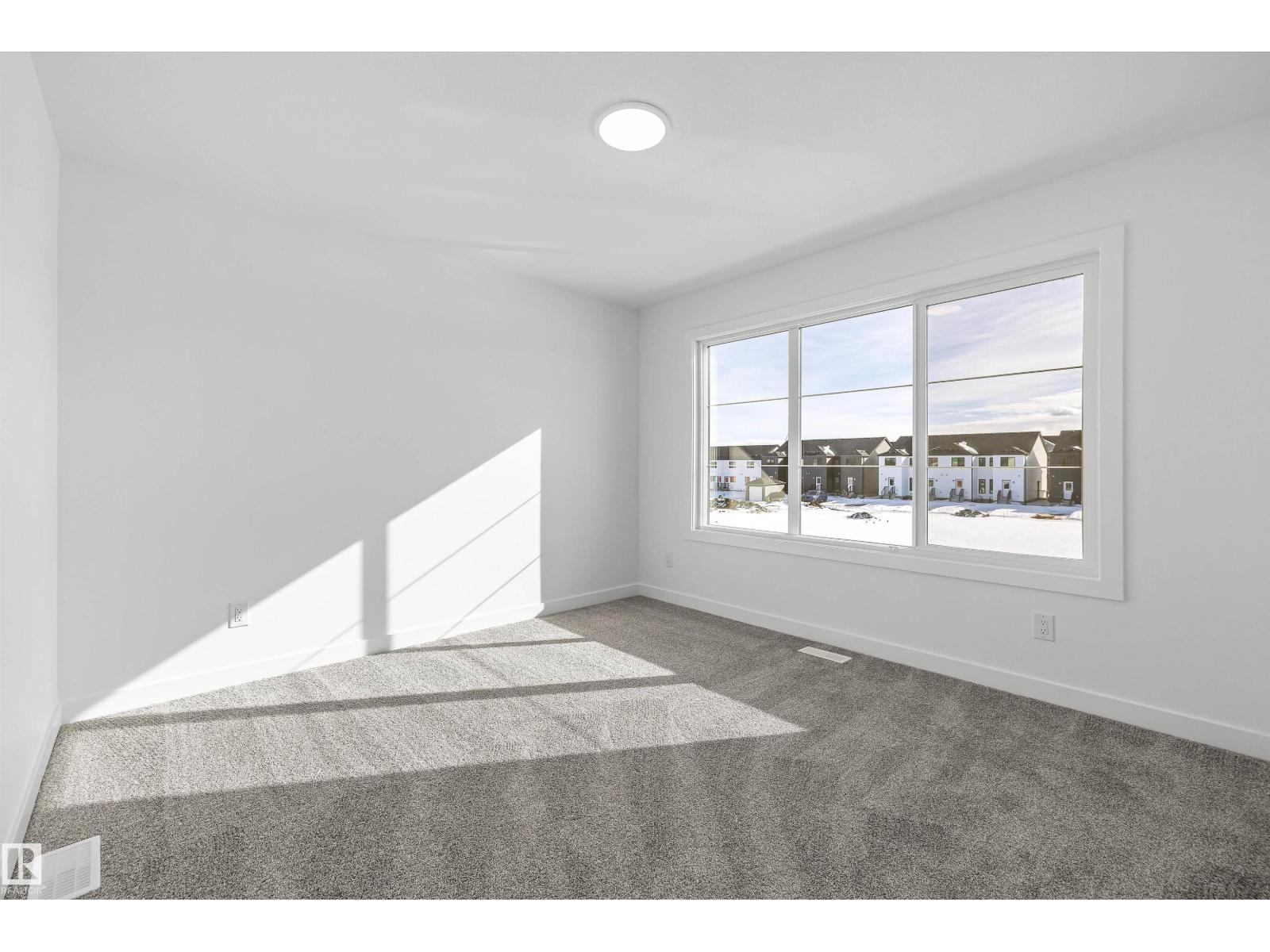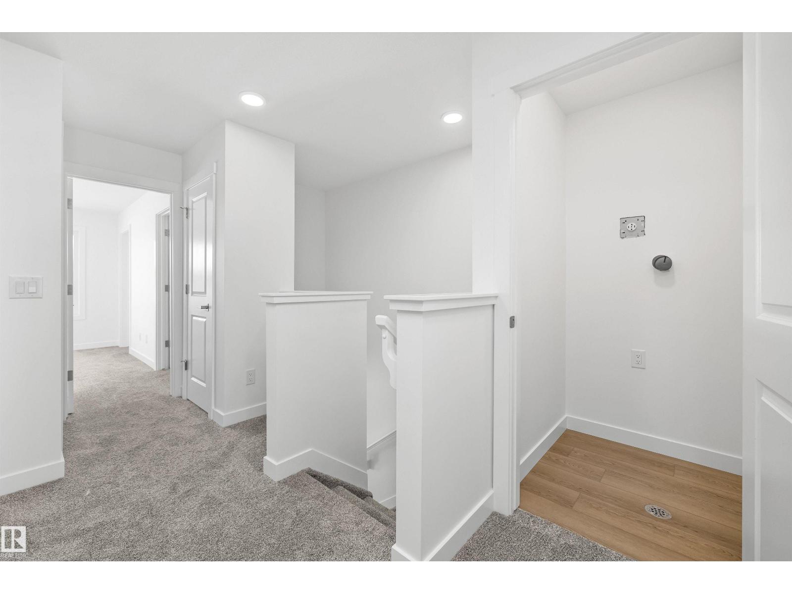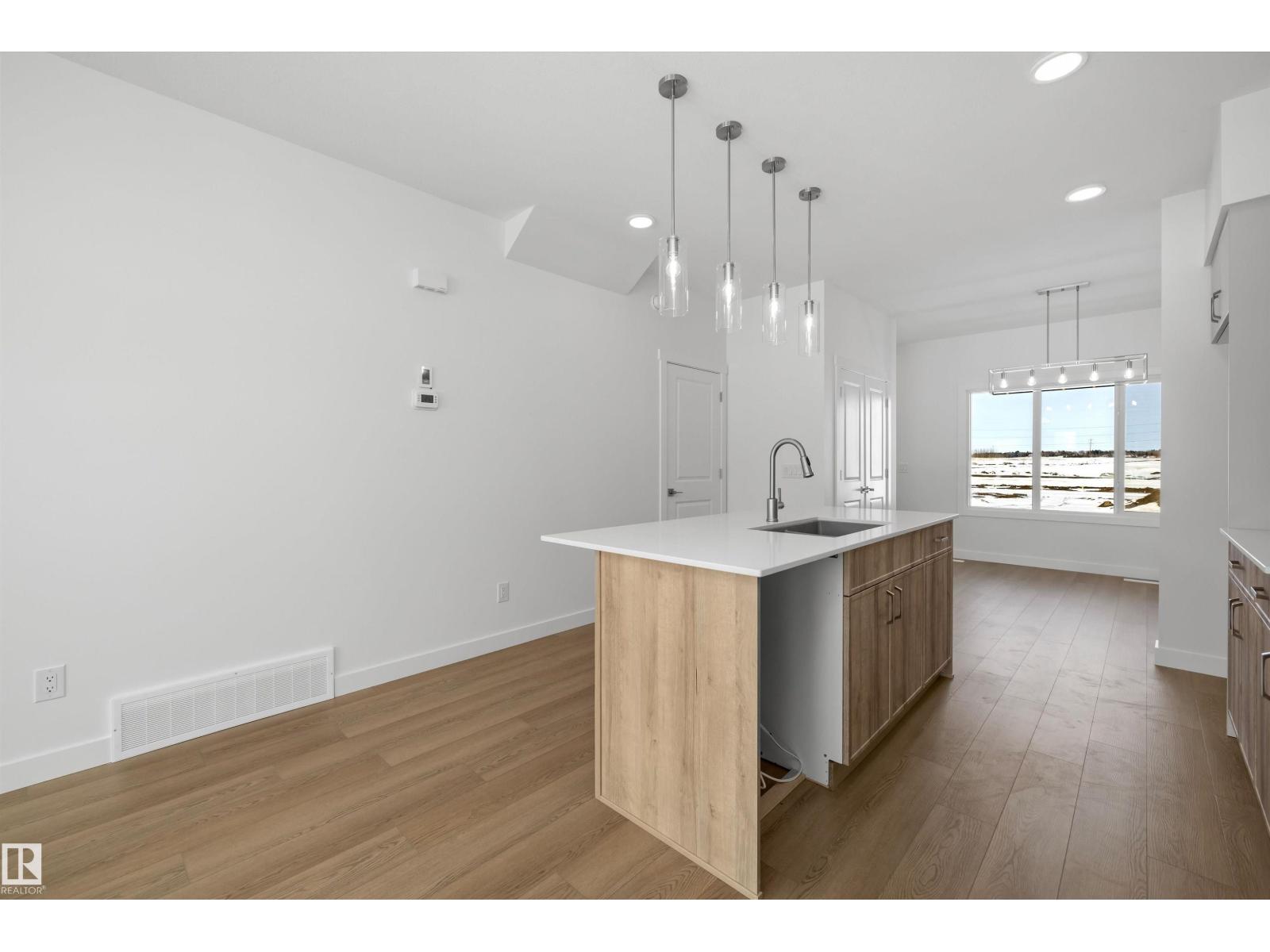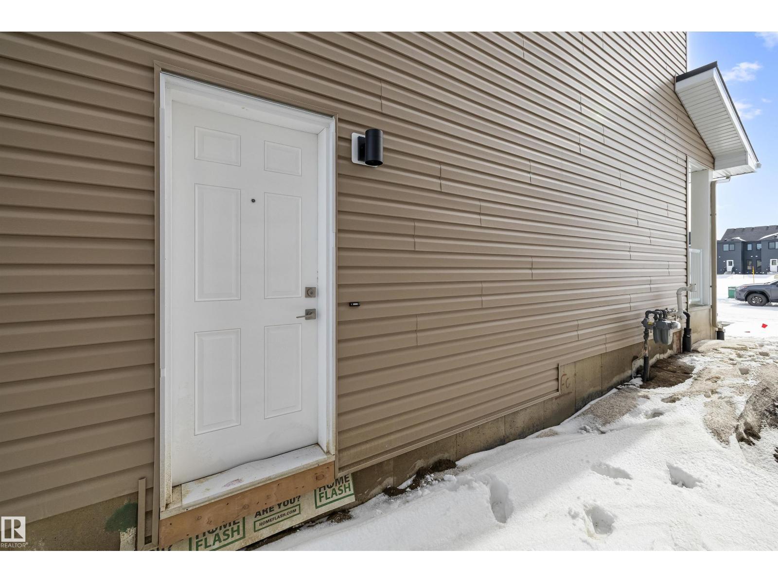 Built by Sterling Homes, this inviting laned home in McConachie is a wonderful opportunity for first-time buyers or young families seeking a bright, comfortable space to grow. Triple pane windows and 9’ ceilings enhance the open main floor, beginning with a cozy front living room filled with natural light. The kitchen is designed for everyday living, featuring quartz countertops, a central island for casual meals, generous cabinetry, and a spacious pantry to keep everything organized. The dining area overlooks the backyard, creating a welcoming setting for family dinners and relaxed weekend brunches. Upstairs, a versatile open loft offers flexible space for playtime, homework, or a second lounge. The primary bedroom includes a walk-in closet and private ensuite, while two additional bedrooms share a full bathroom. An upper-floor laundry closet adds everyday convenience. Complete with luxury vinyl plank flooring, a large backyard with parking pad, separate side entrance, and basement rough-ins for future (id:51989)