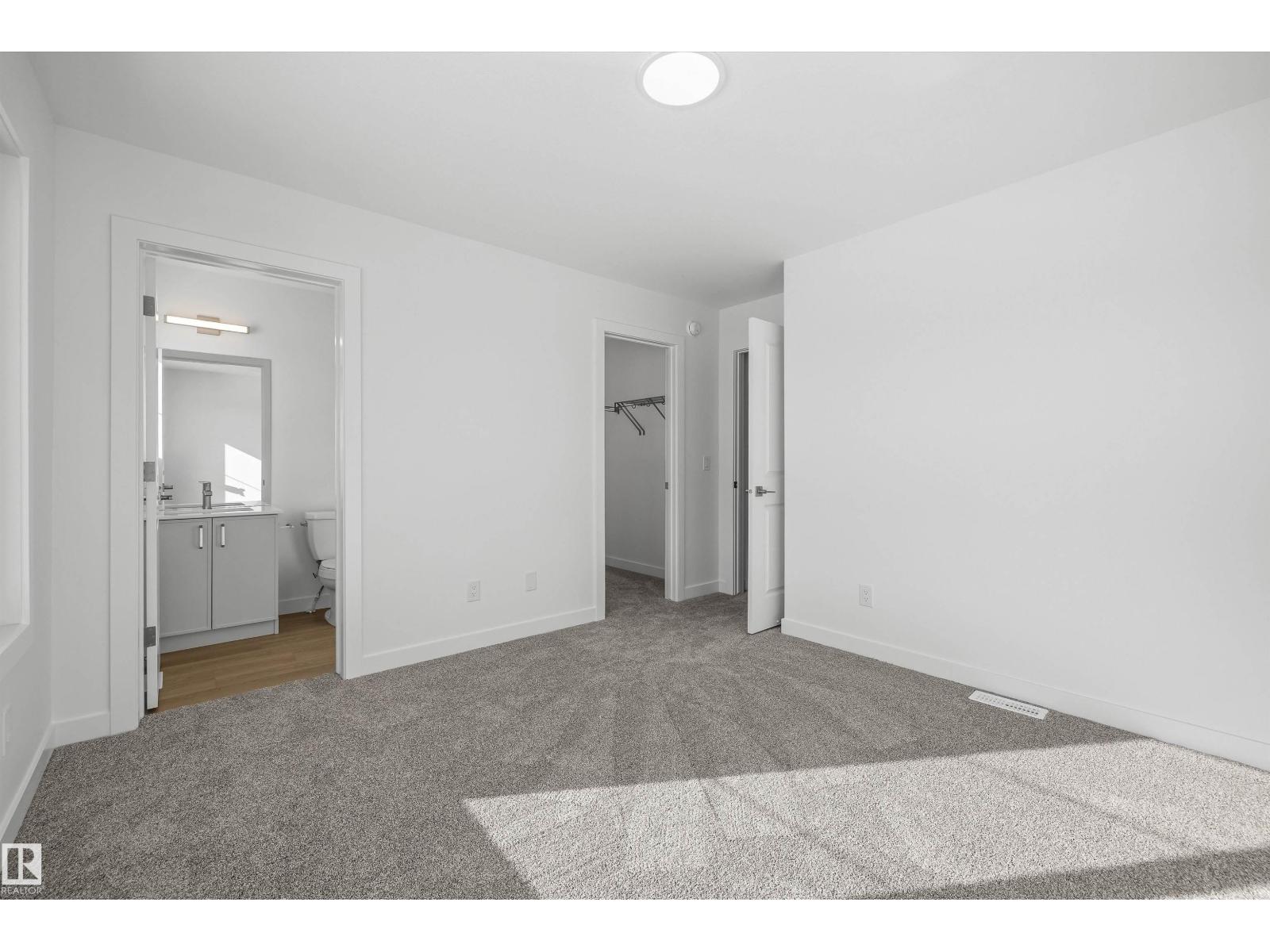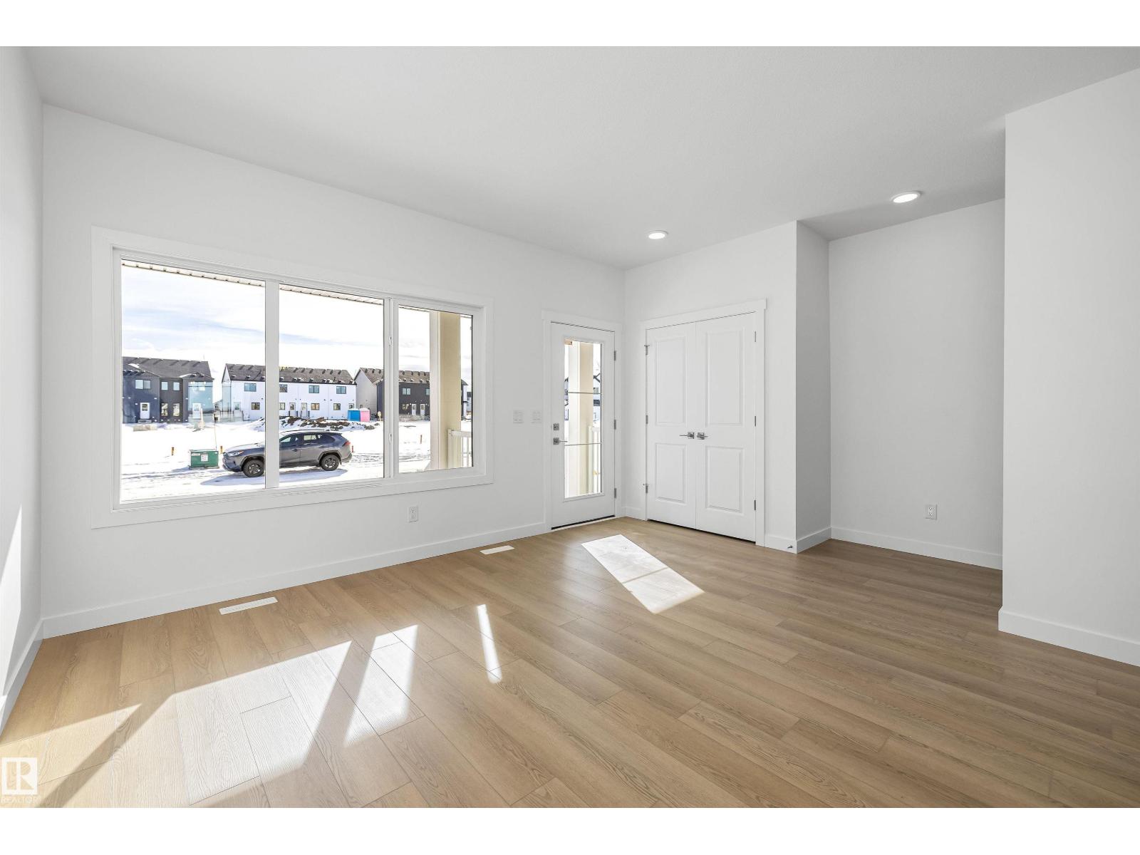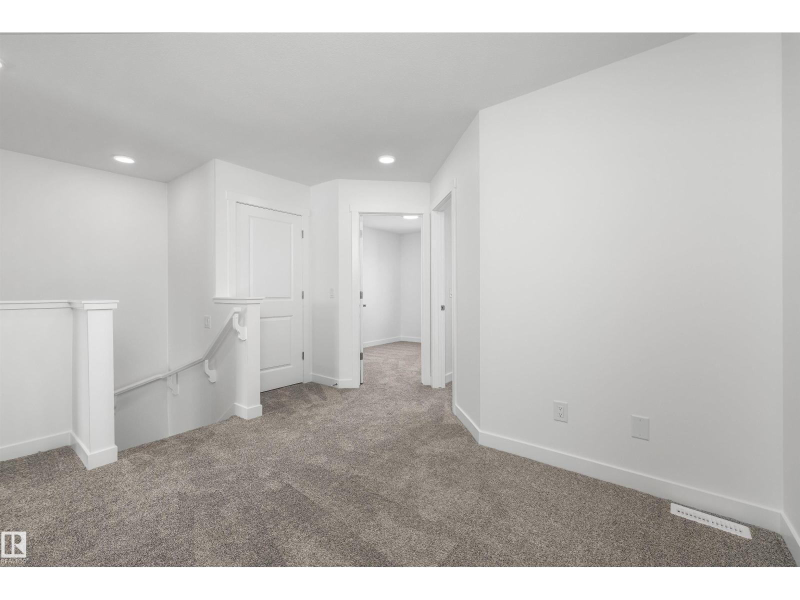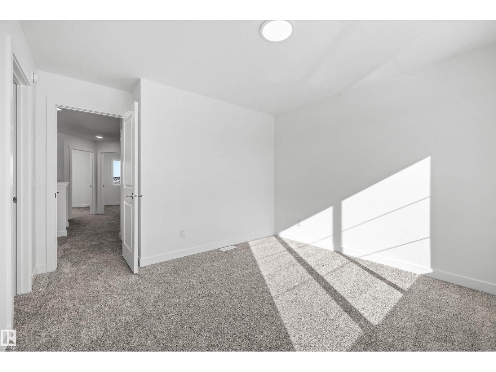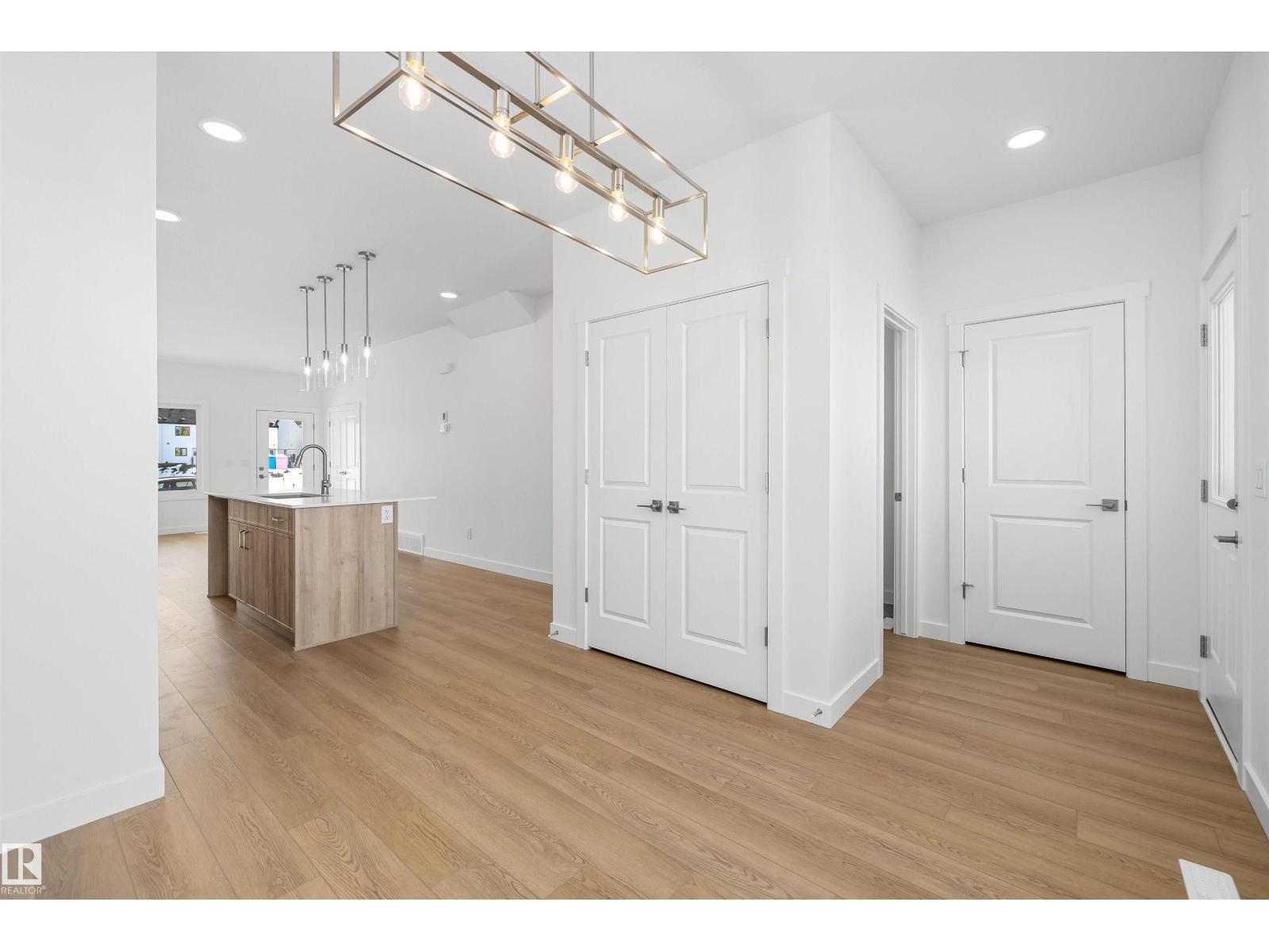 Built by Sterling Homes, this inviting laned home in McConachie is a wonderful opportunity for first-time buyers or young families seeking a bright, comfortable space to grow. Triple pane windows and 9’ ceilings enhance the open main floor, beginning with a cozy front living room filled with natural light. The kitchen is designed for everyday living, featuring quartz countertops, a central island for casual meals, generous cabinetry, and a spacious pantry to keep everything organized. The dining area overlooks the backyard, creating a welcoming setting for family dinners and relaxed weekend brunches. Upstairs, a versatile open loft offers flexible space for playtime, homework, or a second lounge. The primary bedroom includes a walk-in closet and private ensuite, while two additional bedrooms share a full bathroom. An upper-floor laundry closet adds everyday convenience. Complete with luxury vinyl plank flooring, a large backyard with parking pad, separate side entrance, and basement rough-ins for future (id:51989)