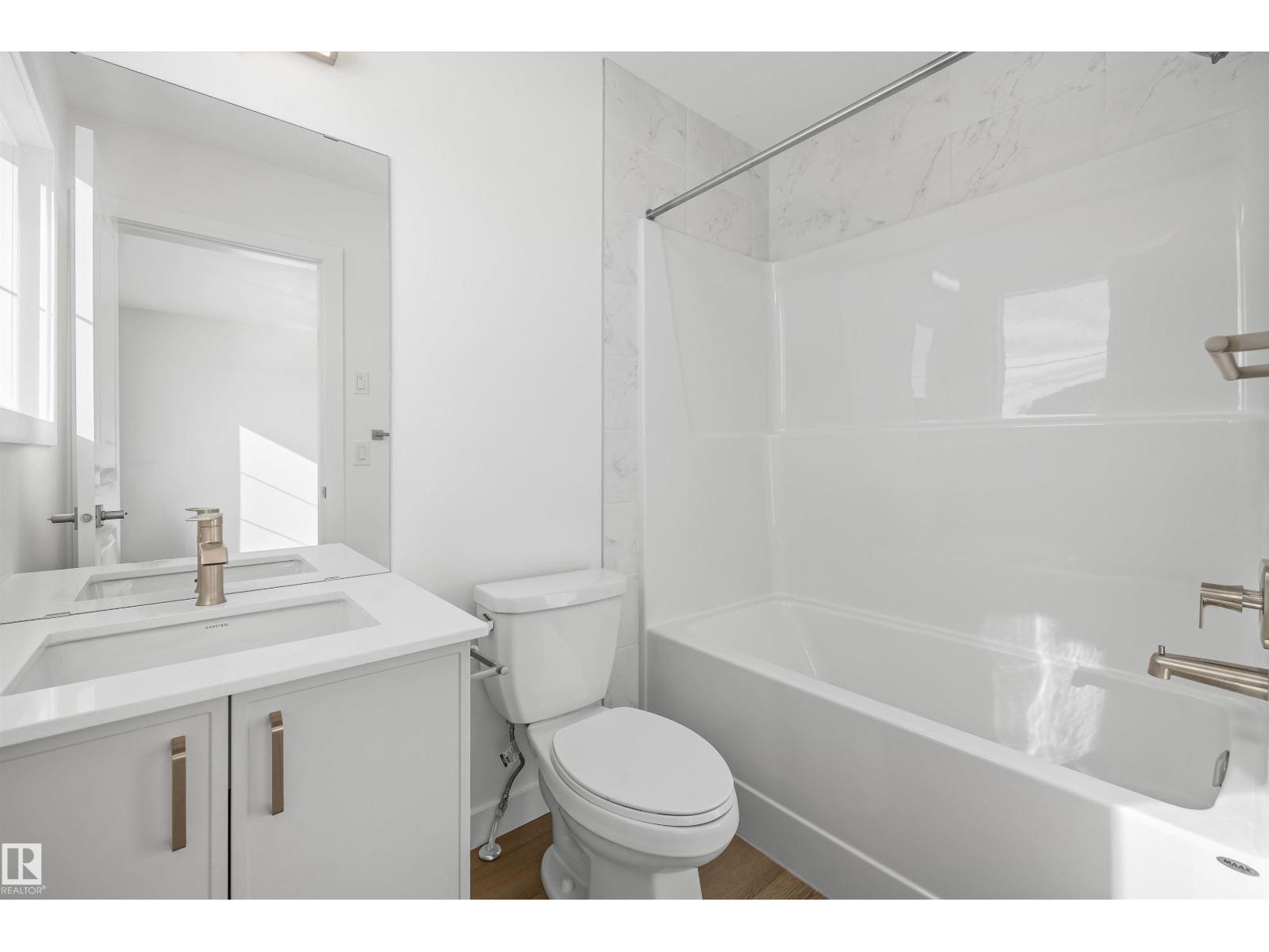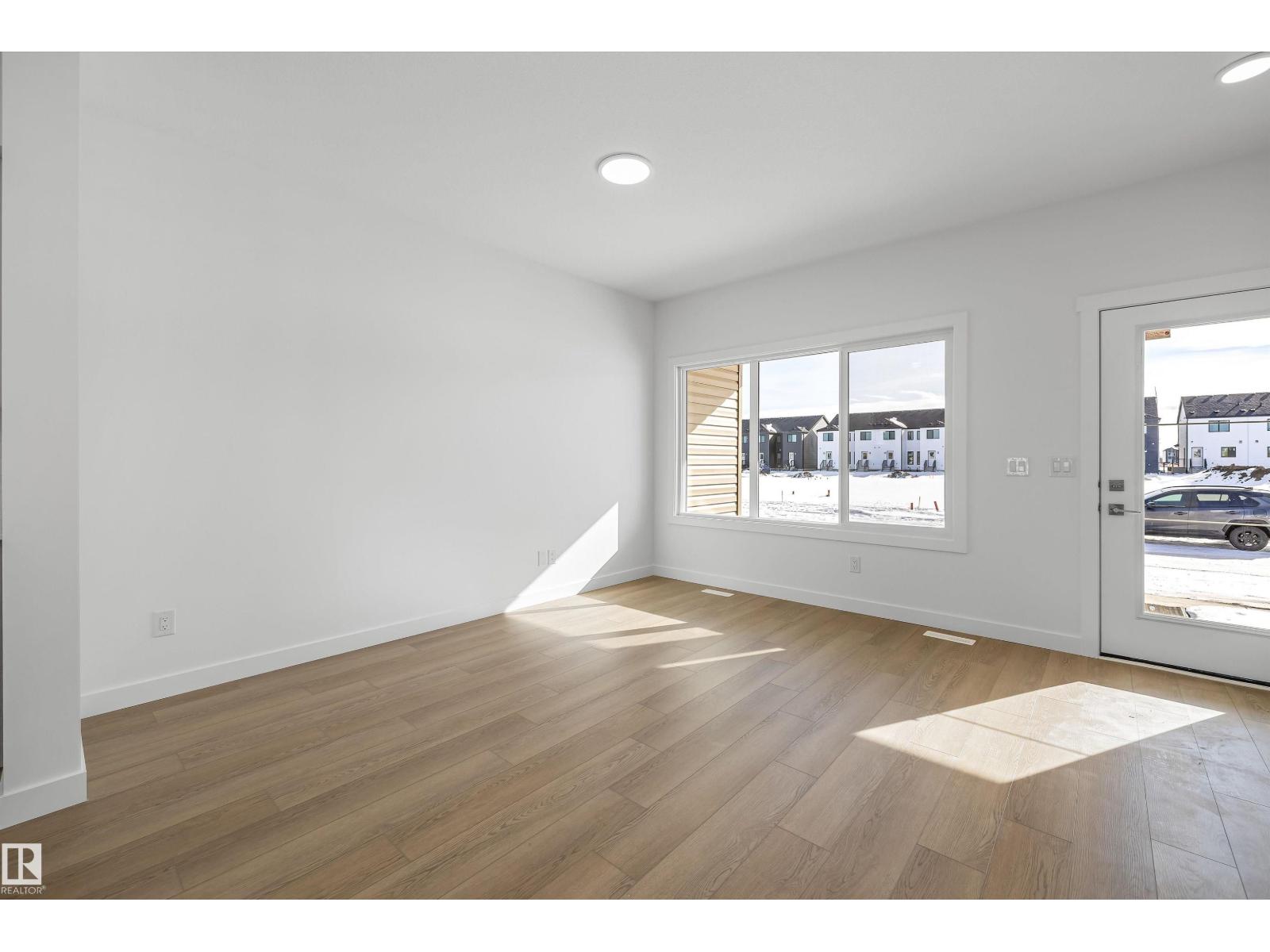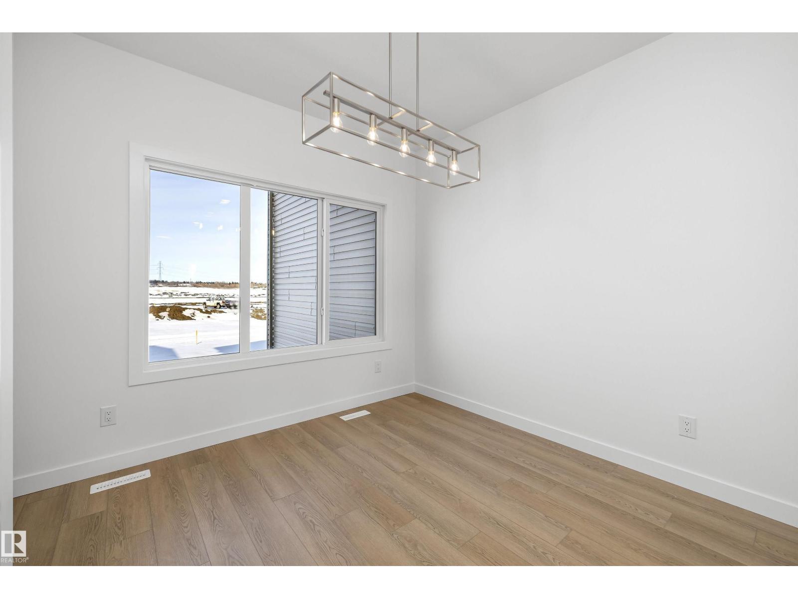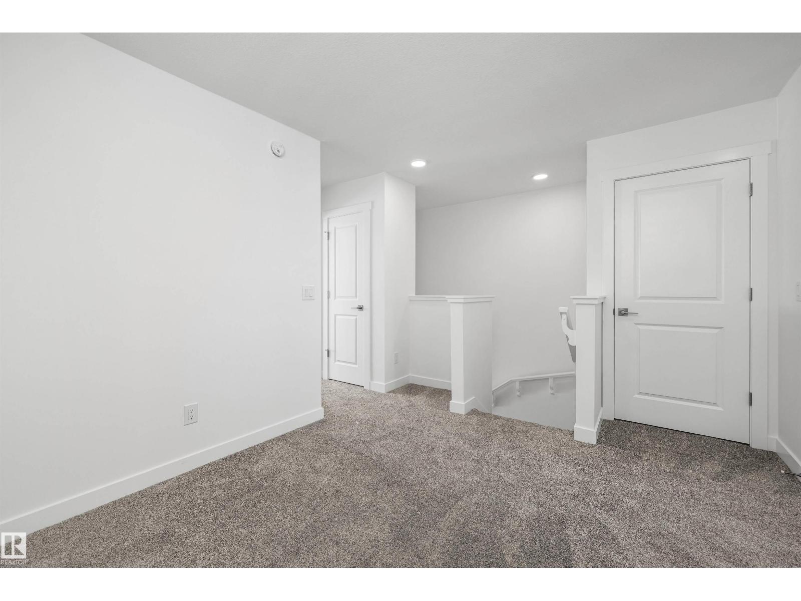 Built by Sterling Homes, this inviting laned home in McConachie is a wonderful opportunity for first-time buyers or young families seeking a bright, comfortable space to grow. Triple pane windows and 9’ ceilings enhance the open main floor, beginning with a cozy front living room filled with natural light. The kitchen is designed for everyday living, featuring quartz countertops, a central island for casual meals, generous cabinetry, and a spacious pantry to keep everything organized. The dining area overlooks the backyard, creating a welcoming setting for family dinners and relaxed weekend brunches. Upstairs, a versatile open loft offers flexible space for playtime, homework, or a second lounge. The primary bedroom includes a walk-in closet and private ensuite, while two additional bedrooms share a full bathroom. An upper-floor laundry closet adds everyday convenience. Complete with luxury vinyl plank flooring, a large backyard with parking pad, separate side entrance, and basement rough-ins for future (id:51989)
