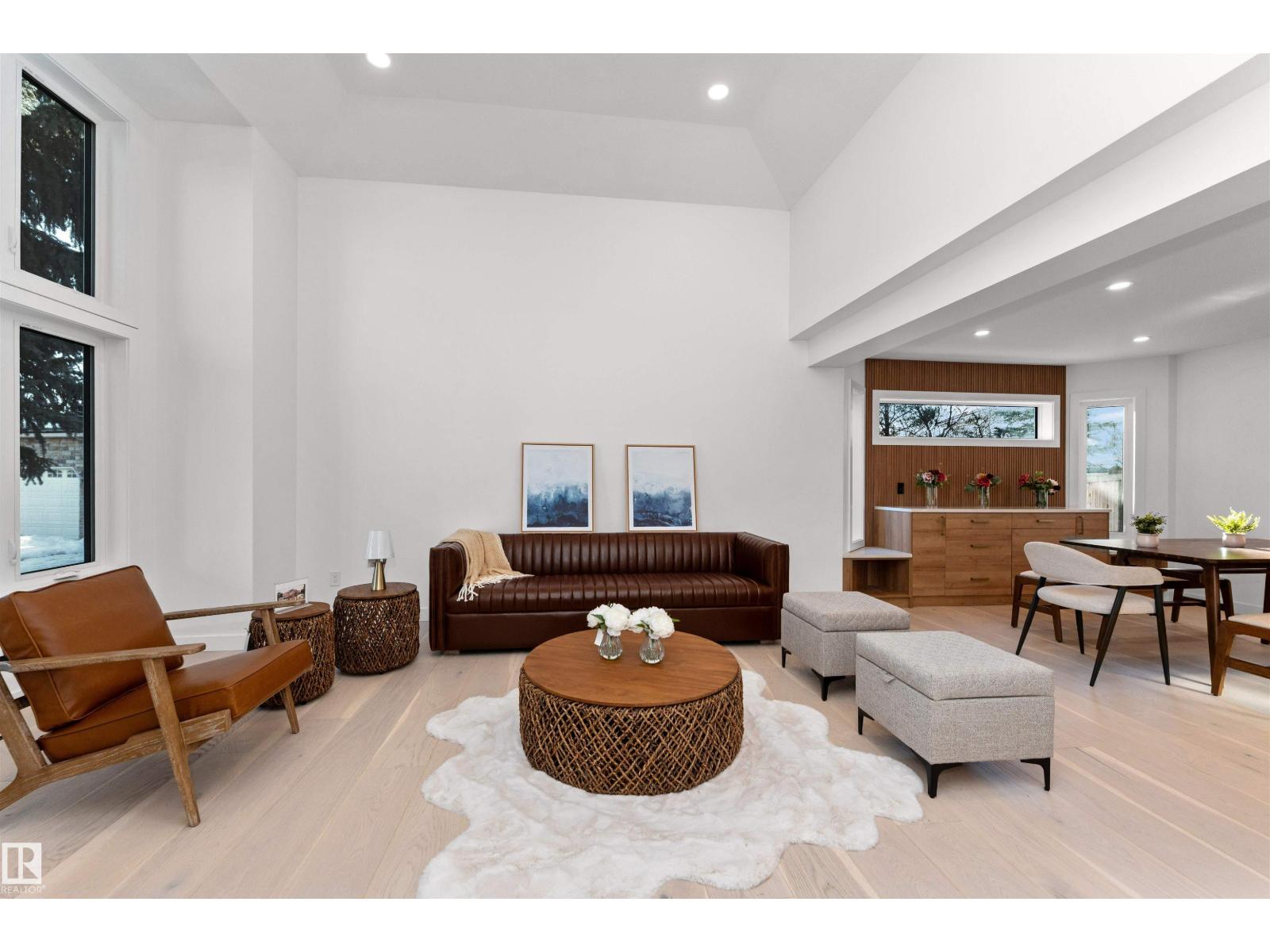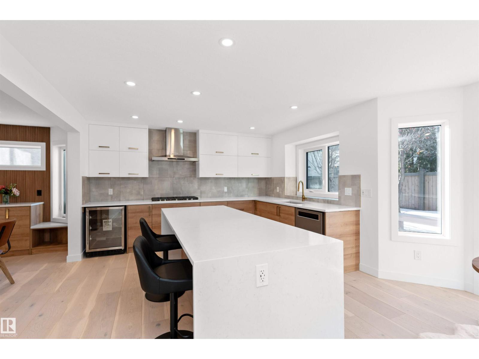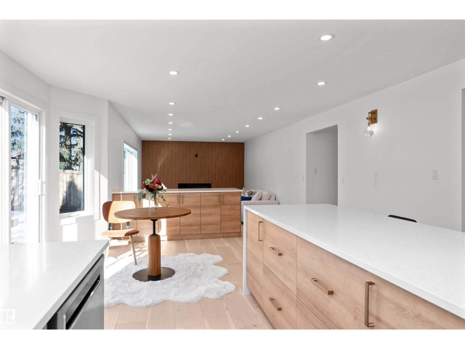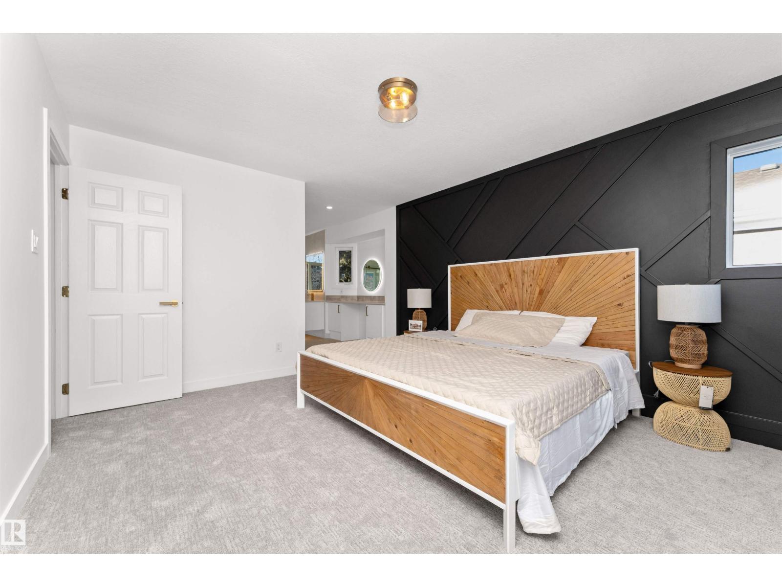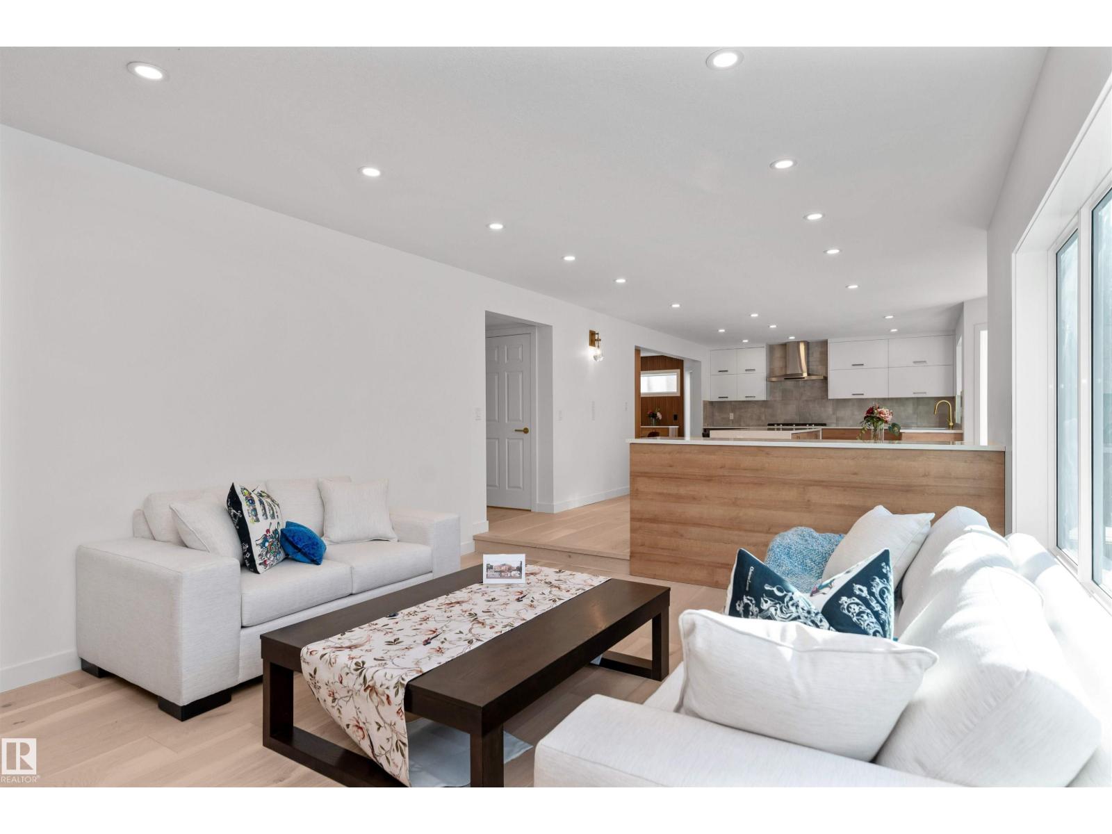 This newly renovated two-storey home is located in the Bulyea Heights community on a quiet cul-de-sac, offering over 4,284 sq. ft. of living space, 7 bedrooms, 4 bathrooms, a fully finished basement, and a triple attached garage. The grand entrance with vaulted ceilings opens to a bright living room, formal dining area, cozy family room, and a stunning kitchen featuring brand-new KitchenAid built-in appliances, gas cooktop, quartz countertops with waterfall island, ceiling-height cabinetry, and tile backsplash. The breakfast nook overlooks the backyard. A main floor bedroom, walk-in closet, and 3-pc bath complete this level. Upstairs boasts a spacious primary bedroom with sitting area, walk-in closet, and 5-pc ensuite, along with three generous bedrooms and a full bath. The fully developed basement offers a large rec room, two bedrooms, and a 3-pc bathroom—perfect for extended family or guests. Conveniently located with easy access to Whitemud Drive. New Two Furnace, watertank, triple pane Windows and etc (id:51989)