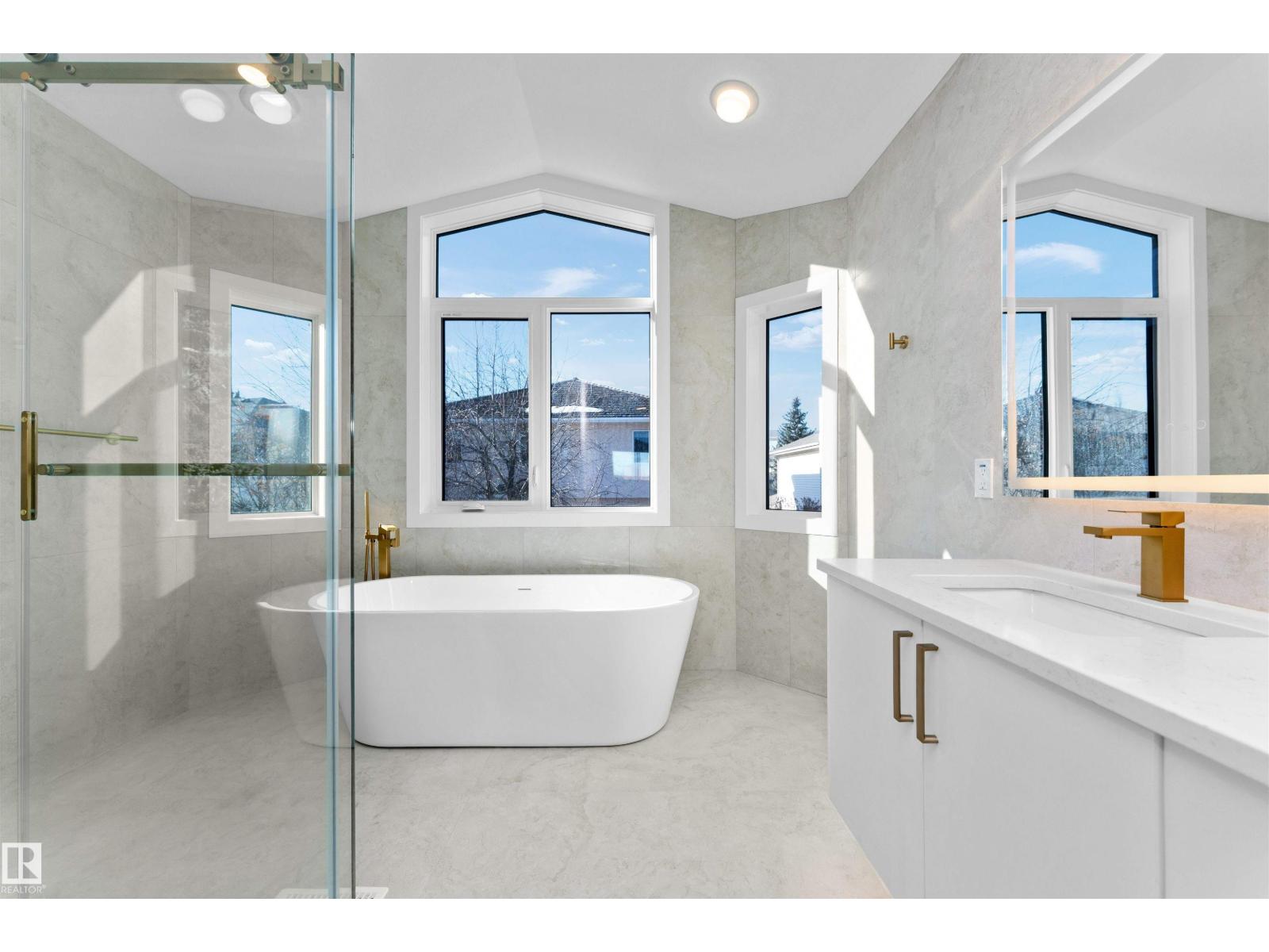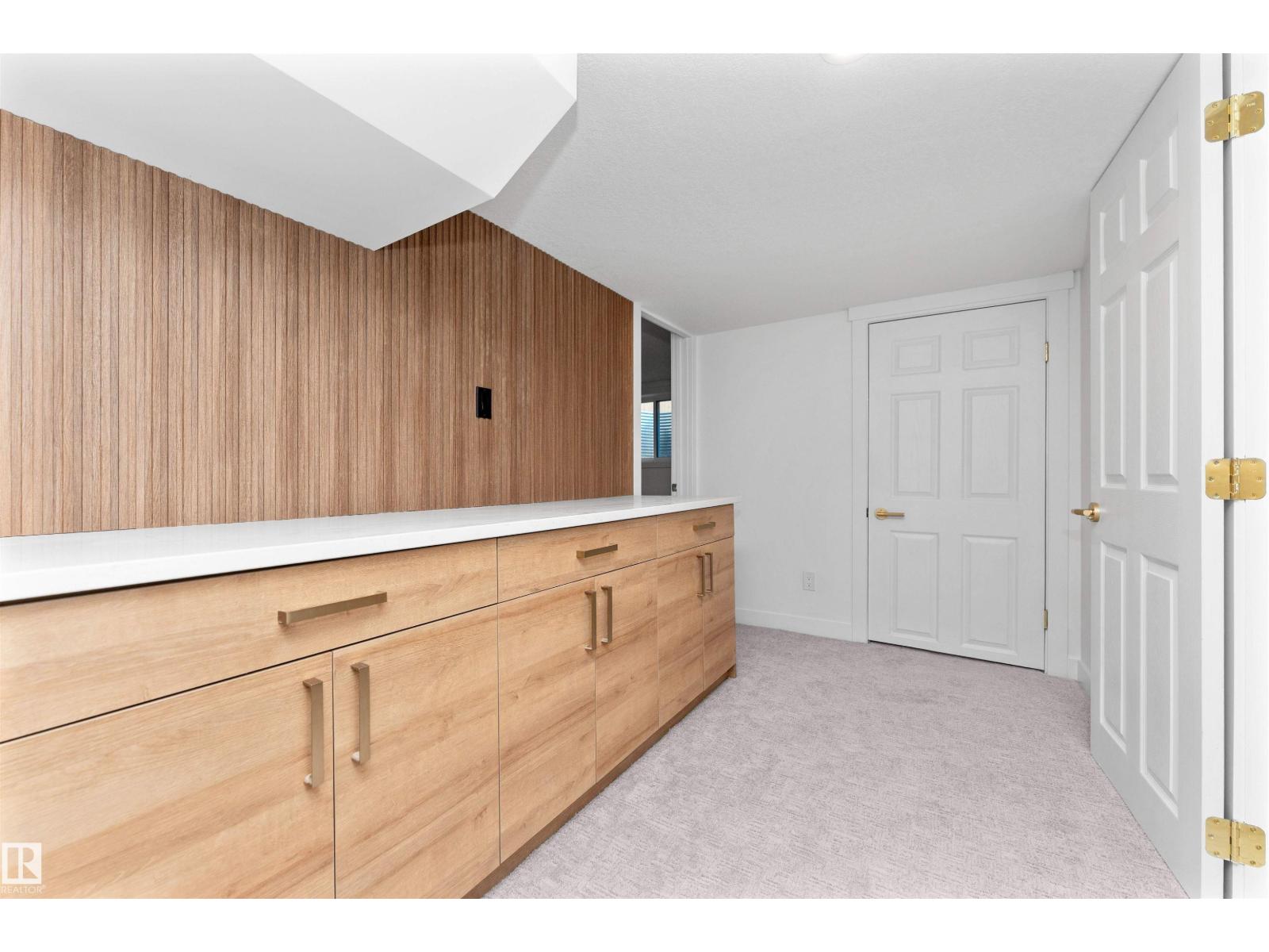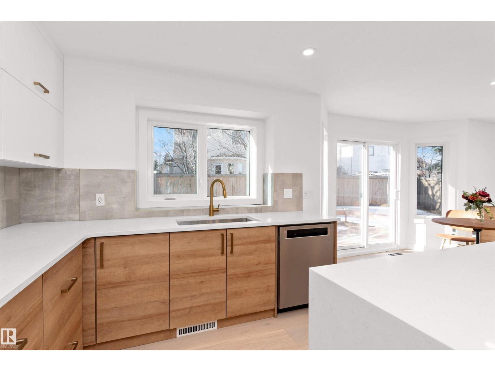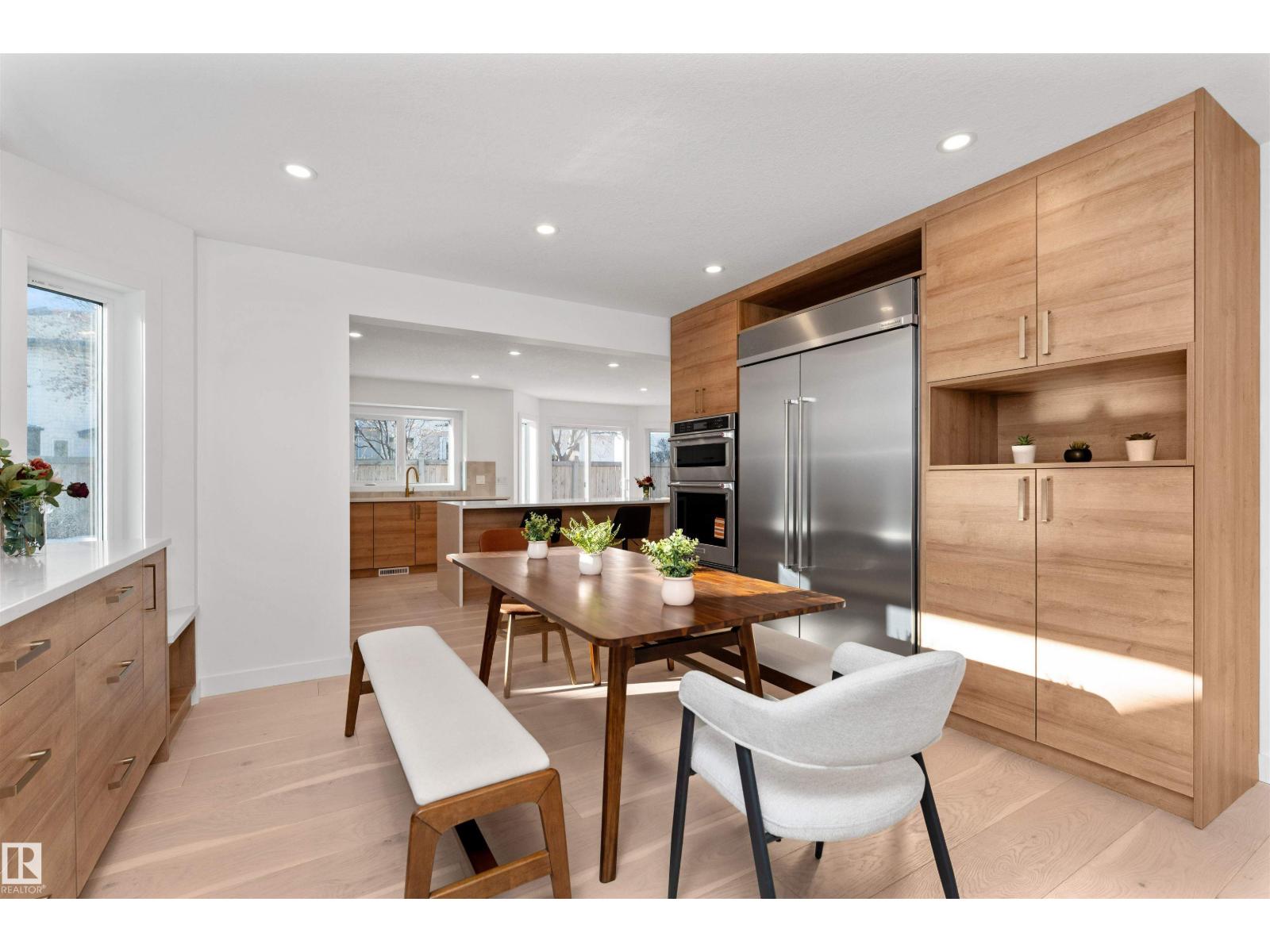 This newly renovated two-storey home is located in the Bulyea Heights community on a quiet cul-de-sac, offering over 4,284 sq. ft. of living space, 7 bedrooms, 4 bathrooms, a fully finished basement, and a triple attached garage. The grand entrance with vaulted ceilings opens to a bright living room, formal dining area, cozy family room, and a stunning kitchen featuring brand-new KitchenAid built-in appliances, gas cooktop, quartz countertops with waterfall island, ceiling-height cabinetry, and tile backsplash. The breakfast nook overlooks the backyard. A main floor bedroom, walk-in closet, and 3-pc bath complete this level. Upstairs boasts a spacious primary bedroom with sitting area, walk-in closet, and 5-pc ensuite, along with three generous bedrooms and a full bath. The fully developed basement offers a large rec room, two bedrooms, and a 3-pc bathroom—perfect for extended family or guests. Conveniently located with easy access to Whitemud Drive. New Two Furnace, watertank, triple pane Windows and etc (id:51989)