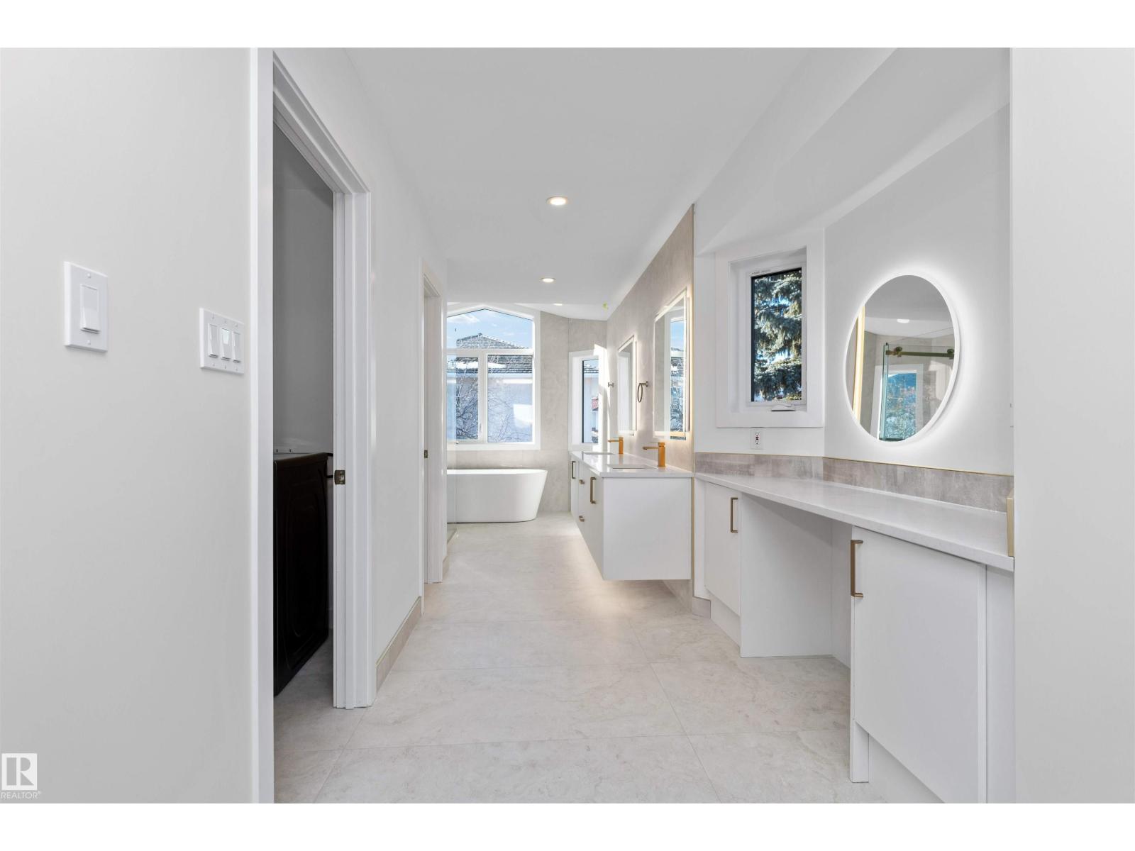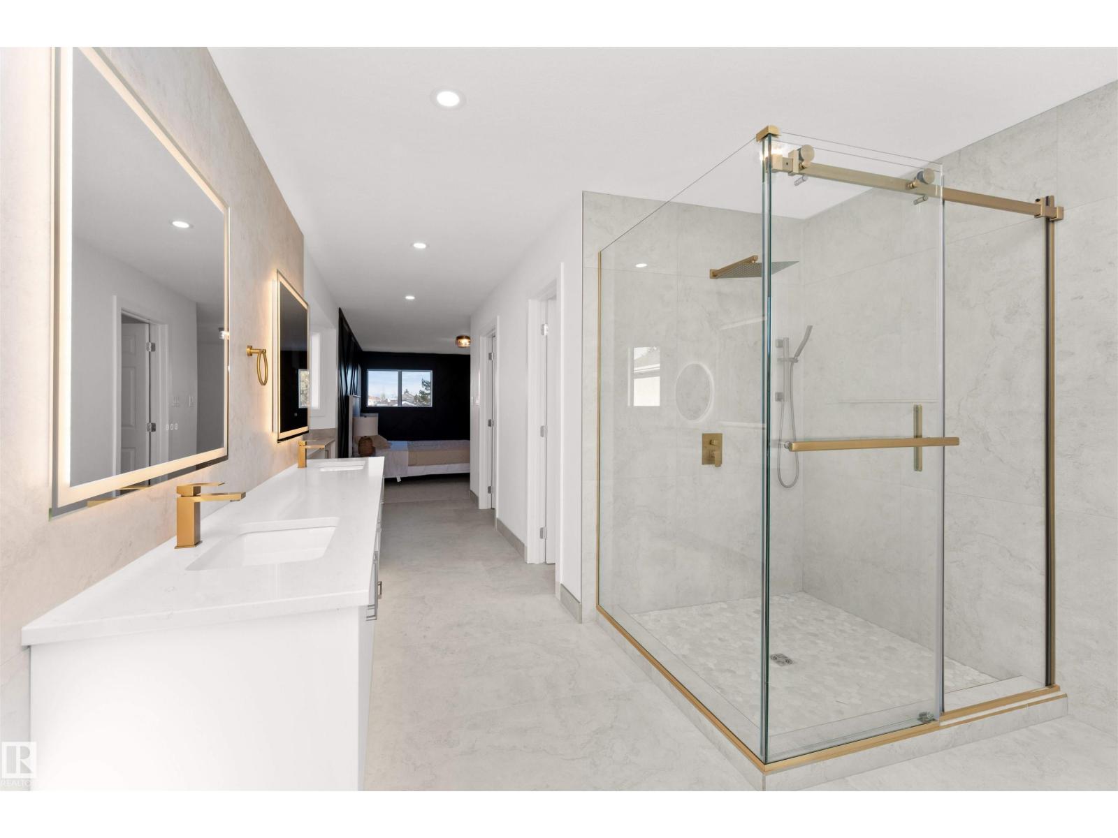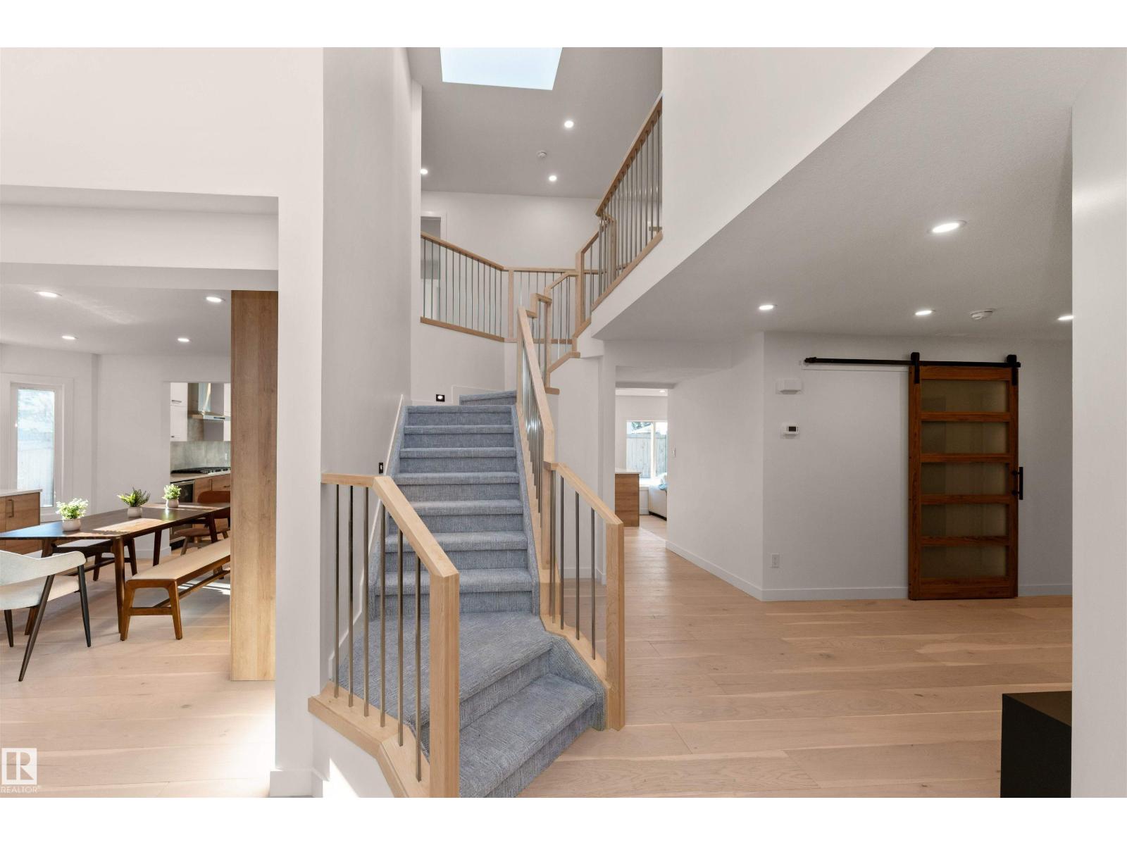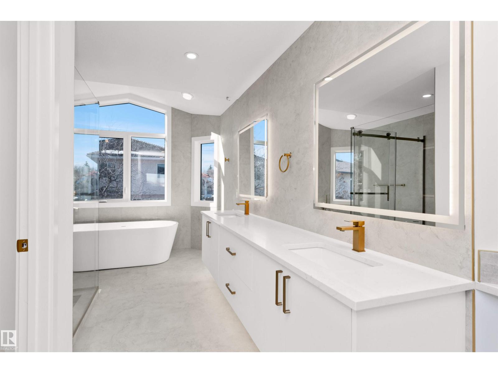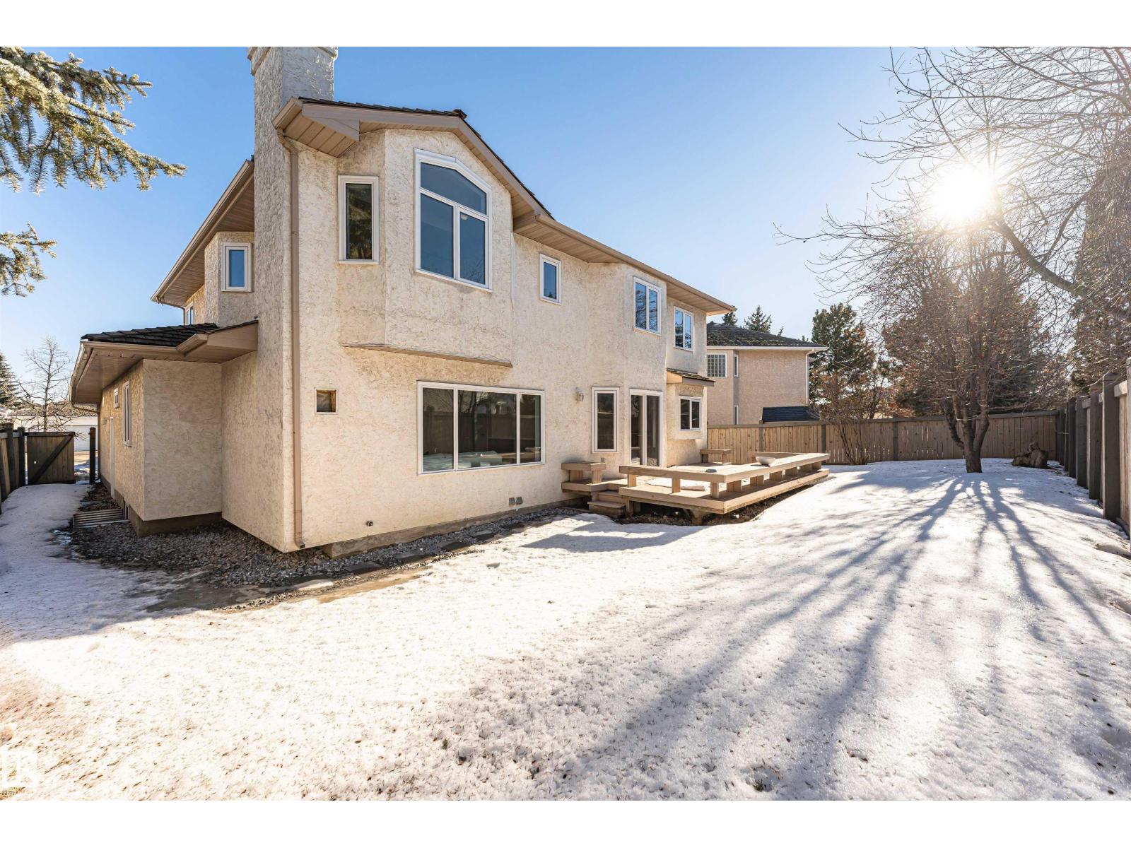 This newly renovated two-storey home is located in the Bulyea Heights community on a quiet cul-de-sac, offering over 4,284 sq. ft. of living space, 7 bedrooms, 4 bathrooms, a fully finished basement, and a triple attached garage. The grand entrance with vaulted ceilings opens to a bright living room, formal dining area, cozy family room, and a stunning kitchen featuring brand-new KitchenAid built-in appliances, gas cooktop, quartz countertops with waterfall island, ceiling-height cabinetry, and tile backsplash. The breakfast nook overlooks the backyard. A main floor bedroom, walk-in closet, and 3-pc bath complete this level. Upstairs boasts a spacious primary bedroom with sitting area, walk-in closet, and 5-pc ensuite, along with three generous bedrooms and a full bath. The fully developed basement offers a large rec room, two bedrooms, and a 3-pc bathroom—perfect for extended family or guests. Conveniently located with easy access to Whitemud Drive. New Two Furnace, watertank, triple pane Windows and etc (id:51989)